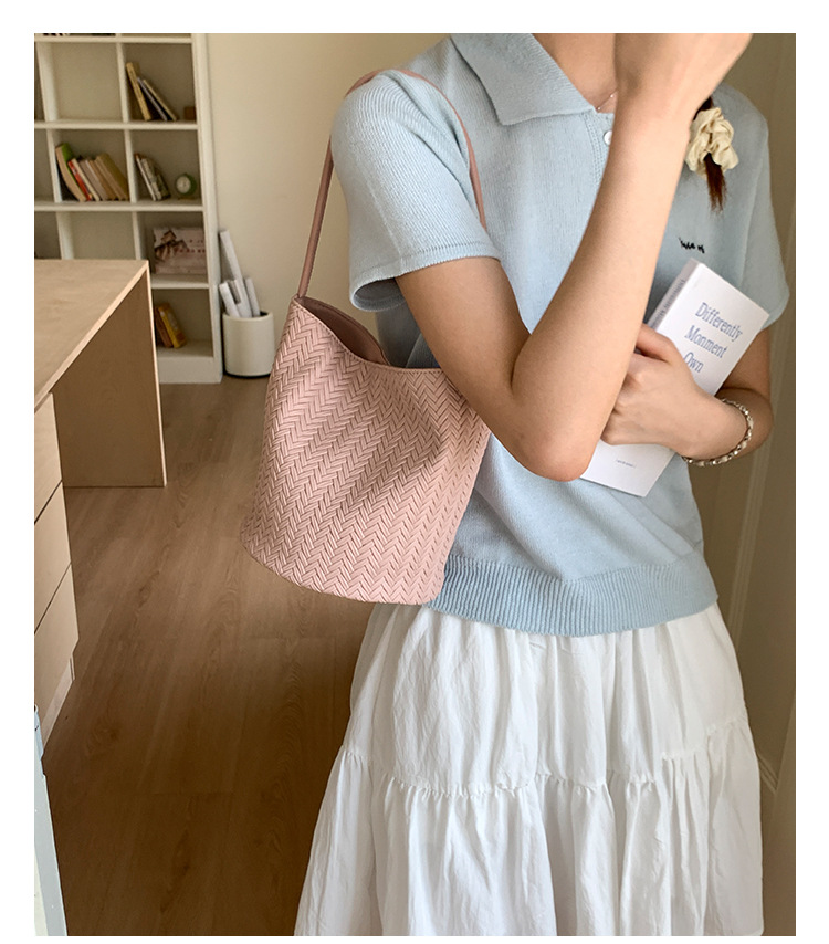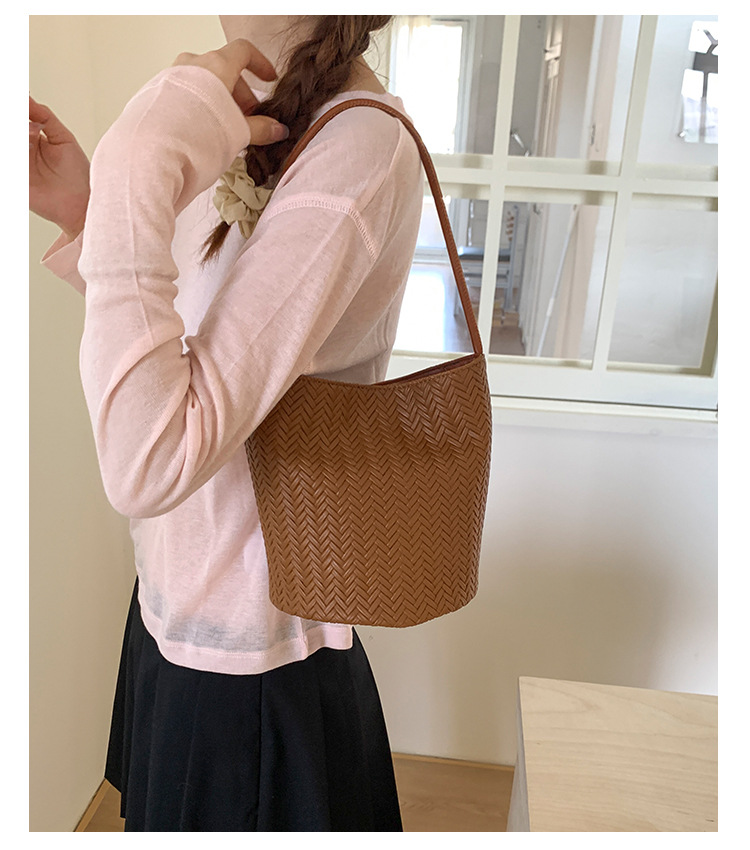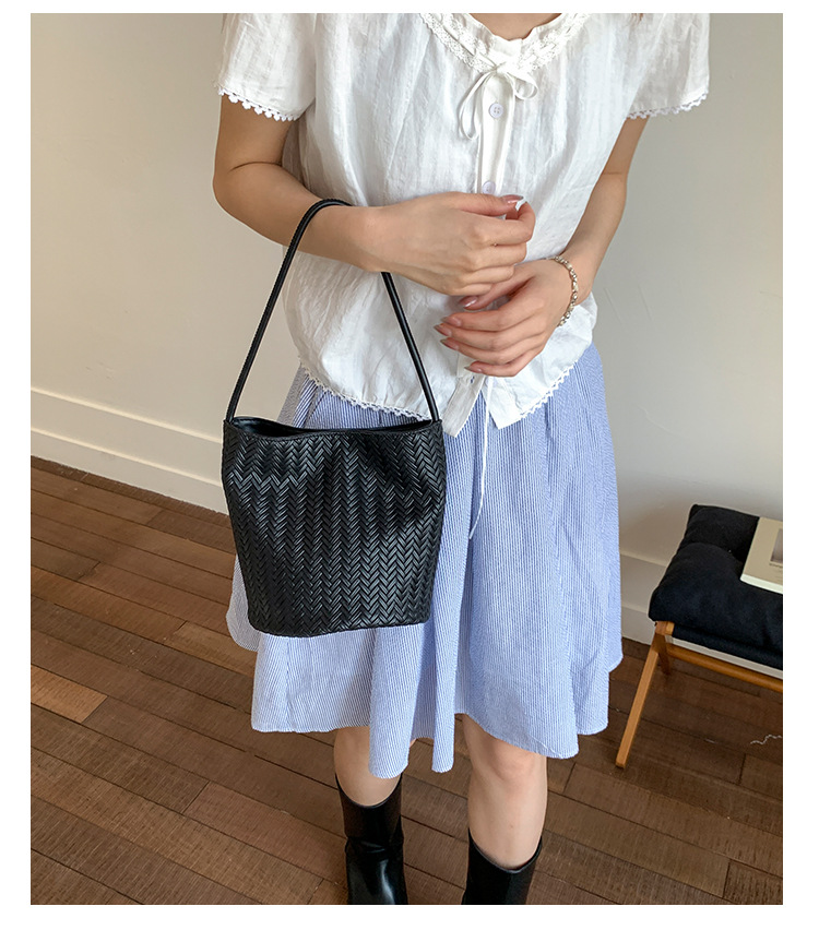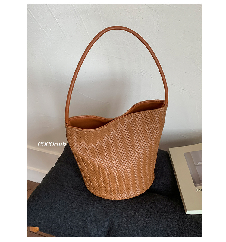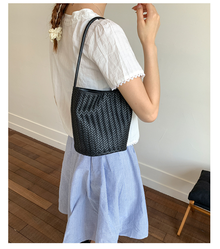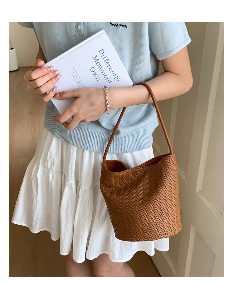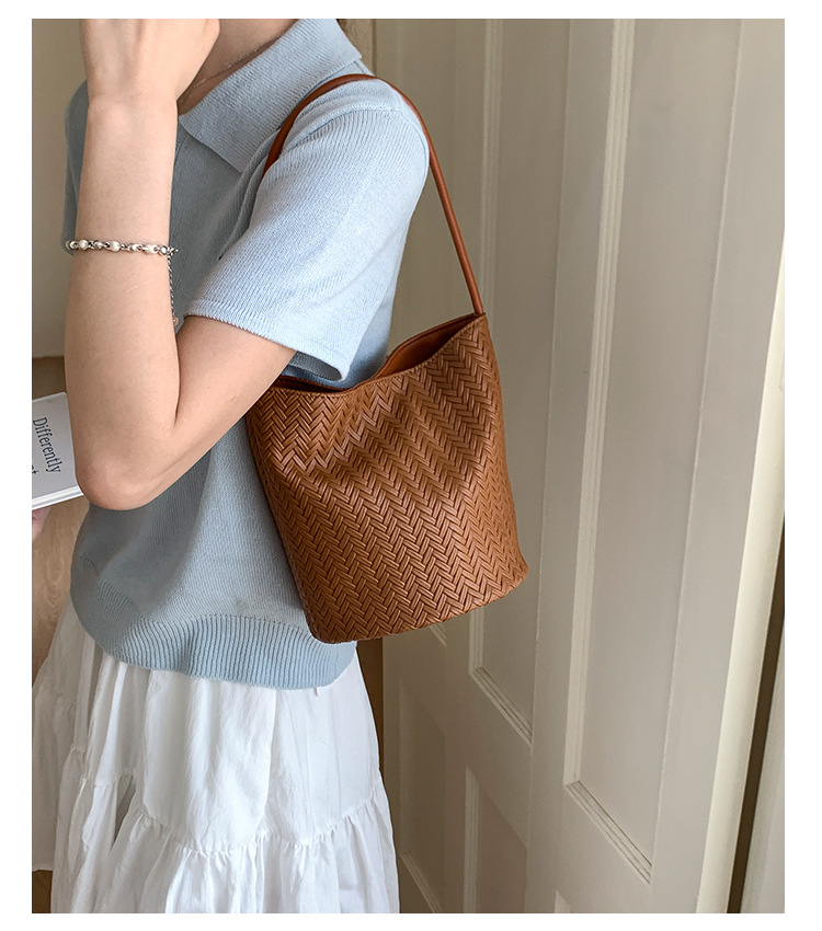 Bolso tejido de gran capacidad de moda bolso de moda 2025 nuevo bolso de cubo salvaje bolso de hombro simple bolso de axila