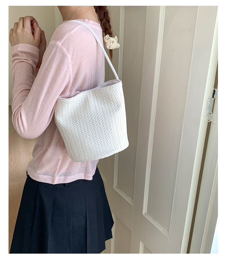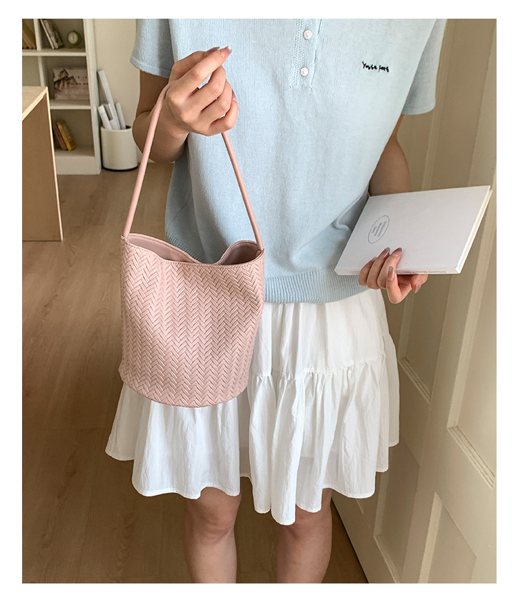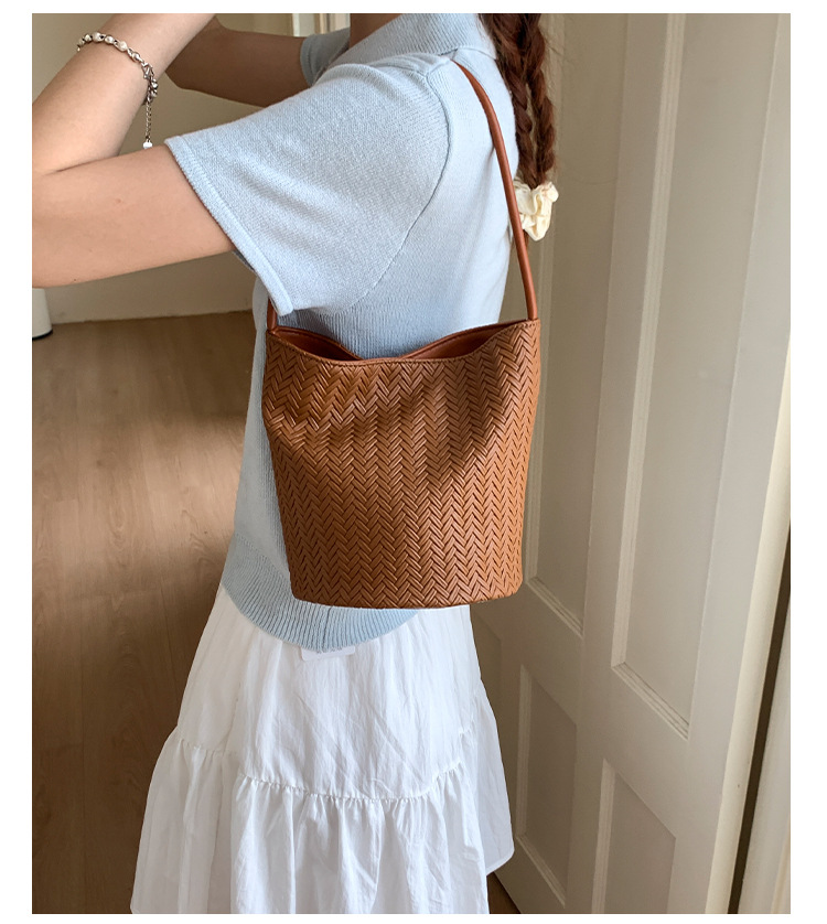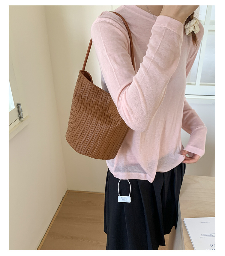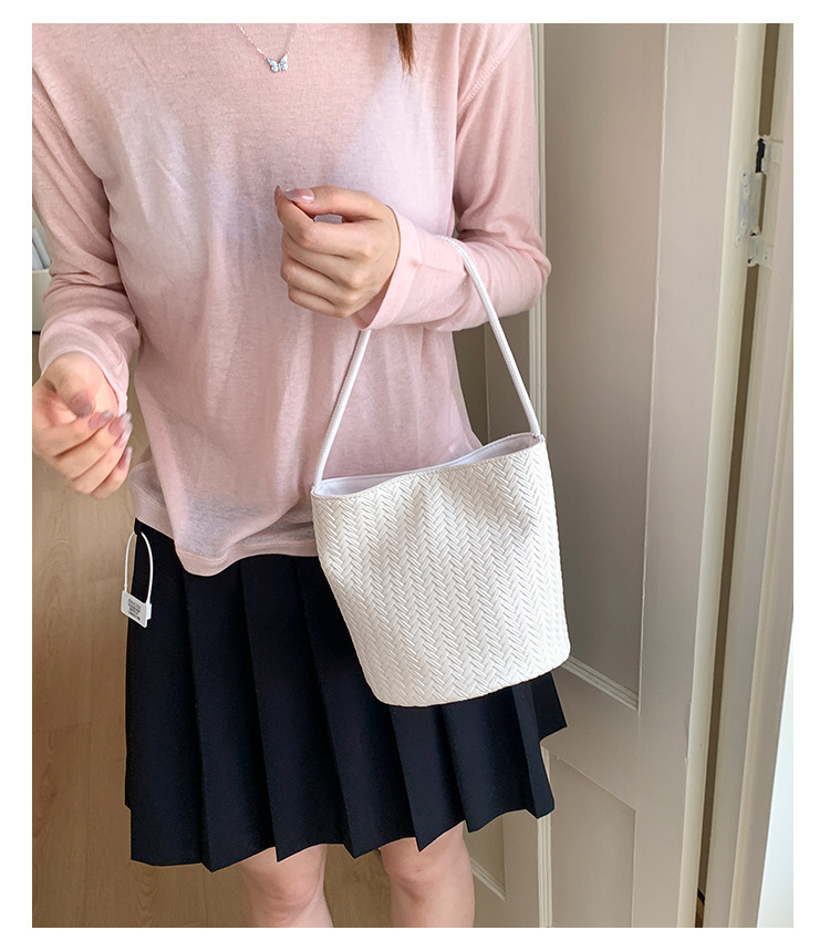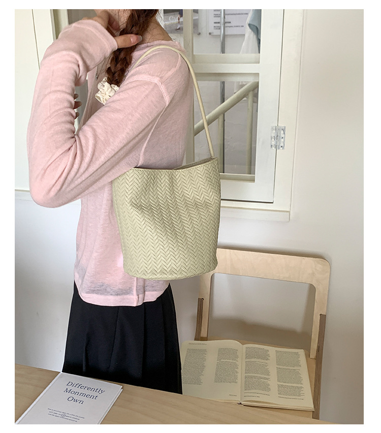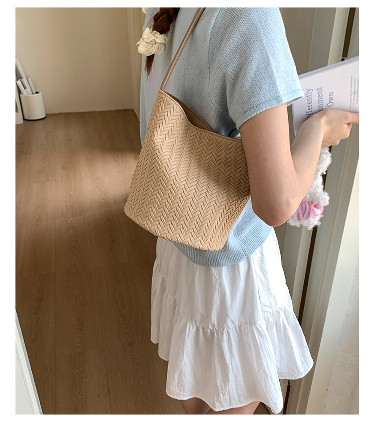 Bolso tejido de gran capacidad de moda bolso de moda 2025 nuevo bolso de cubo salvaje bolso de hombro simple bolso de axila