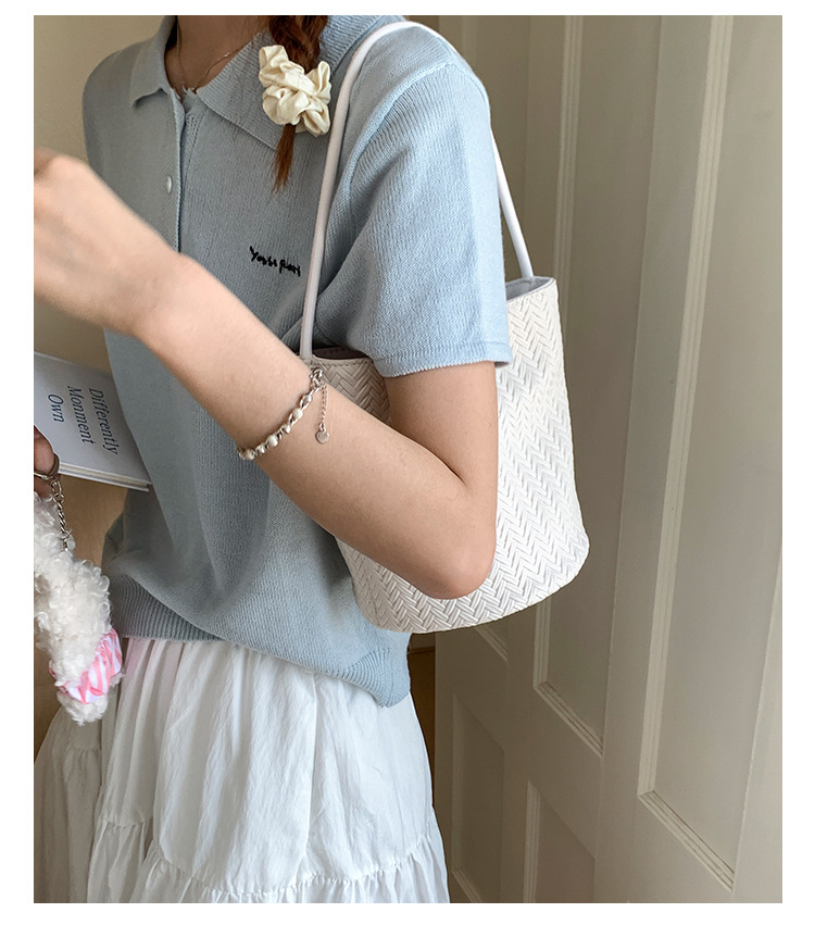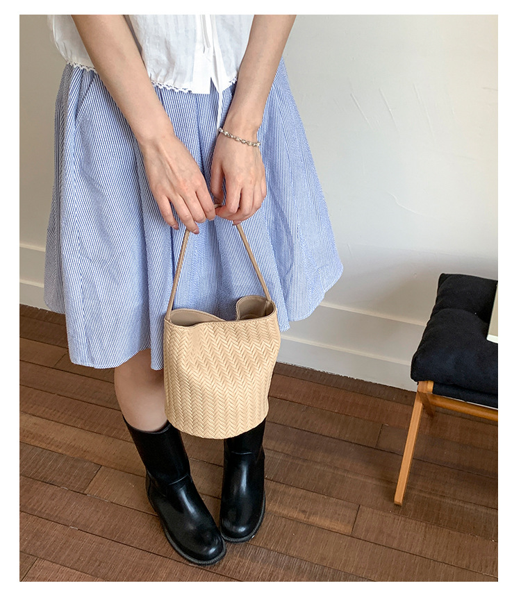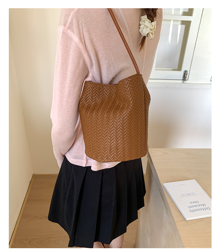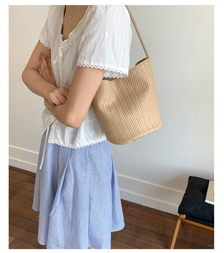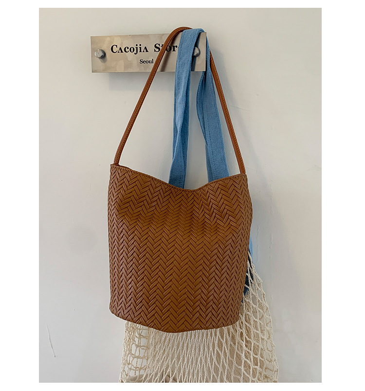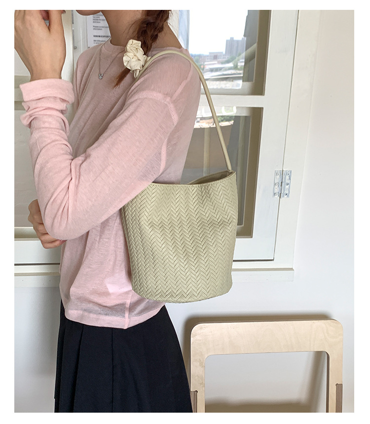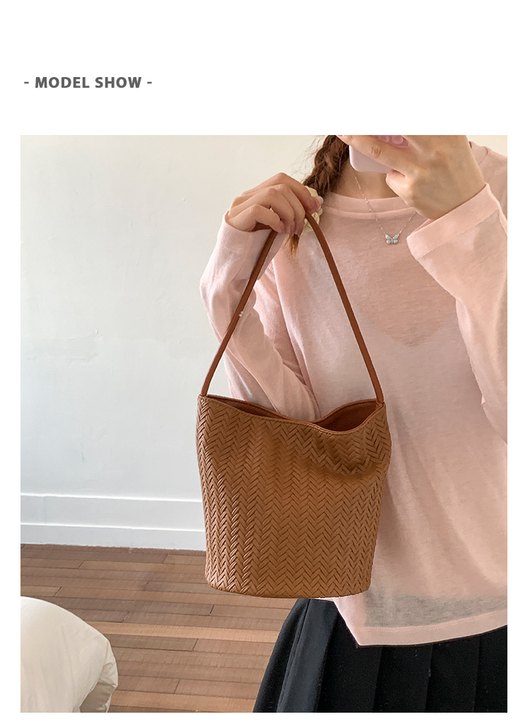 Bolso tejido de gran capacidad de moda bolso de moda 2025 nuevo bolso de cubo salvaje bolso de hombro simple bolso de axila