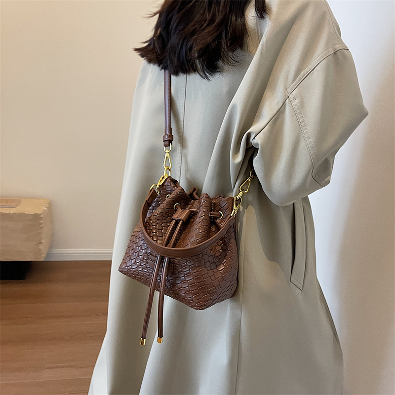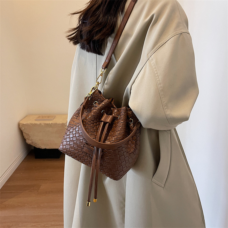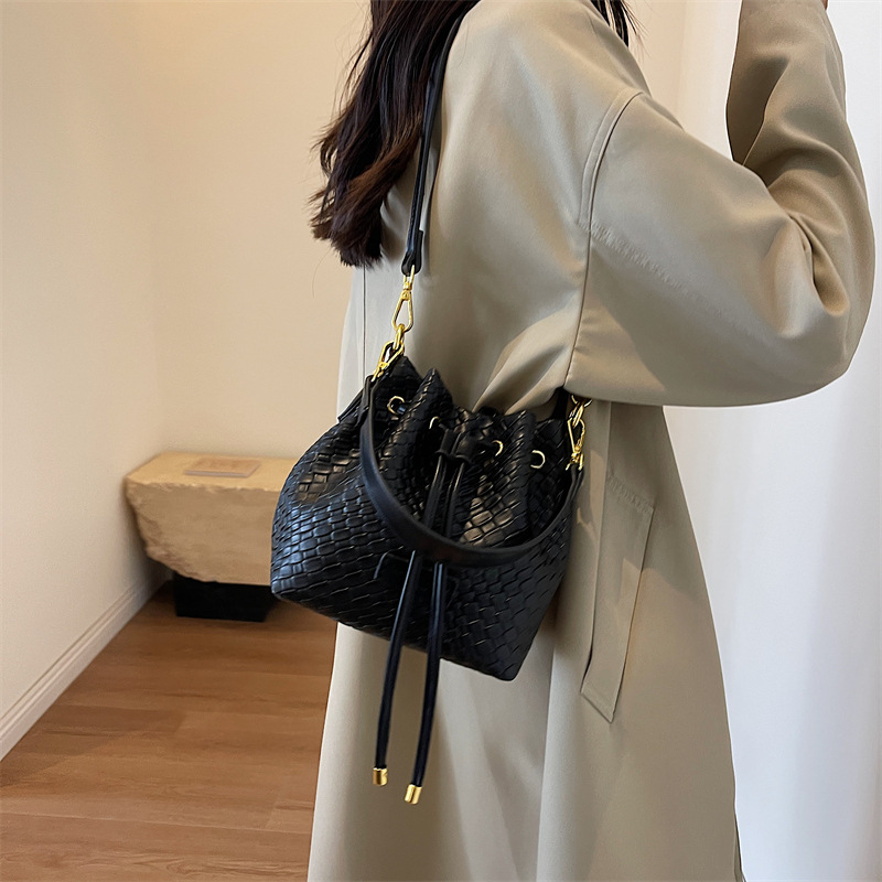 Bolso de cubo portátil tejido de comercio exterior femenino 2025 nuevo estilo estilo estilo occidental todo-fósforo bolso de mensajero de fuego súper casual simple
