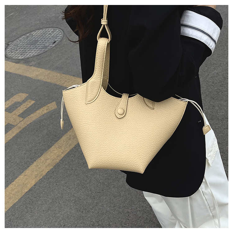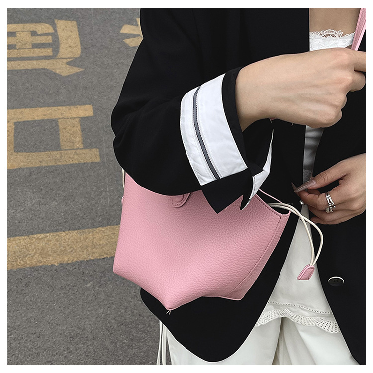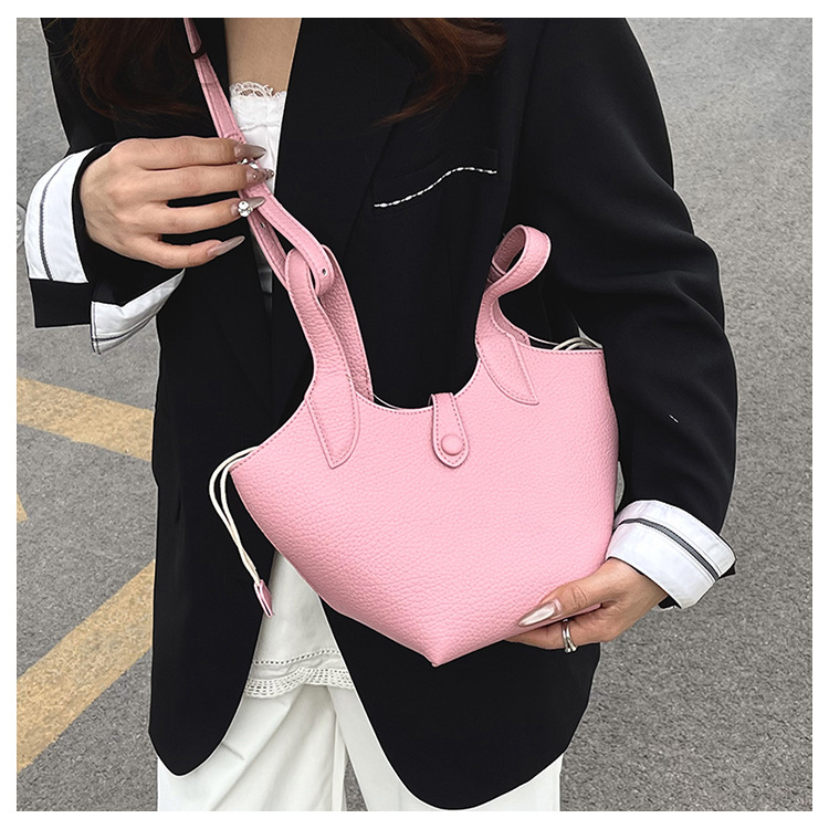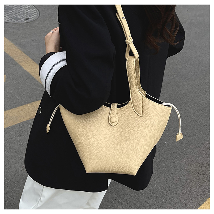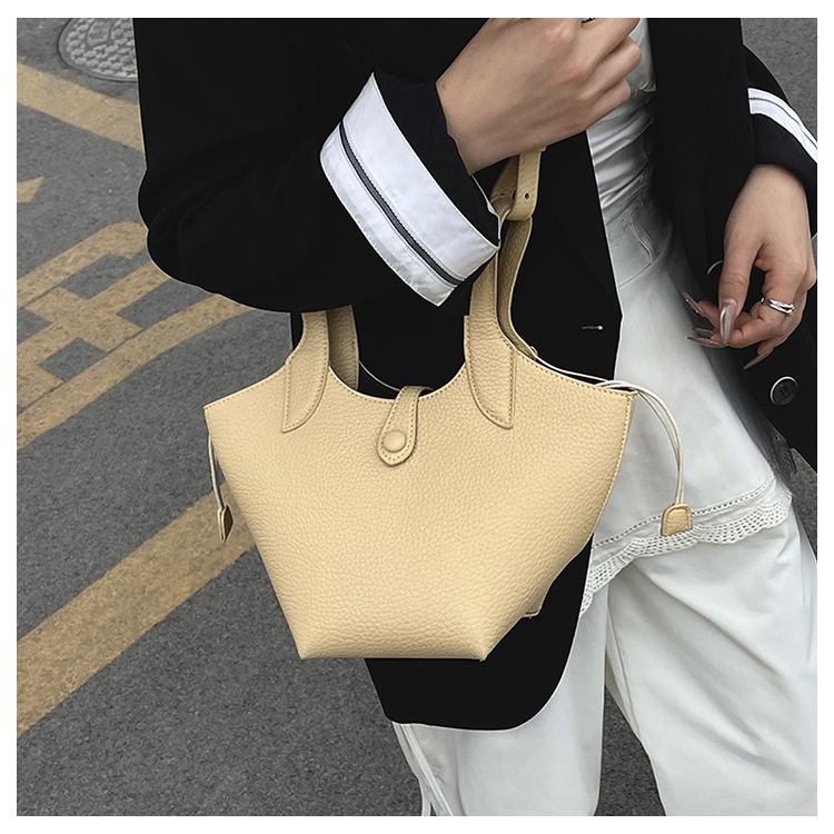 Bolsa de axila de textura de nicho Bolsa de mujer 2025 primavera nuevo bolso de cubo bolso de canasta de mensajero de un solo hombro simple