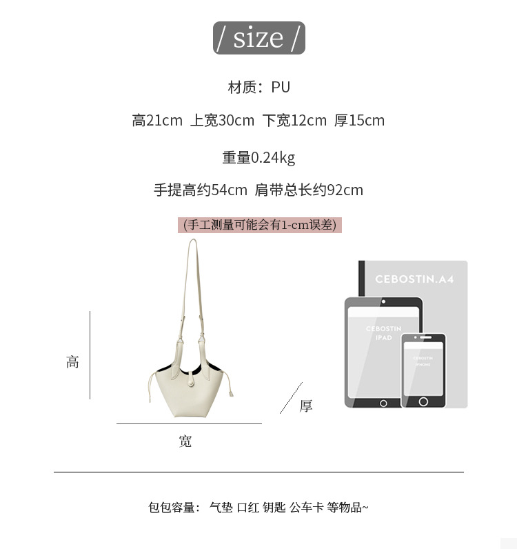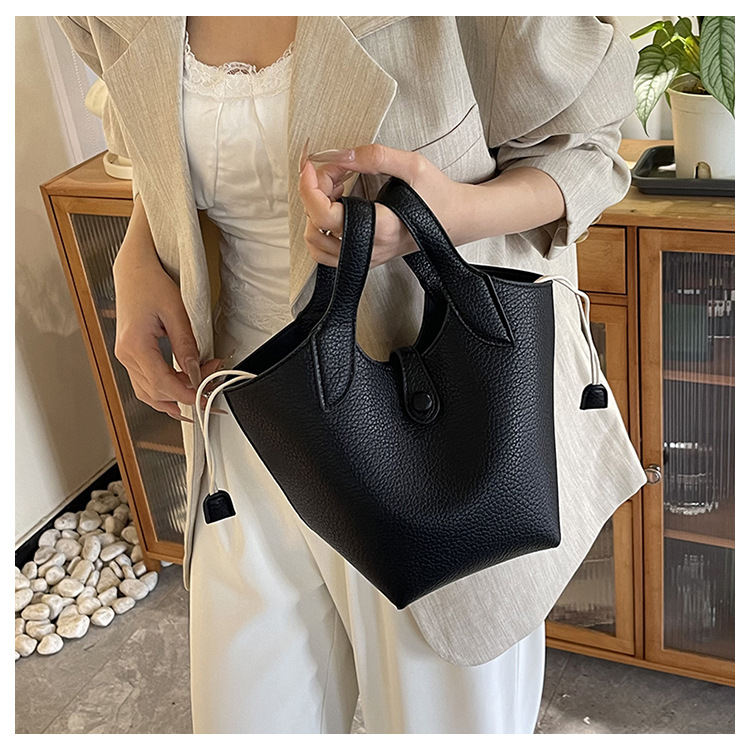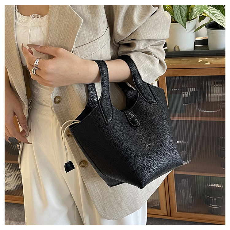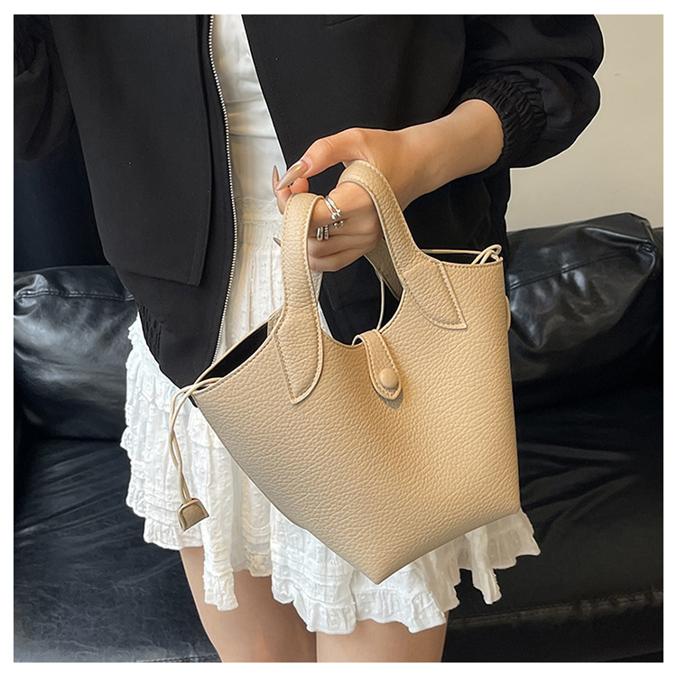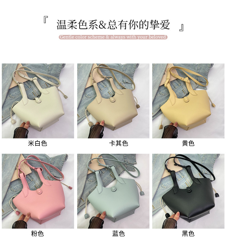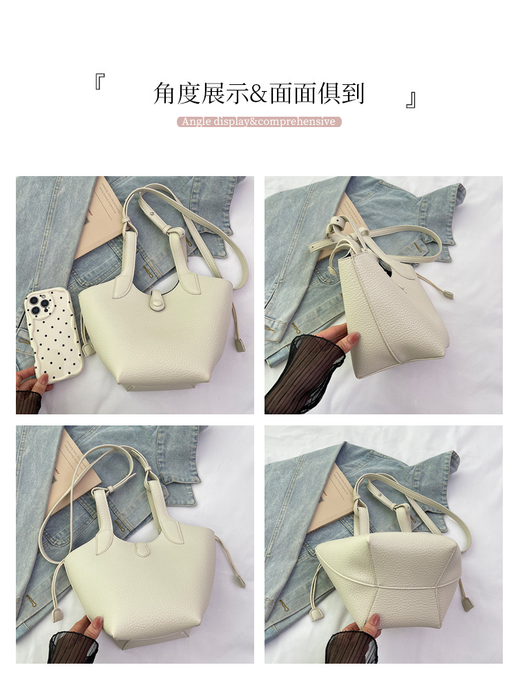 2025 nuevo bolso de cubo portátil de color sólido de diseño de nicho para mujer, bolso de mensajero de un solo hombro simple y moderno de alta gama para mujer