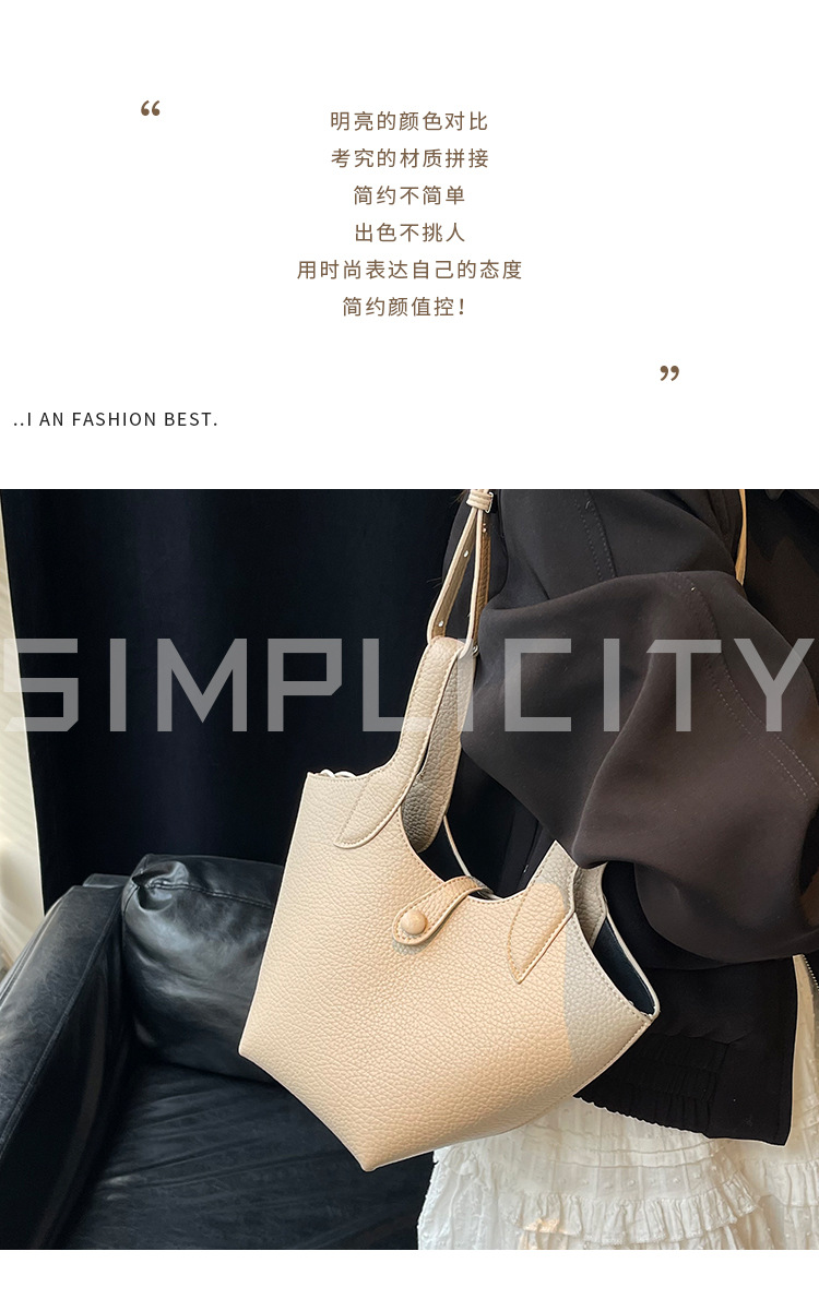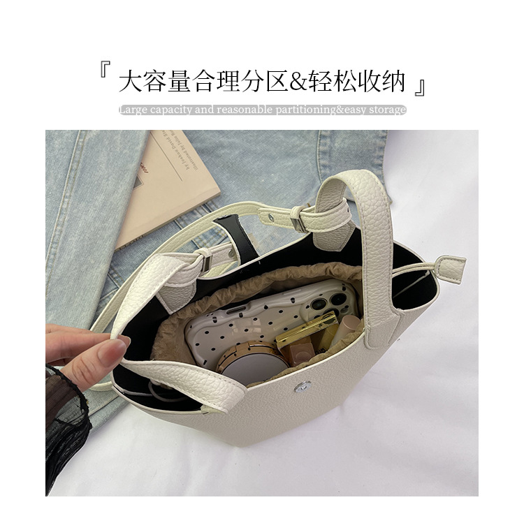 Bolso de mano de moda versátil para mujeres 2025 nuevo color de contraste de moda de un solo hombro bolso de cubo de alta sensación de mochila casual