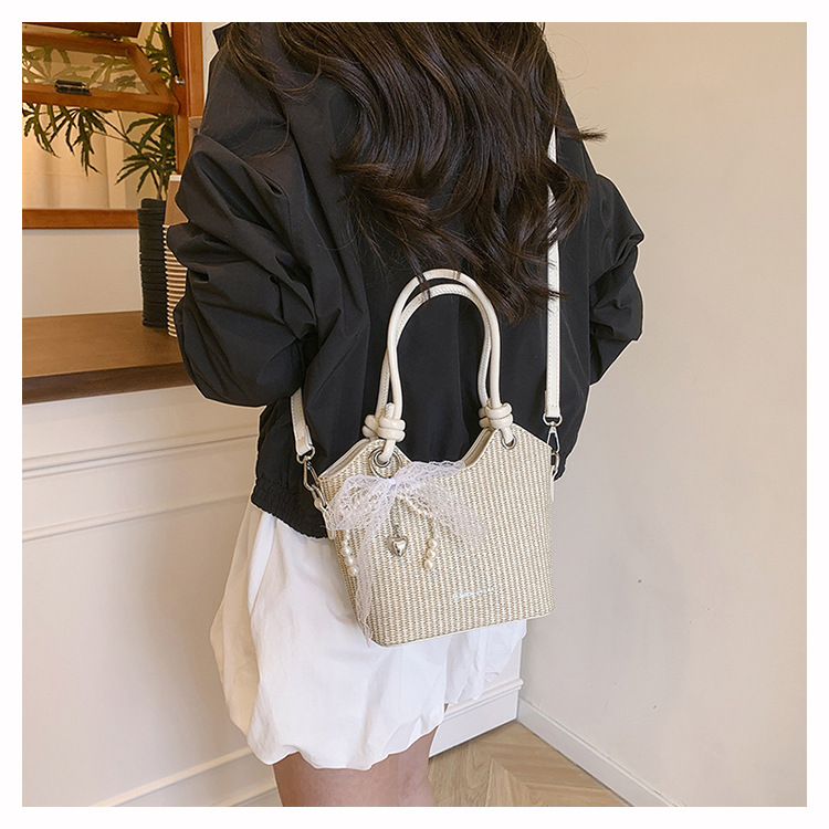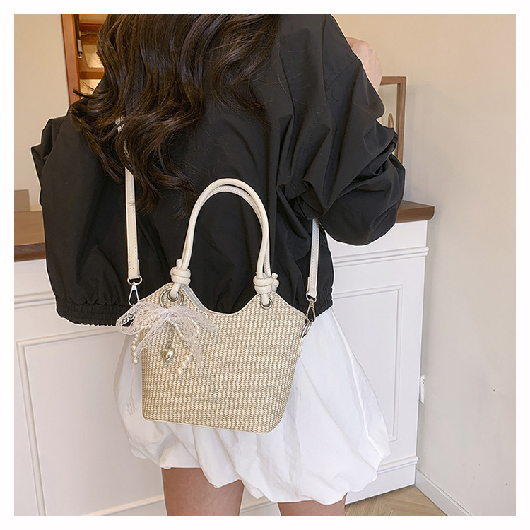 Bolso tejido femenino de gran capacidad 2025 verano nuevo bolso de playa de vacaciones junto al mar estilo de viaje bolso tejido de paja portátil
