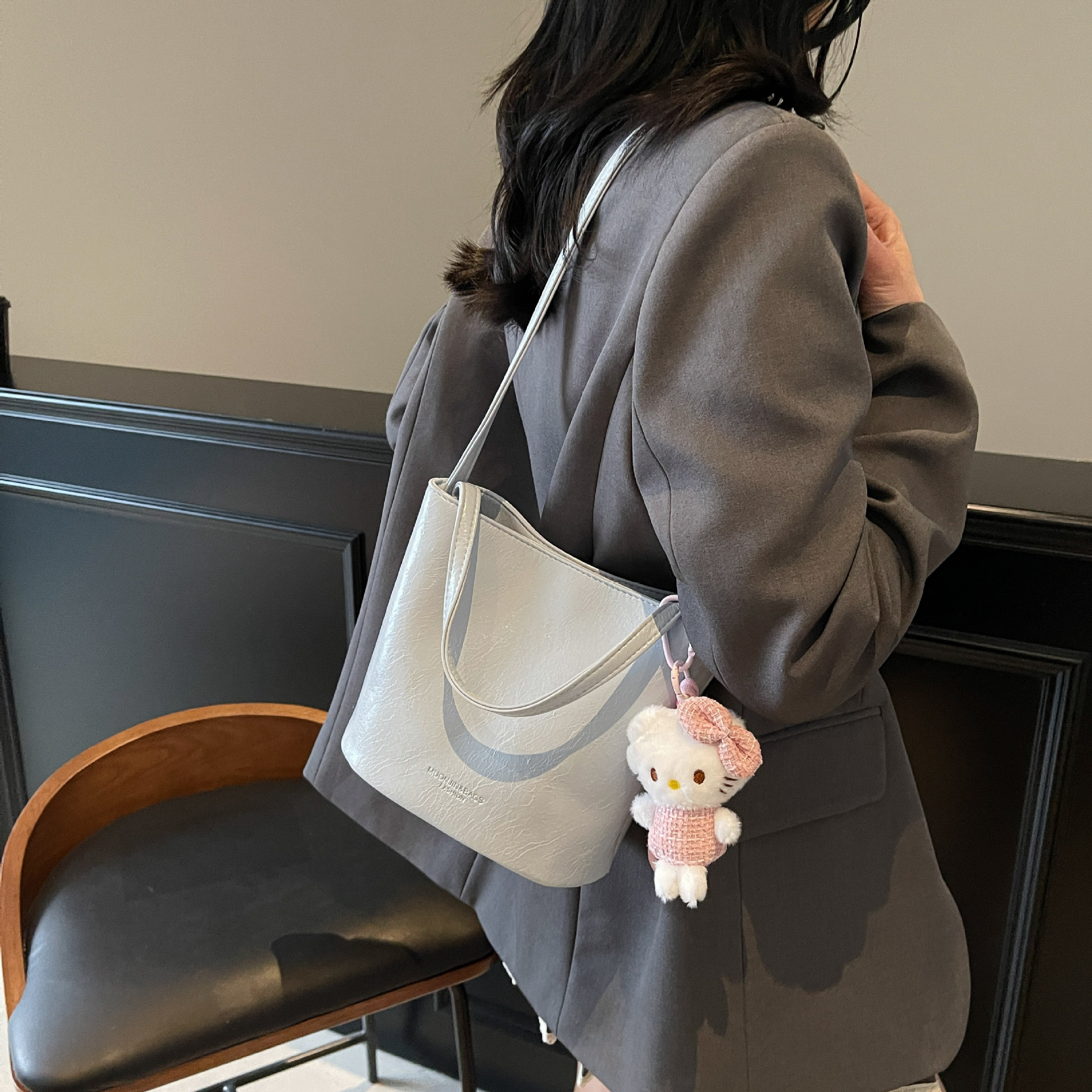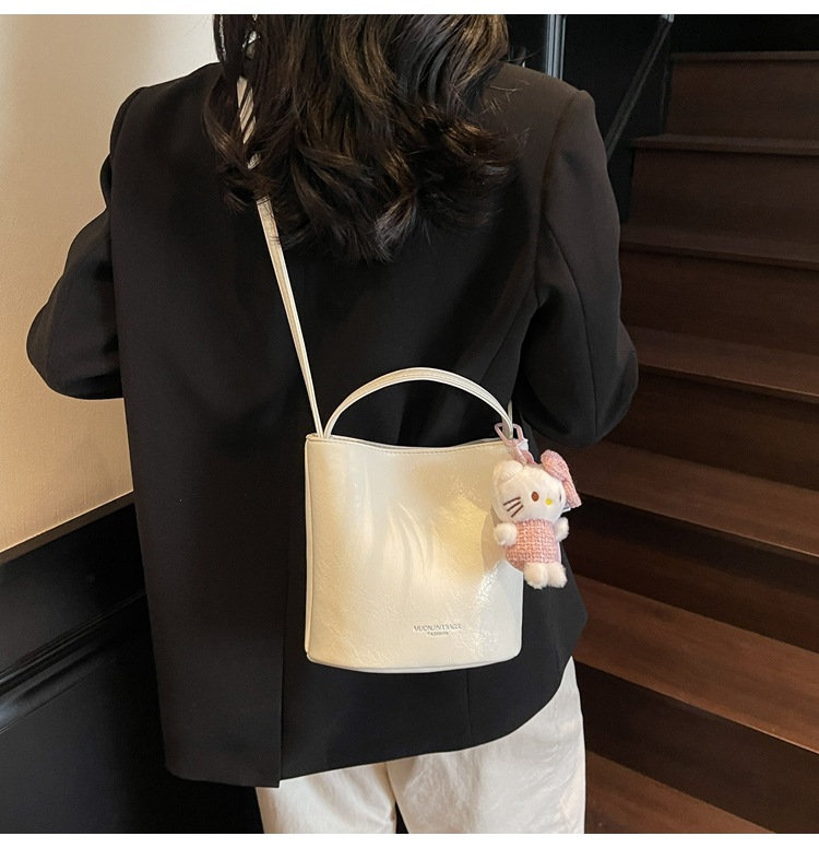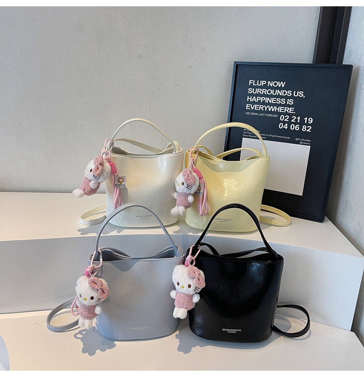 Bolso de mano retro de alto nivel, bolso de balde de agua universal para mujeres 2025, nuevo estilo coreano de invierno para niños y madres, bolso de hombro.