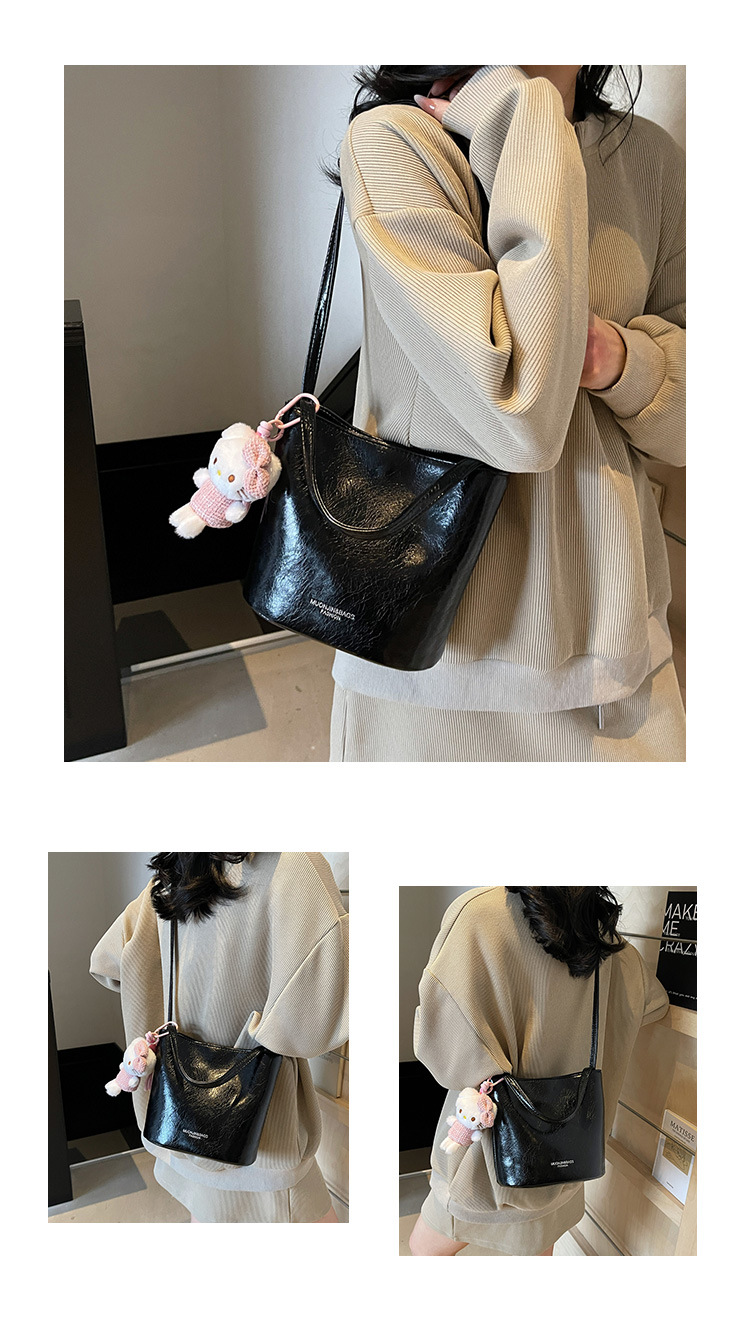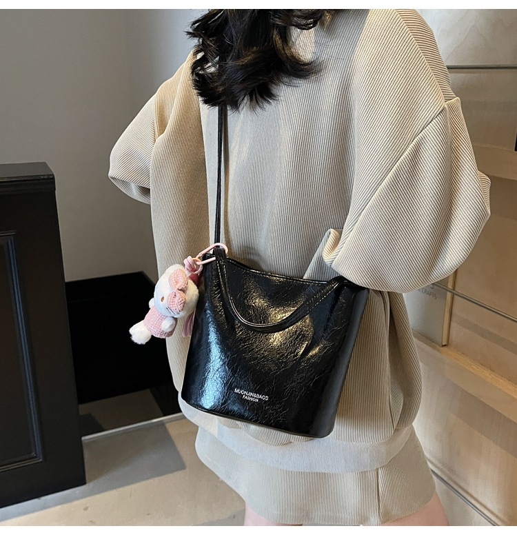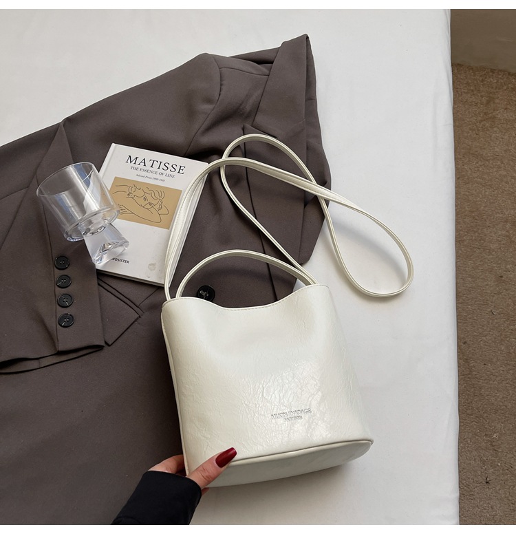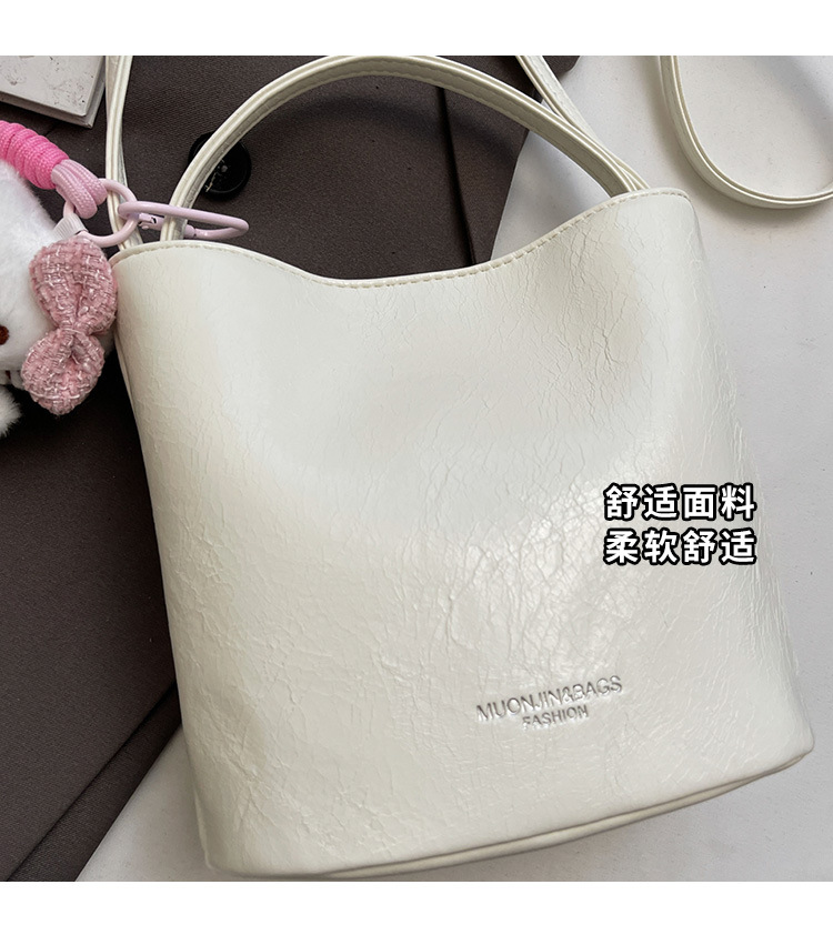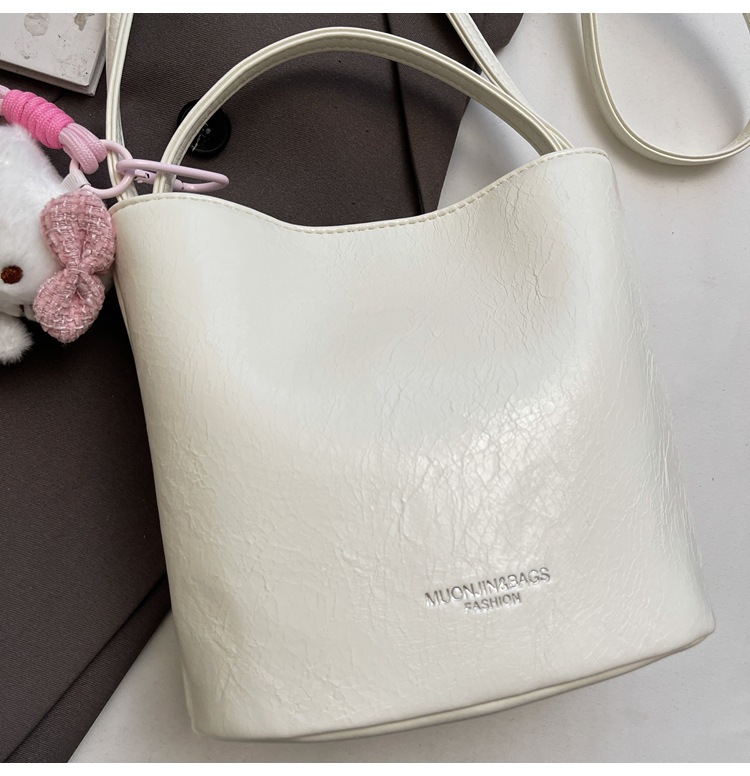 Bolsa de mano de cuero de aceite para mujeres 2024 nuevo otoño y invierno moda moda moda de mano portada con un hombro bolso de cubo