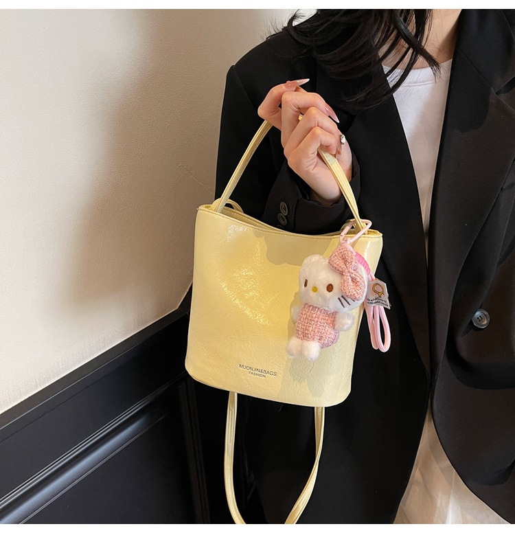 Bolso de cubo portátil de todo fósforo de moda de alta gama para mujer 2025 nuevo estilo bolso de mensajero de hombro simple casual simple