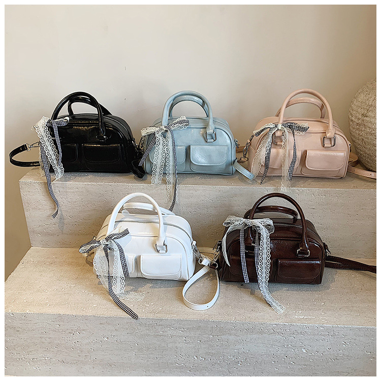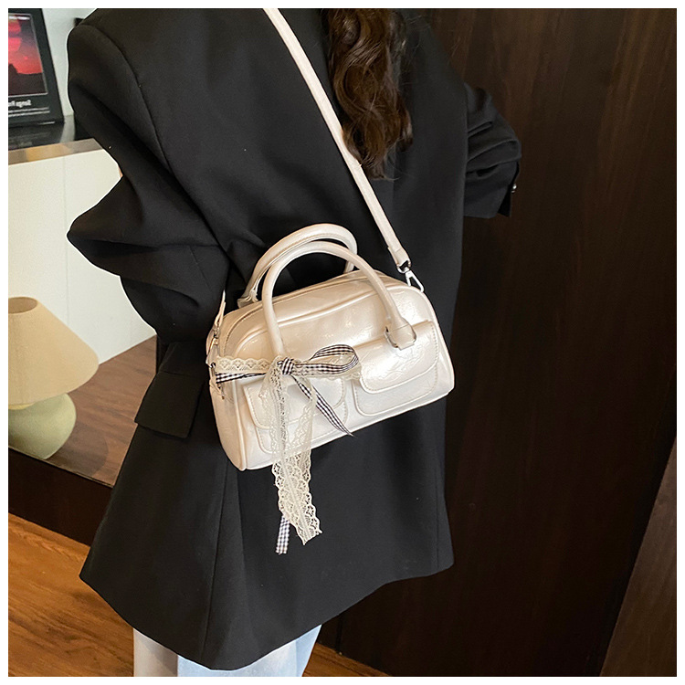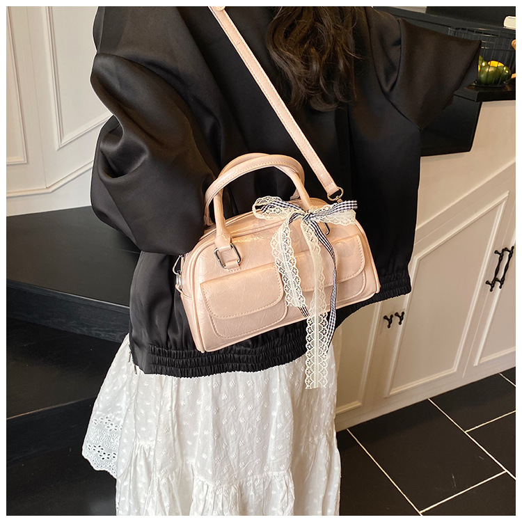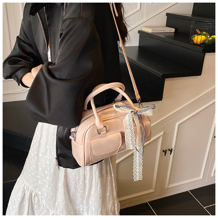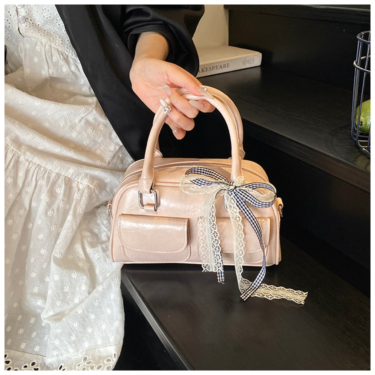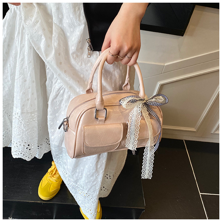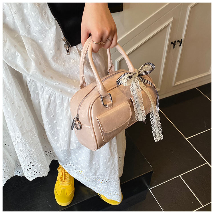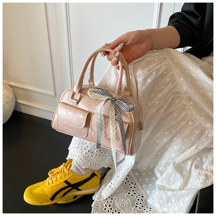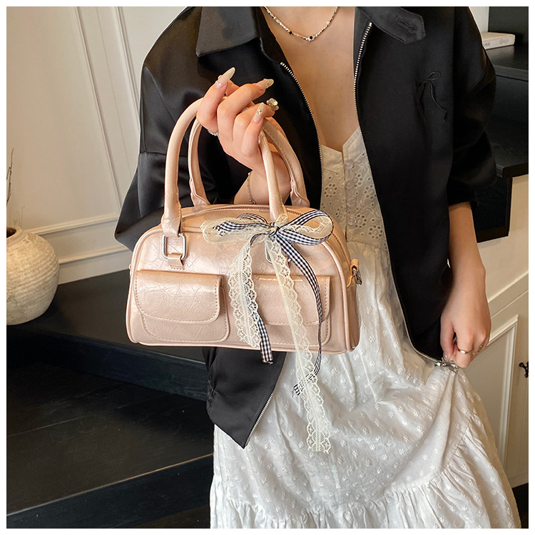 Bolso de Boston portátil casual transfronterizo para mujer 2025 nuevo bolso de mensajero de hombro con lazo simple y versátil coreano