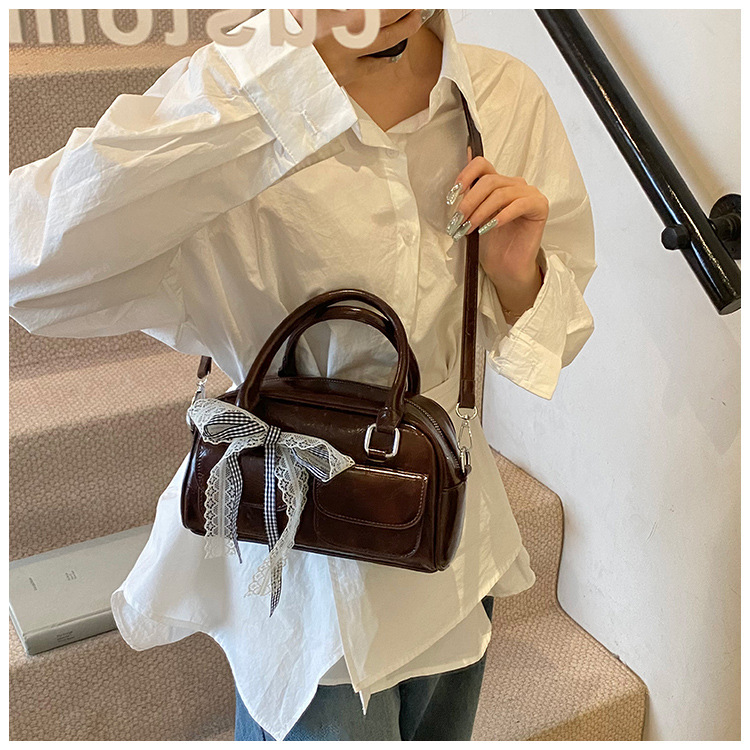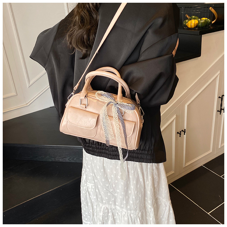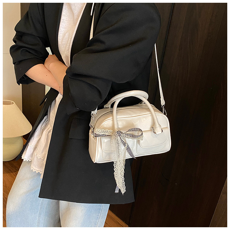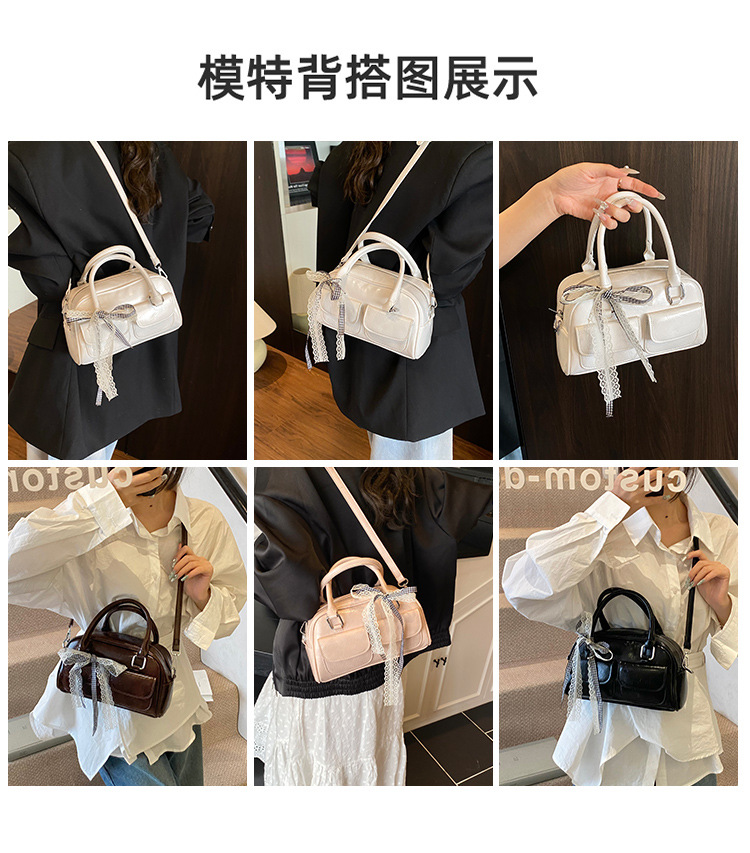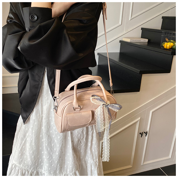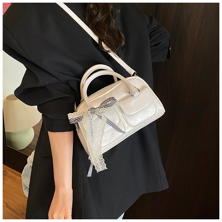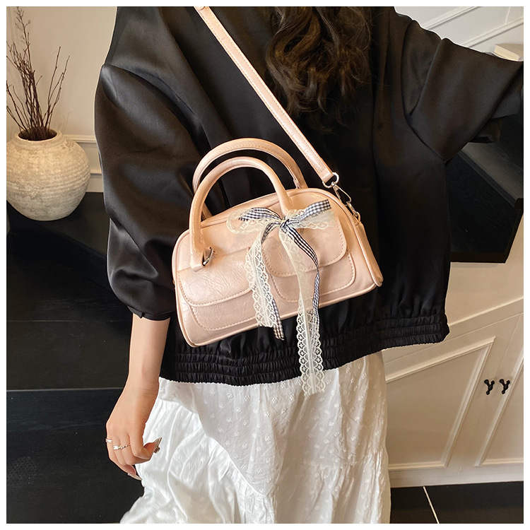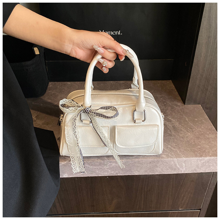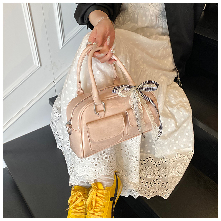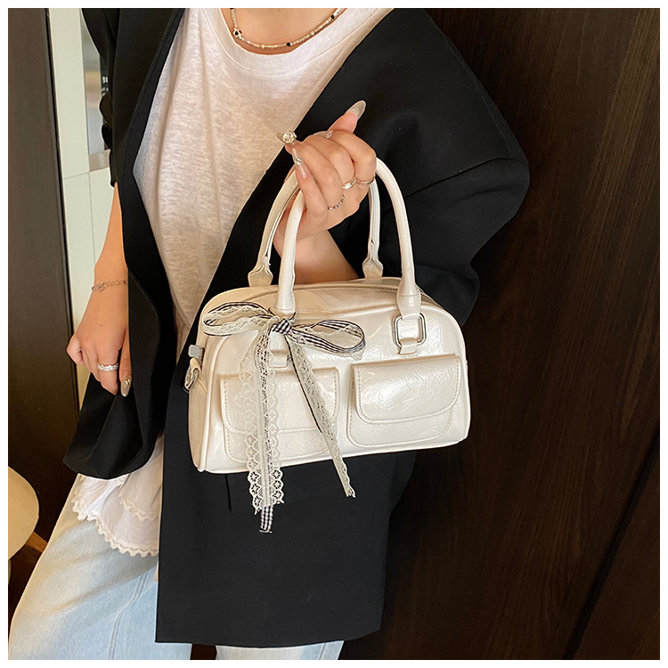 Bolso de Boston portátil casual transfronterizo para mujer 2025 nuevo bolso de mensajero de hombro con lazo simple y versátil coreano