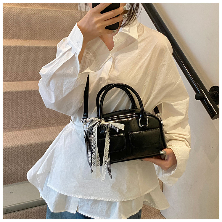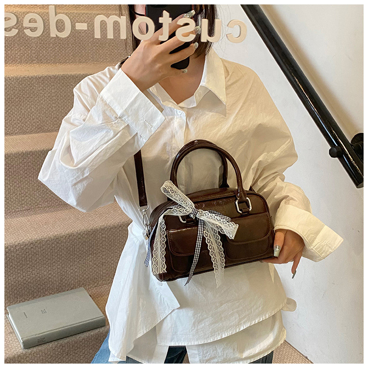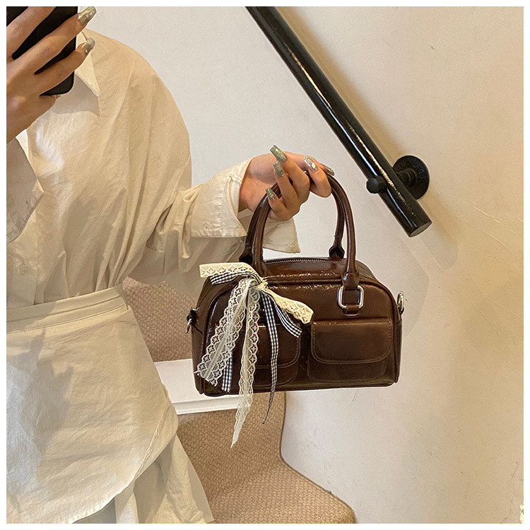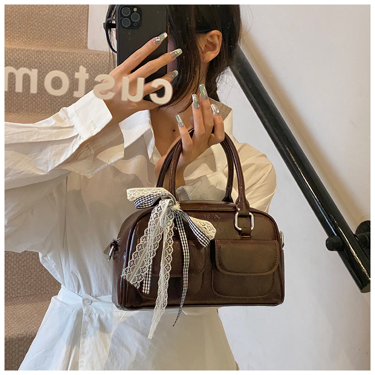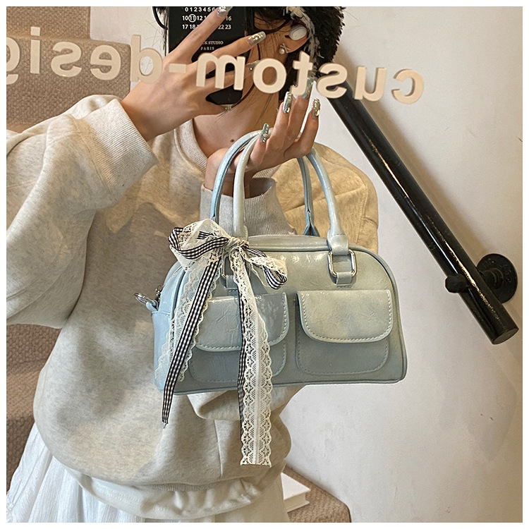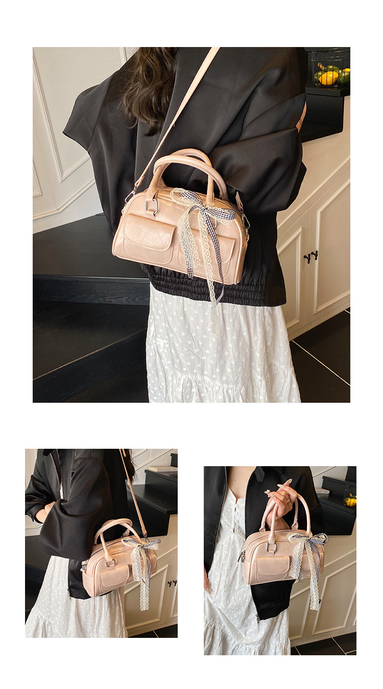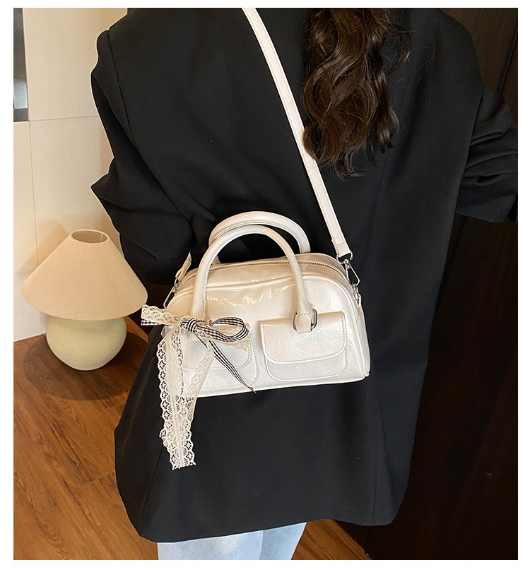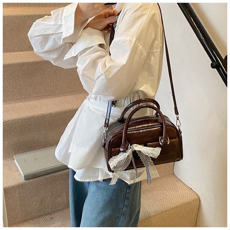 Bolso de Boston portátil casual transfronterizo para mujer 2025 nuevo bolso de mensajero de hombro con lazo simple y versátil coreano