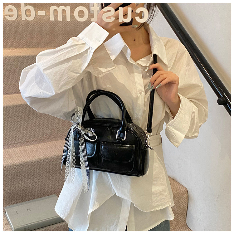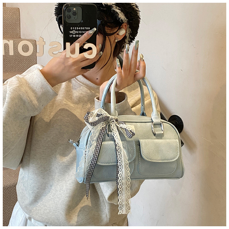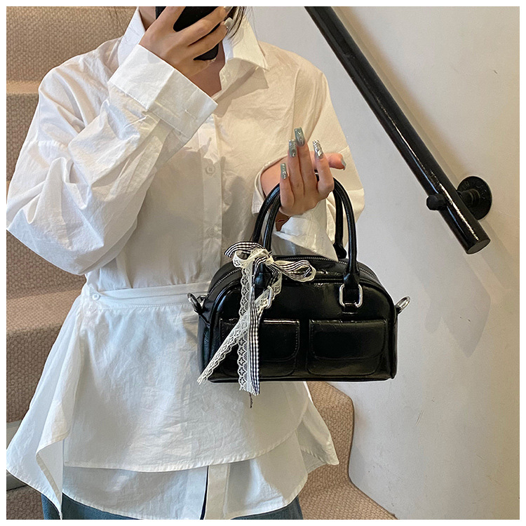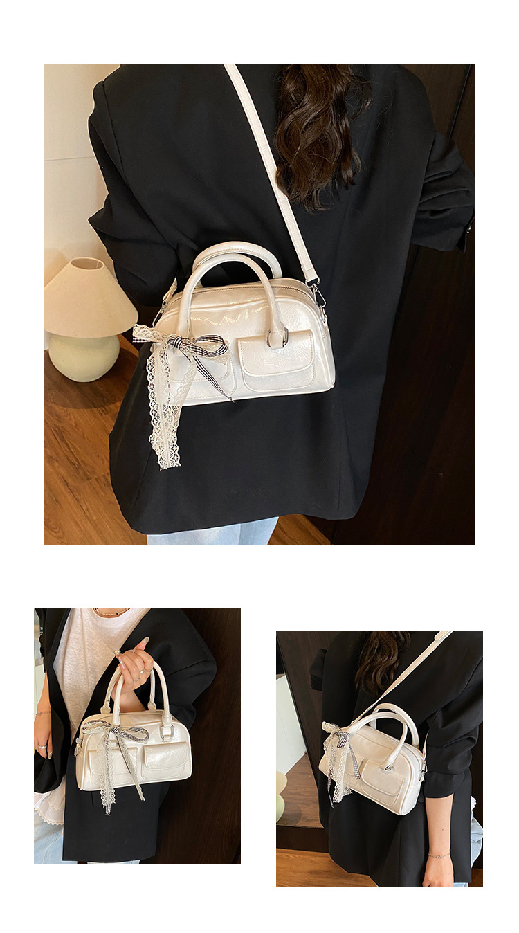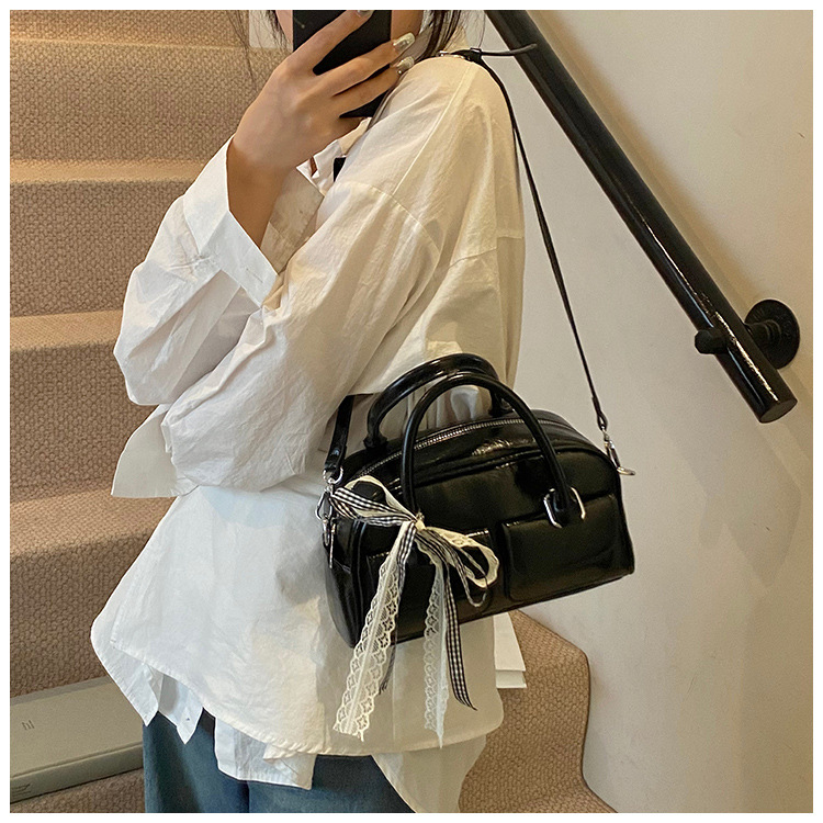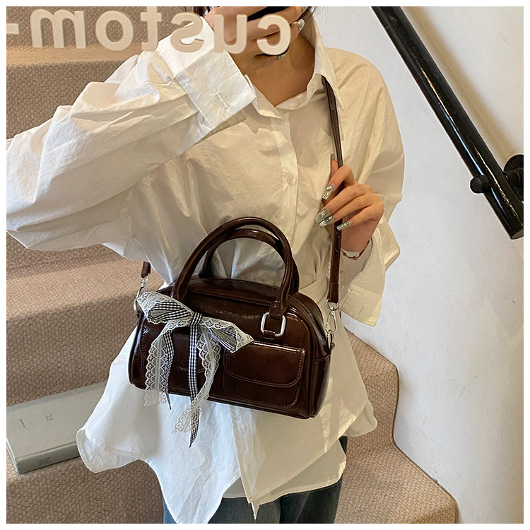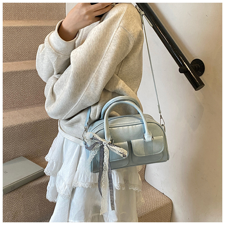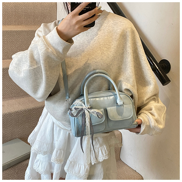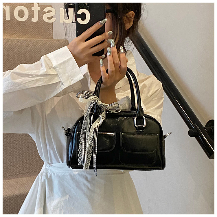 Bolso de Boston portátil casual transfronterizo para mujer 2025 nuevo bolso de mensajero de hombro con lazo simple y versátil coreano