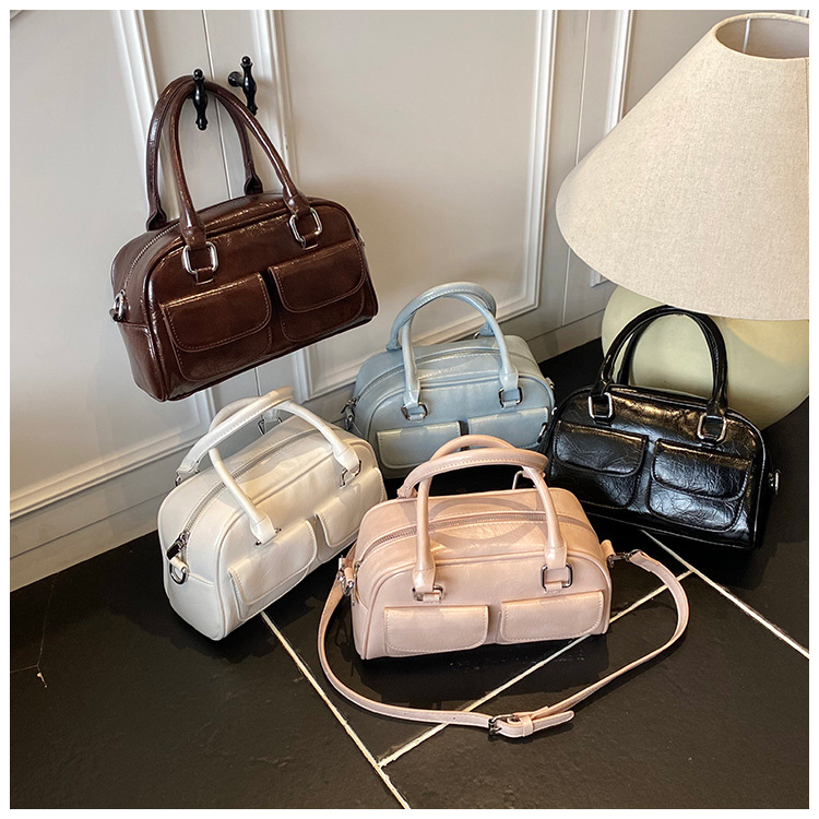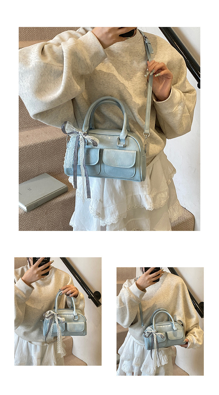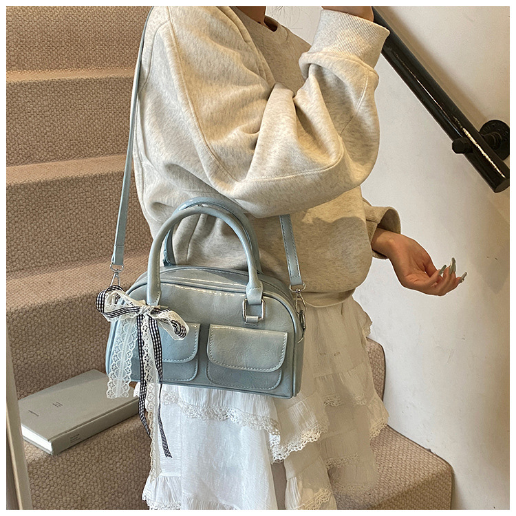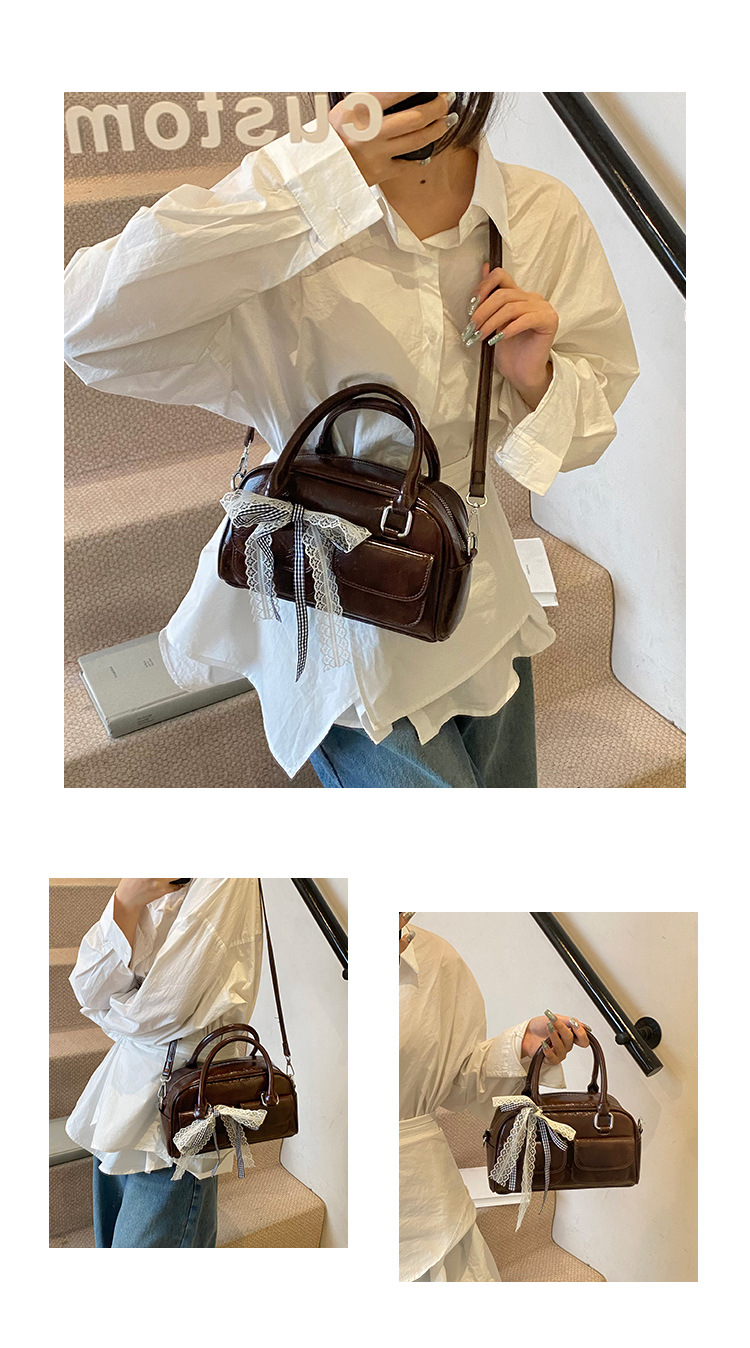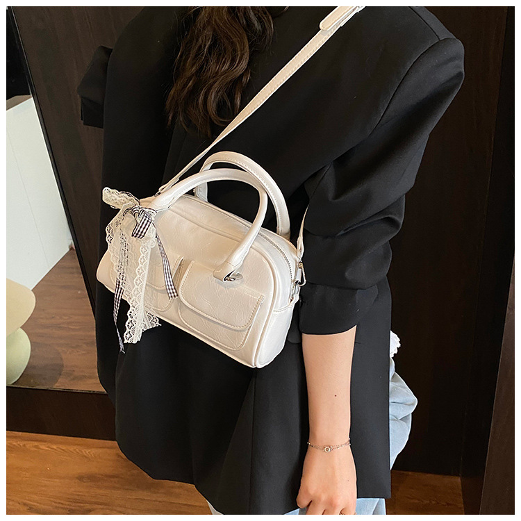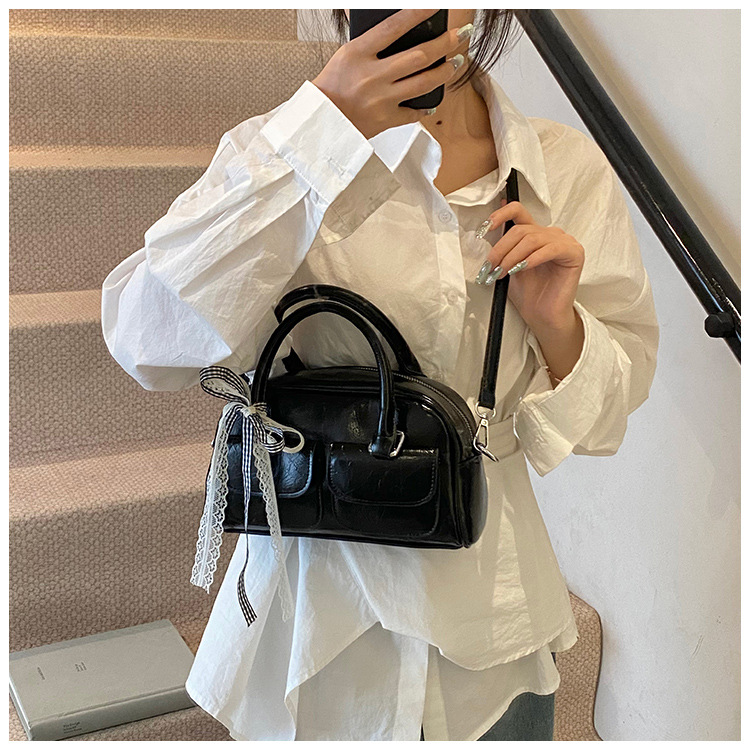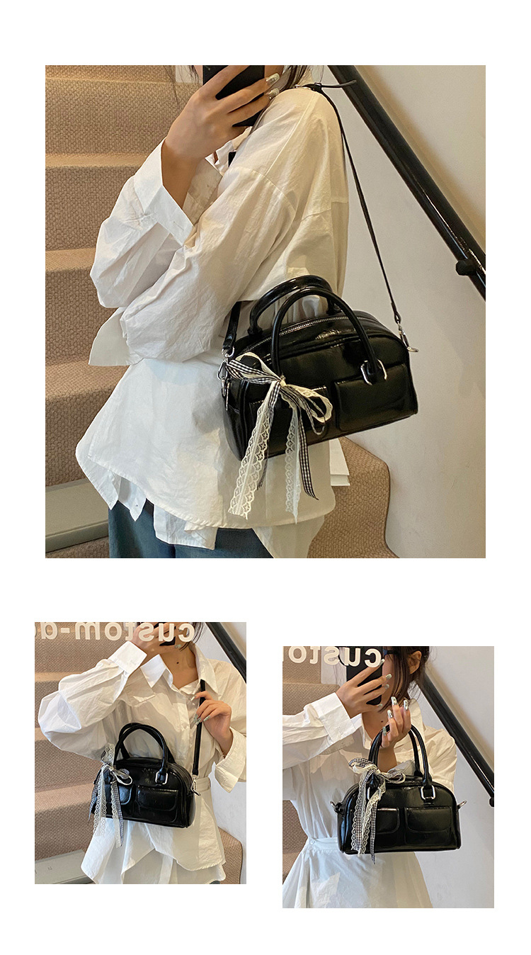 Bolso de Boston portátil casual transfronterizo para mujer 2025 nuevo bolso de mensajero de hombro con lazo simple y versátil coreano