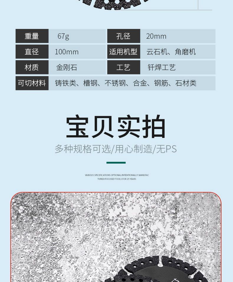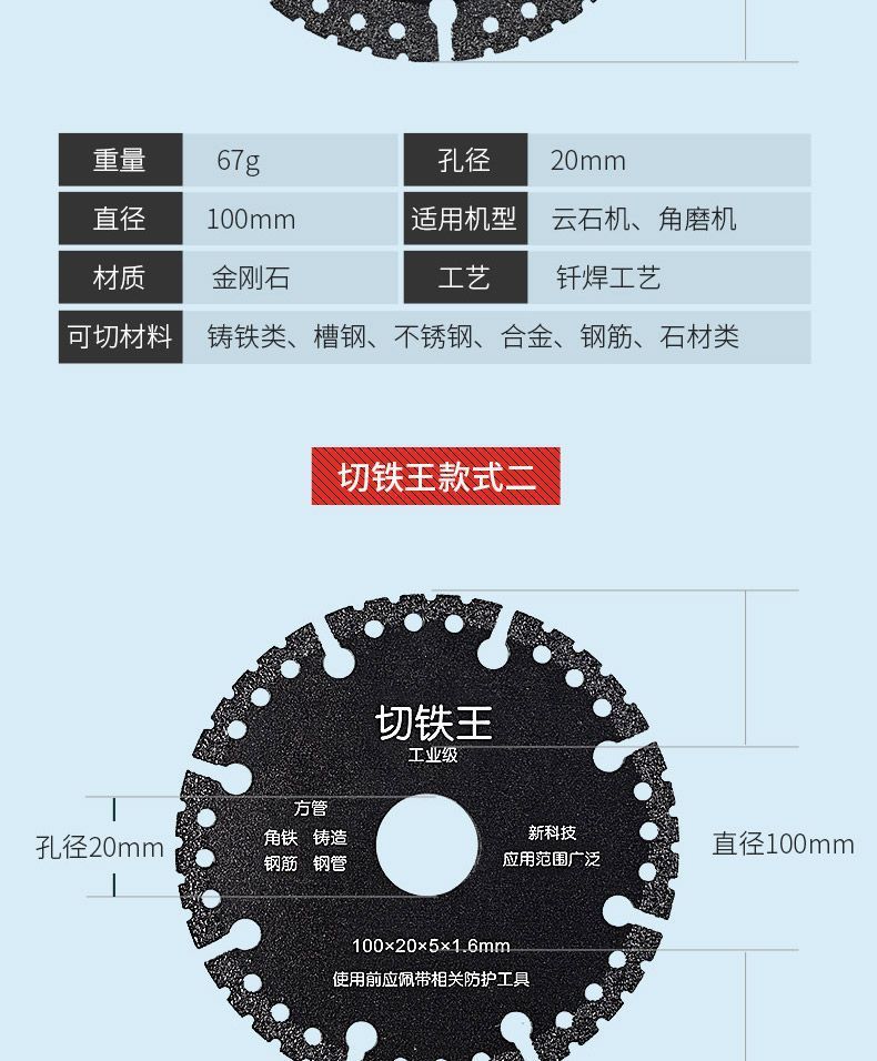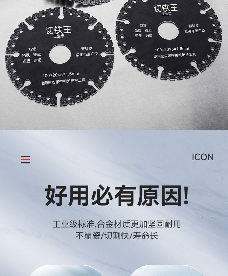 Importación de corte de hierro rey hoja de corte de acero inoxidable hoja de sierra de metal de aluminio máquina de piedra de nube diamante molino de ángulo accesorios