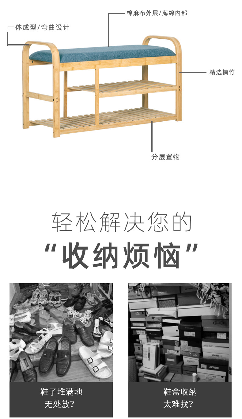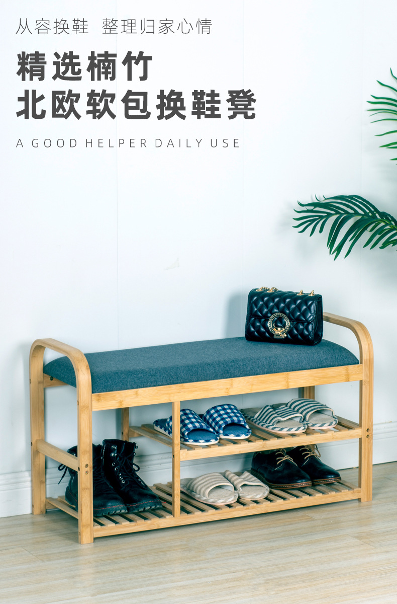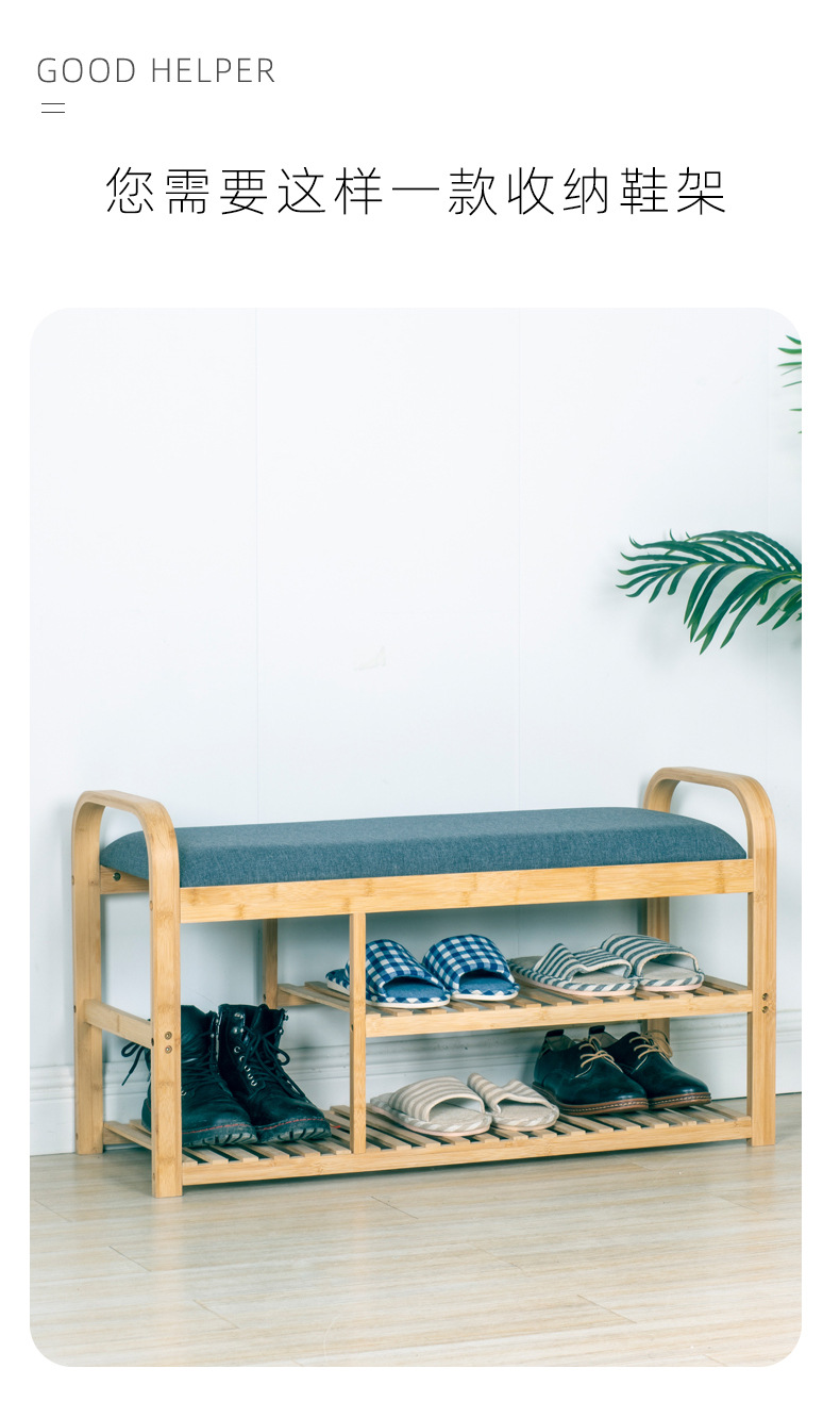 Zapatero simple Puerta de múltiples capas para el hogar portátil Cambio de zapatos taburete a prueba de polvo gabinete de zapatos almacenamiento económico estante de bambú OFERTA ESPECIAL