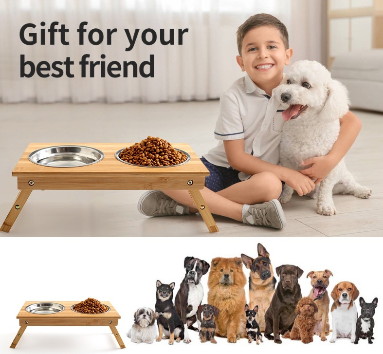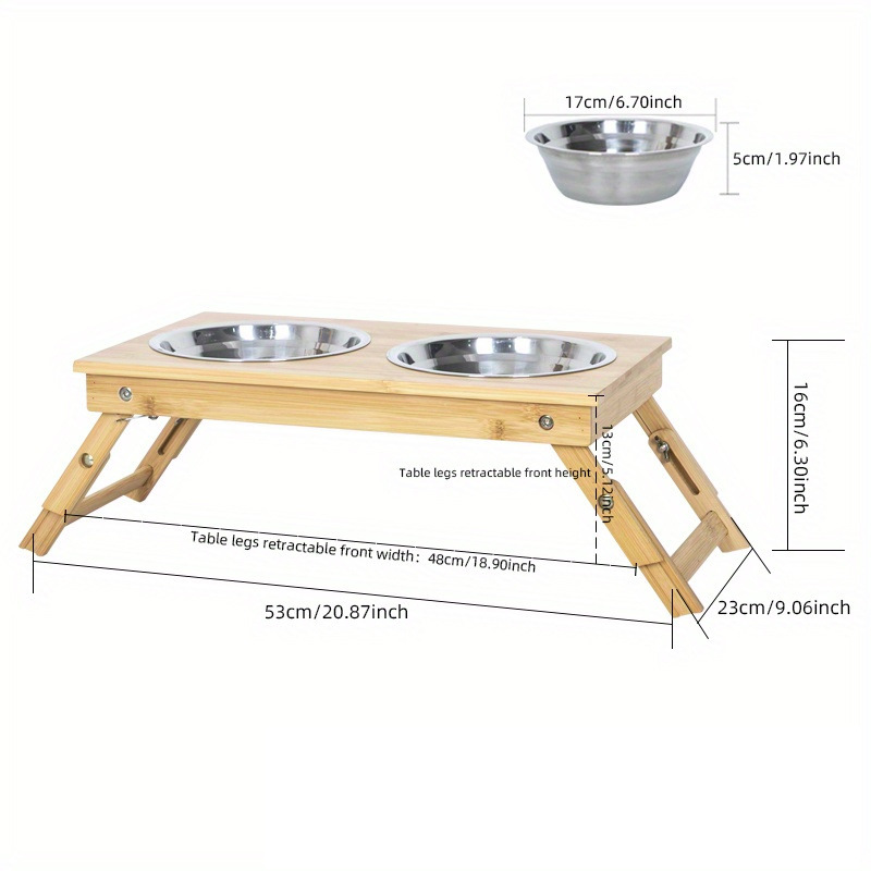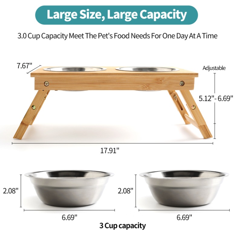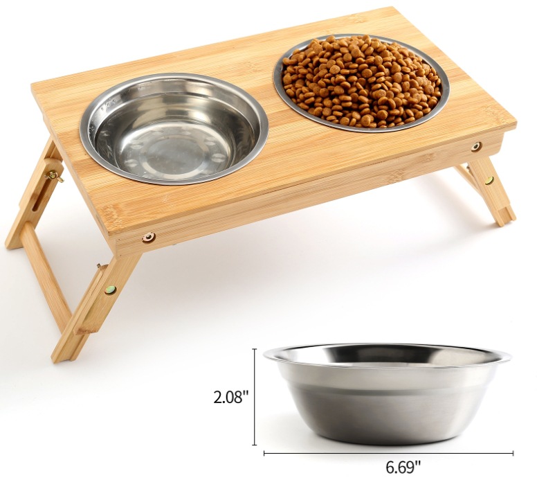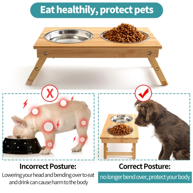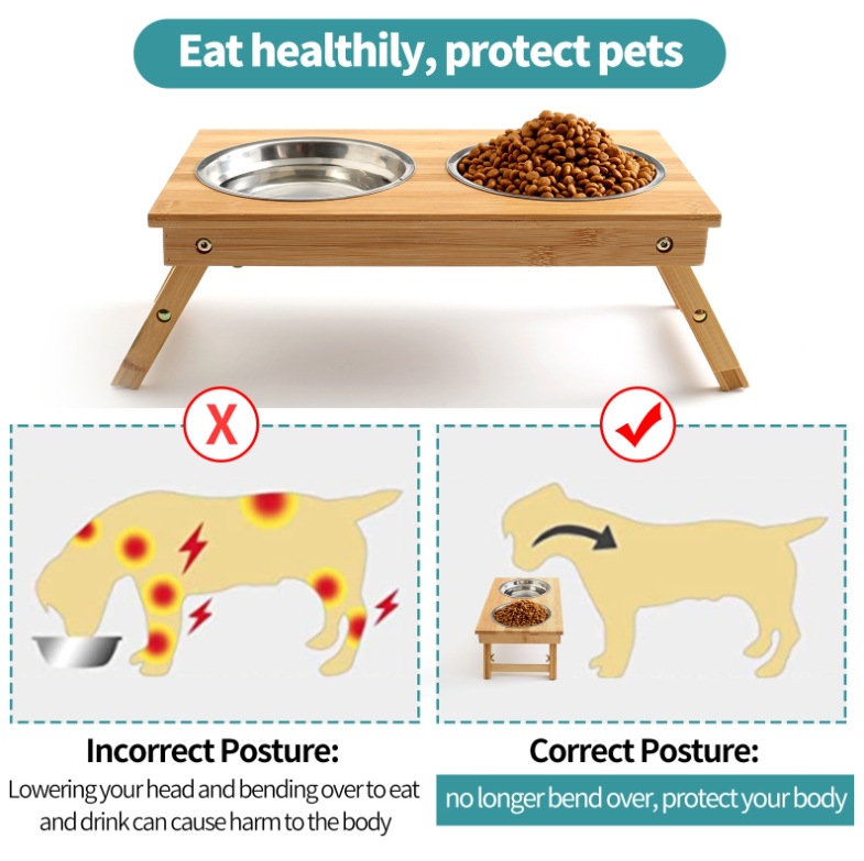 Cuenco para gatos Cuenco doble Cuenco con ángulo de inclinación Protección de la columna cervical Marco de madera de bambú Perros Pets Boca inclinada Mesa de comedor para mascotas Cuenco para perros Cuenco de cerámica