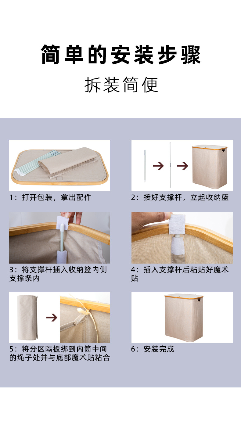 Transfronteriza Amazon cesta de lavandería cesta de almacenamiento plegable mango de madera cesta de almacenamiento hogar lavandería cesta de almacenamiento de tela