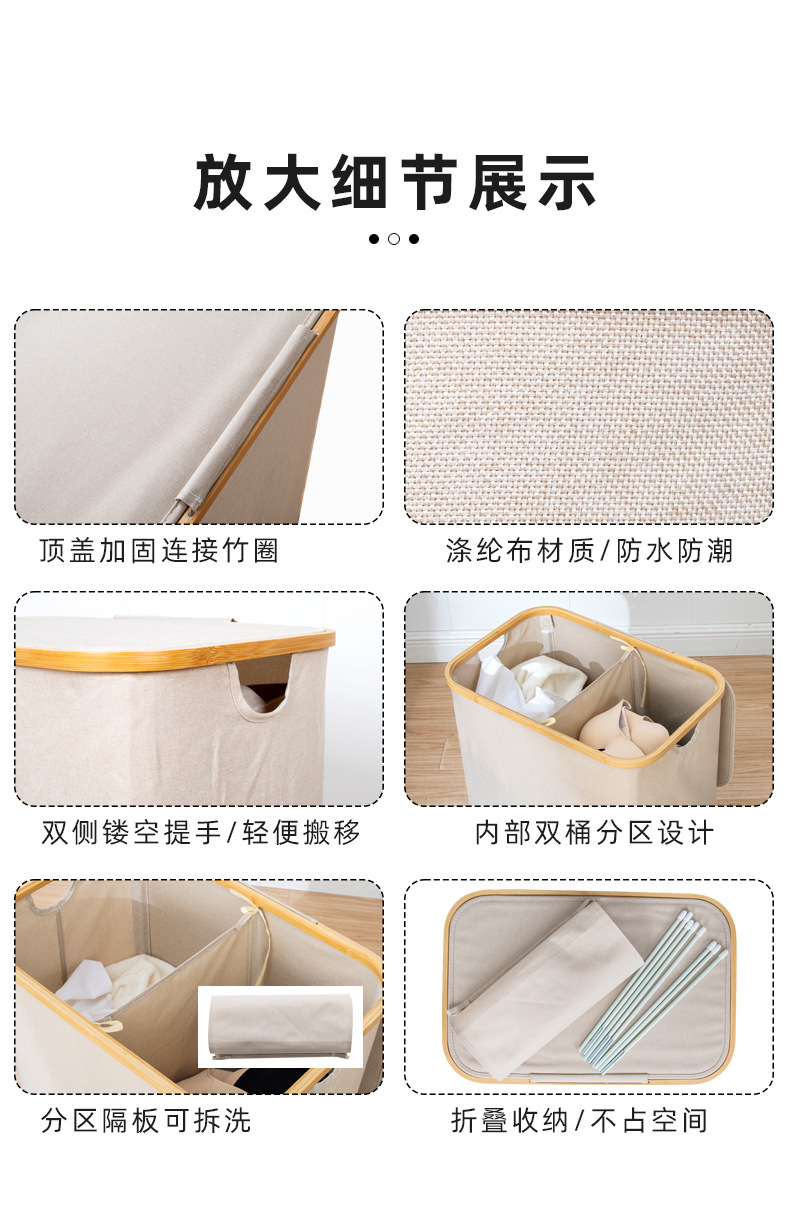Cesta de lavandería cesta de lavandería plegable Almacenamiento de bambú ropa sucia cesta de almacenamiento casa dormitorio ins cesta de almacenamiento Nórdico