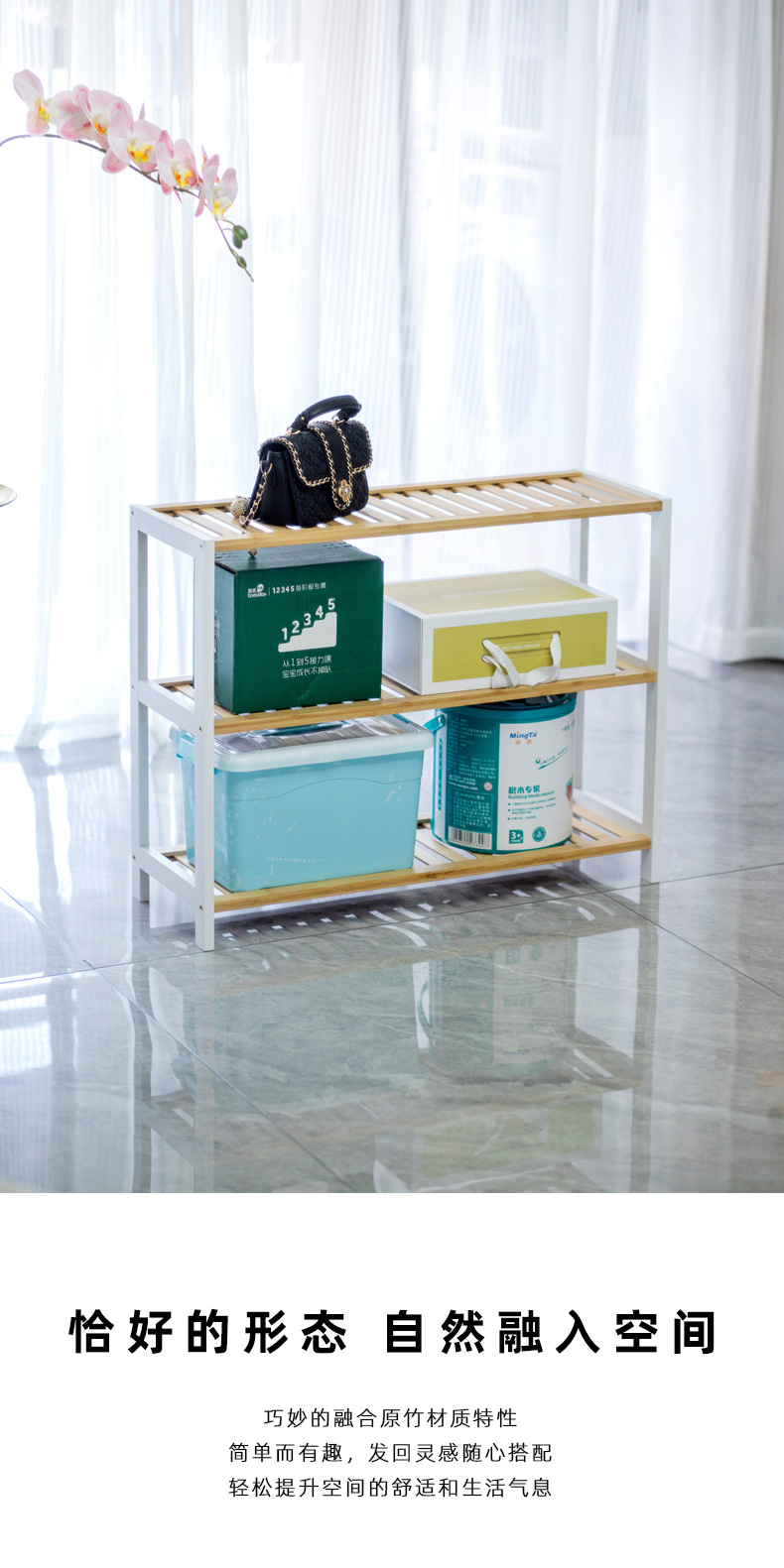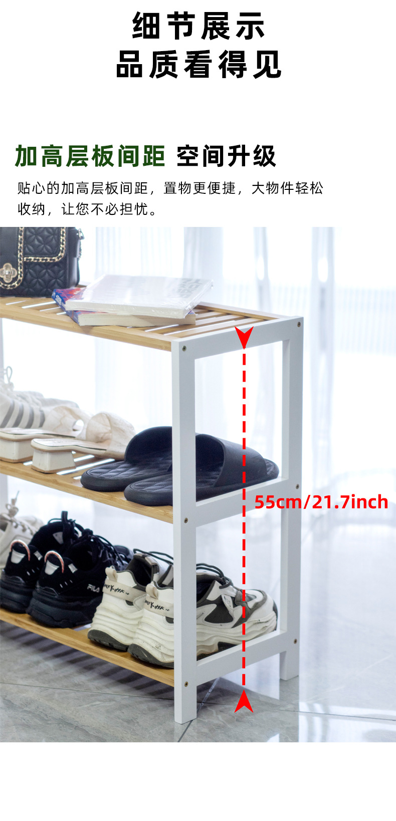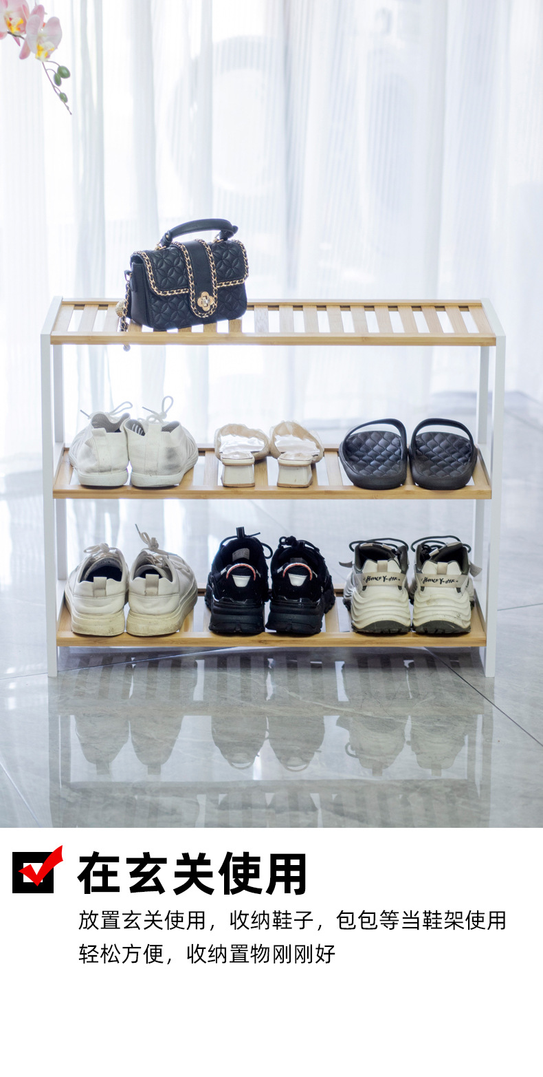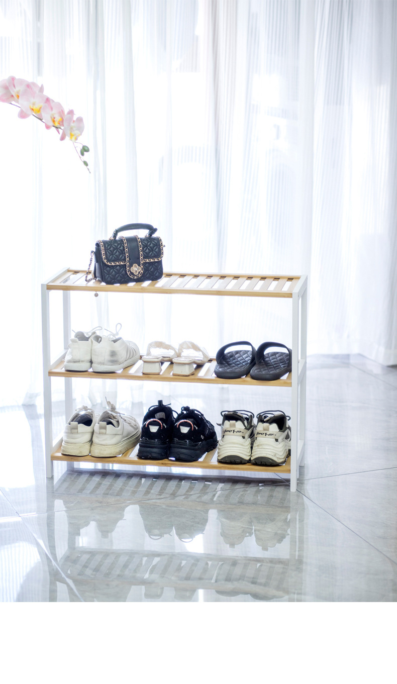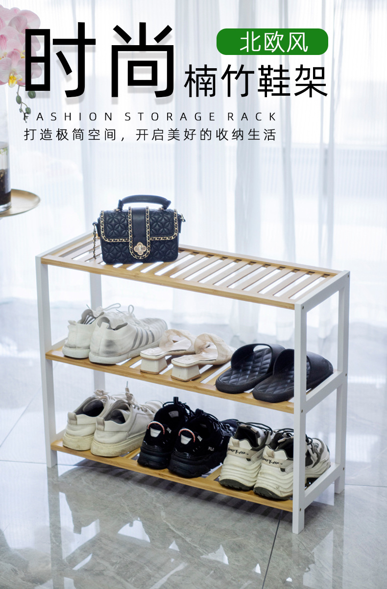 Estante de zapatos simple puerta doméstica interior 2024 explosión nuevo bambú almacenamiento pequeño estrecho en el gabinete de zapatos de madera multicapa