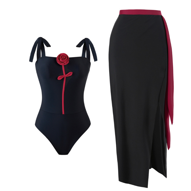 2025 traje de baño para mujer, falda de una pieza de alta gama, cobertura conservadora, vientre delgado, traje de baño de moda de vacaciones junto al mar al por mayor