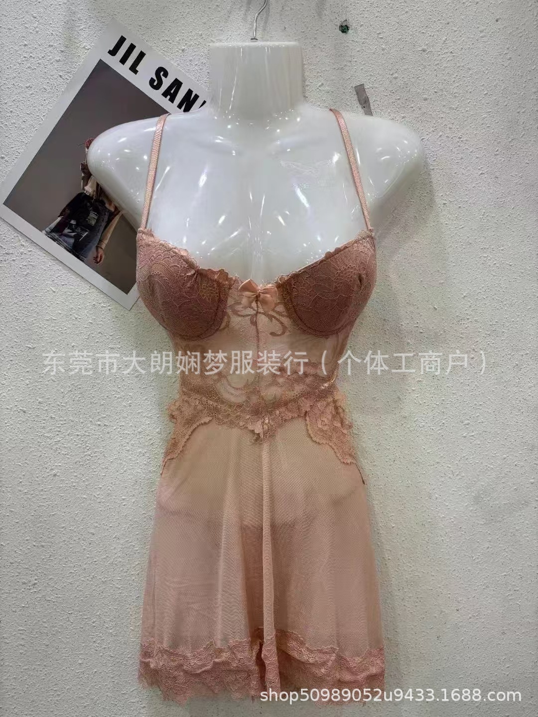 Las celebridades de Internet disparan lencería sexy camisón sexy rhinestone cuello colgante cadena tira espalda abierta vestido con aberturas traje seductor
