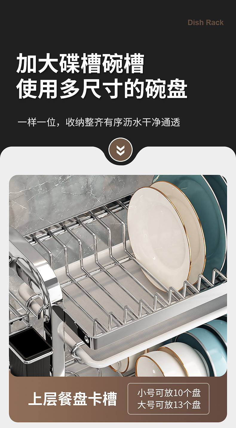 | Número de capas (especificaciones) | 发图款不含【不锈钢本色小号】二层全配(带刀筷筒+砧板架)★✦,【不锈钢本色小号】二层标配(带接水盘)★✦,【不锈钢本色小号】二层全配(带刀筷筒+砧板架)★✦,【不锈钢本色小号】三层标配(带接水盘)★✦,【不锈钢本色小号】三层全配(带刀筷筒+砧板架)★✦,【不锈钢本色】二层标配(带接水盘)★✦,【不锈钢本色】二层全配(带刀筷筒+砧板架)★✦,【不锈钢本色】三层标配(带接水盘)★✦,【不锈钢本色】三层全配(带刀筷筒+砧板架)★✦,【不锈钢本色加长款】二层标配(带接水盘)★✦,【不锈钢本色加长款】二层全配(带接水盘)★✦,【不锈钢本色加长款】三层标配(带接水盘)★✦,【不锈钢本色加长款】三层全配(带接水盘)★✦,【碳钢黑色】二层标配(带接水盘)★✦,【碳钢黑色】二层全配(带刀筷筒+砧板架)★✦,【碳钢黑色】三层标配(带接水盘)★✦,【碳钢黑色】三层全配(带刀筷筒+砧板架)★✦,【碳钢黑色加长款】二层标配(带接水盘)★✦,【碳钢黑色加长款】二层全配(带刀筷筒+砧板架)★✦,【碳钢黑色加长款】三层标配(带接水盘)★✦,【碳钢黑色加长款】三层全配(带刀筷筒+砧板架)★✦,【碳钢绿金】二层标配(带接水盘)★✦,【碳钢绿金】二层全配(带刀筷筒+砧板架)★✦,【碳钢绿金】三层标配(带接水盘)★✦,【碳钢绿金】三层全配(带刀筷筒+砧板架)★✦,【碳钢绿金加长款】二层标配(带接水盘)★✦,【碳钢绿金加长款】二层全配(带刀筷筒+砧板架)★✦,【碳钢绿金加长款】三层标配(带接水盘)★✦,【碳钢绿金加长款】三层全配(带刀筷筒+砧板架)★✦,【碳钢黑色】单层碗碟架(带接水盘)★✦,发图款不含【不锈钢本色】二层全配(带刀筷筒+砧板架)★✦,发图款不含【不锈钢本色加长款】二层全配(带接水盘)★✦,发图款不含【碳钢黑色】二层标配(带接水盘)★✦,发图款不含【碳钢黑色】三层全配(带刀筷筒+砧板架)★✦ |