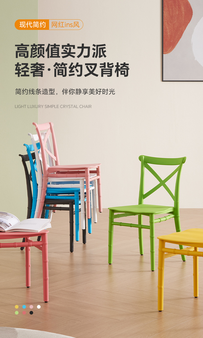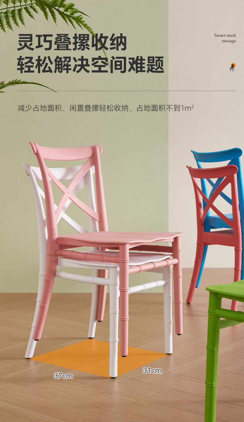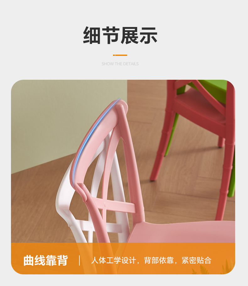PP silla de horquilla simple estilo hogar silla de bambú para niños cafetería creativa color silla de comedor taburetes de plástico grueso