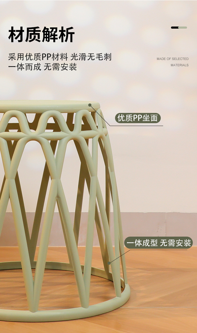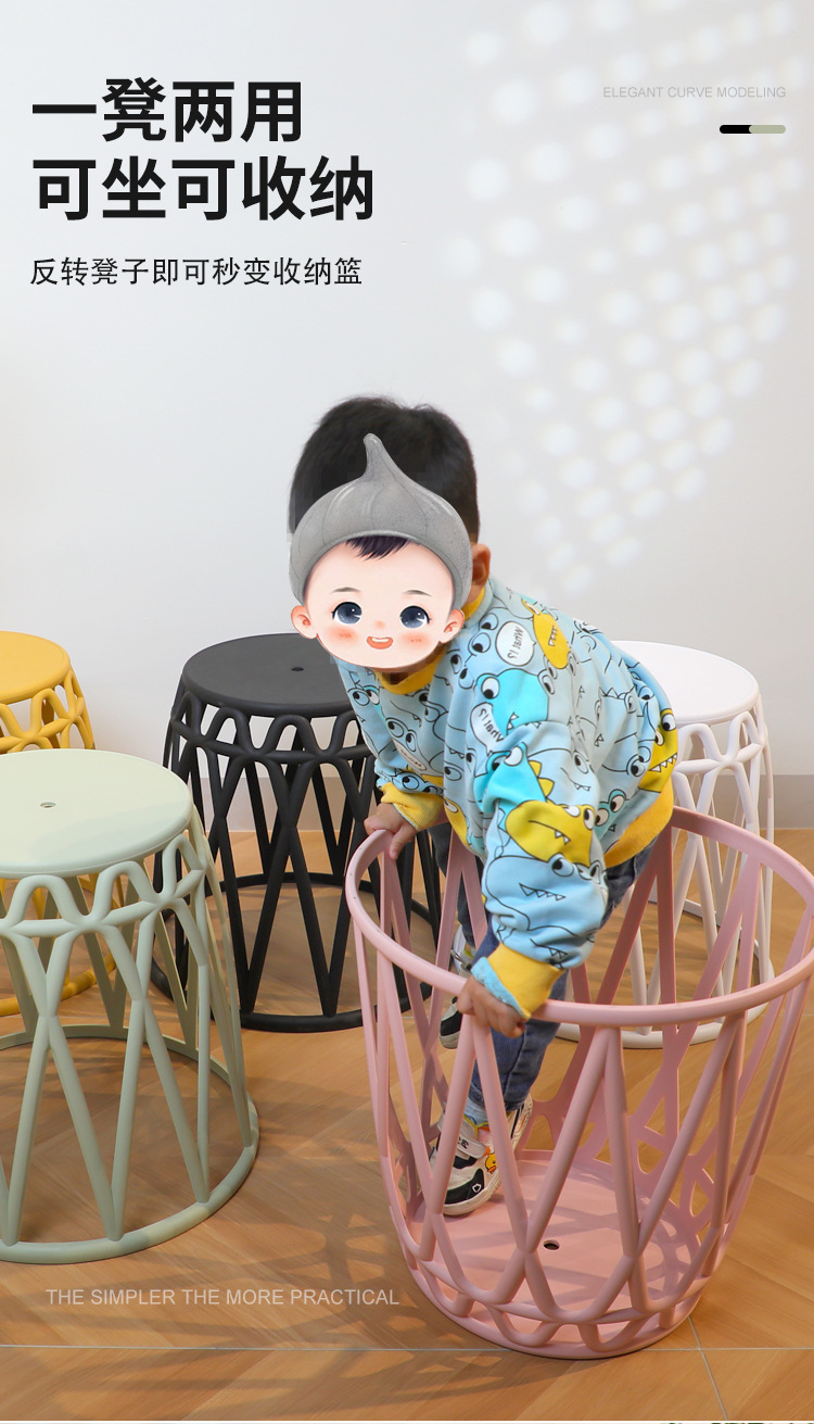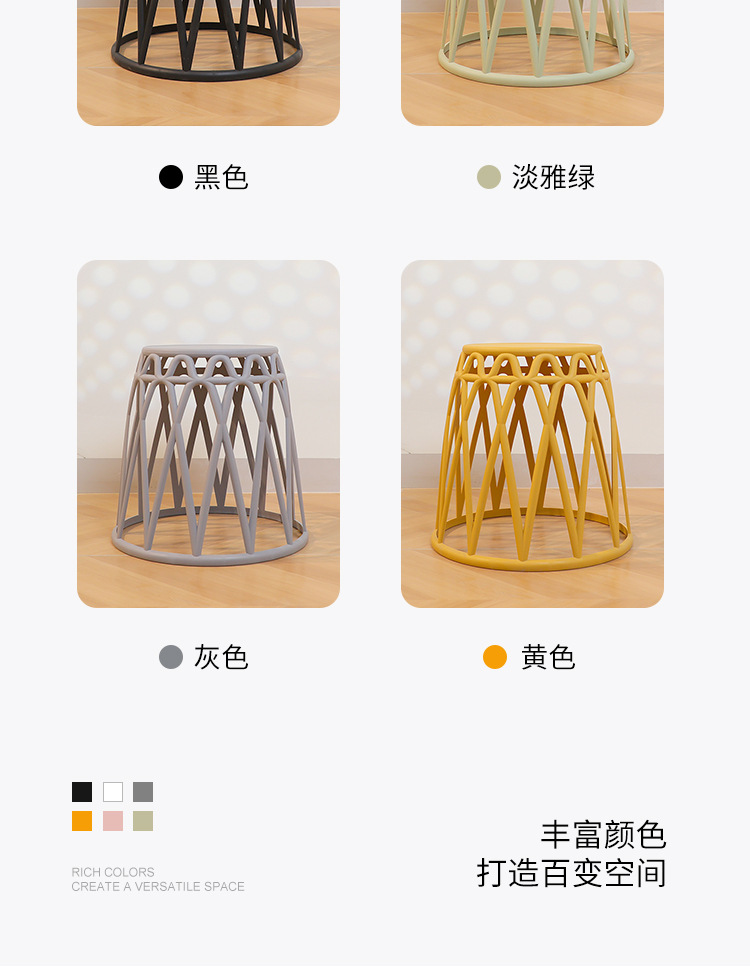 Taburete pequeño de plástico apilable, taburete antideslizante engrosado para el hogar, taburete de molino de viento, mesa de centro de la sala de estar, taburete redondo de baño corto