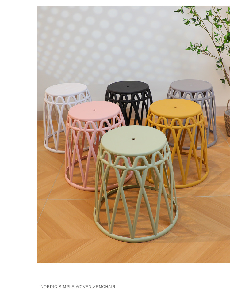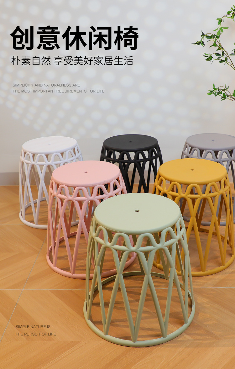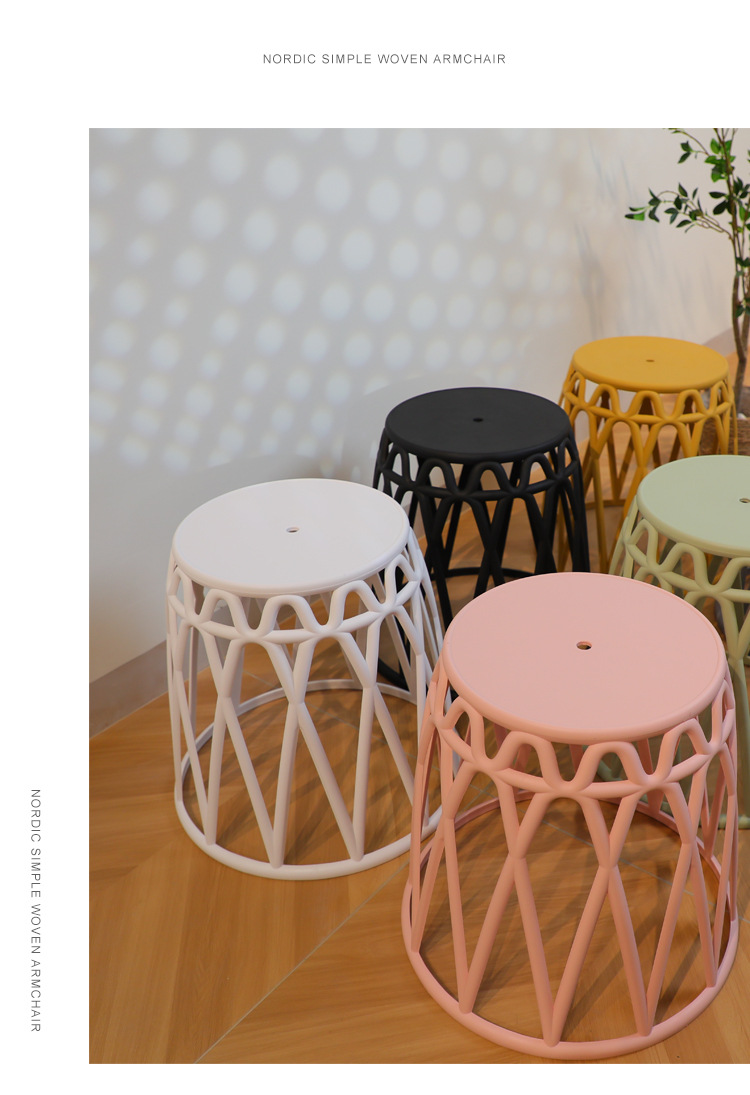 Moderno minimalista nórdico redondo taburete engrosada silla hogar adulto ocio silla de plástico respaldo taburete ligero apilamiento