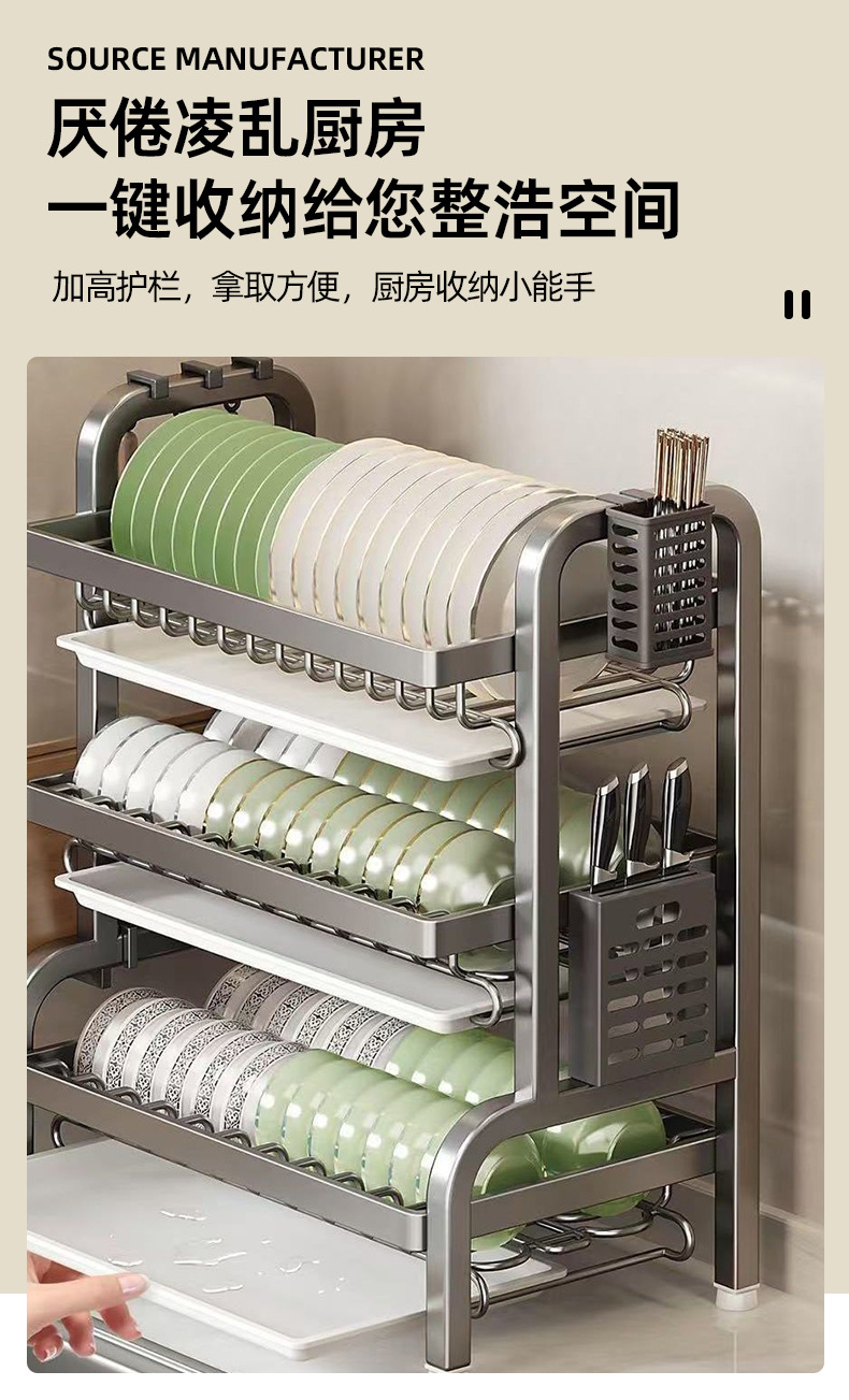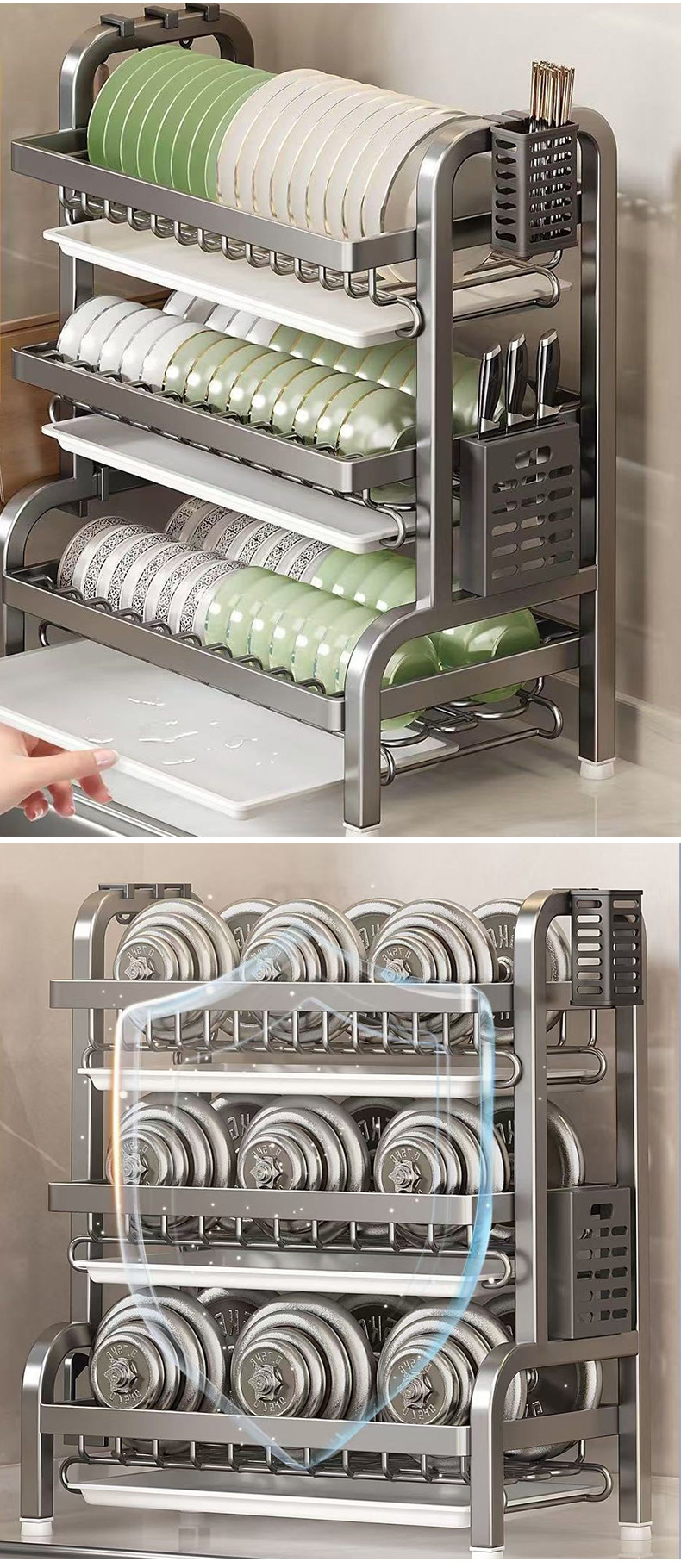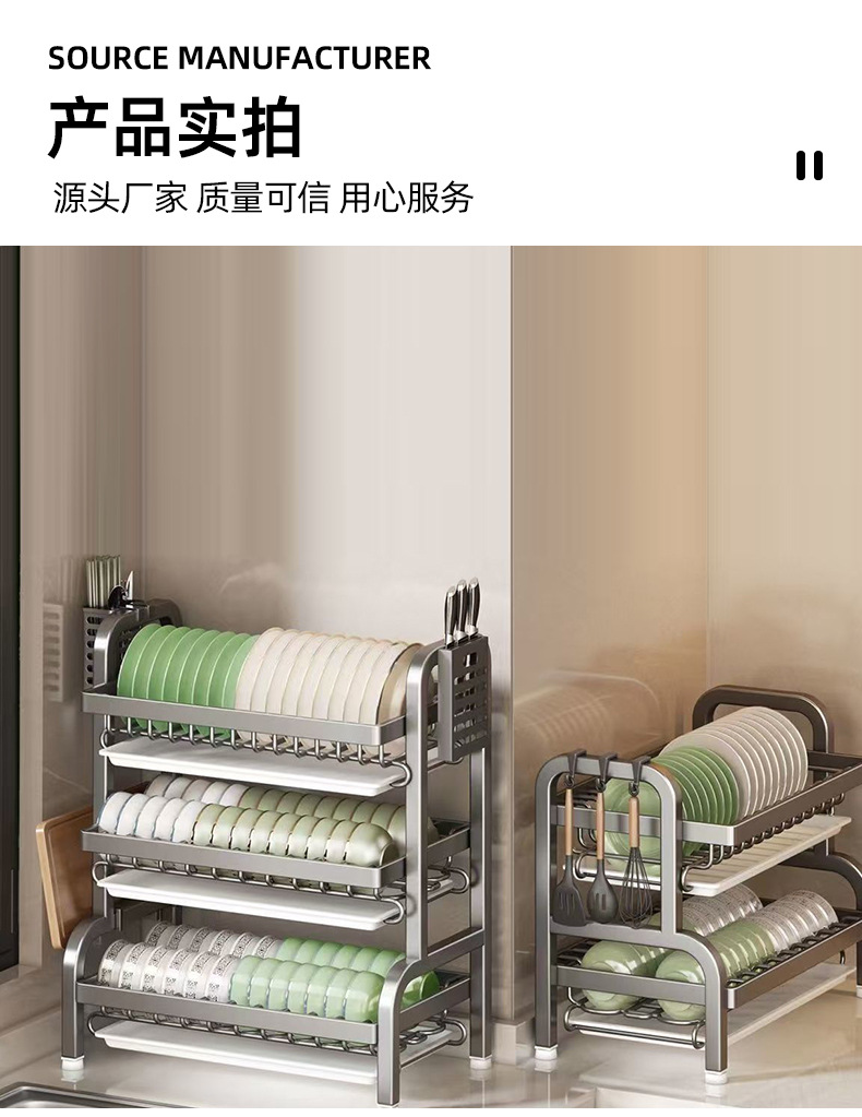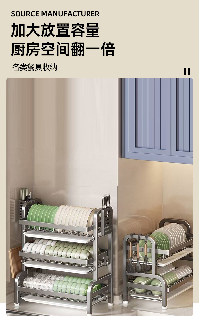 Estante de almacenamiento de platos de cocina estante de escritorio doméstico doble cubierta caja de palillos para platos estante de drenaje