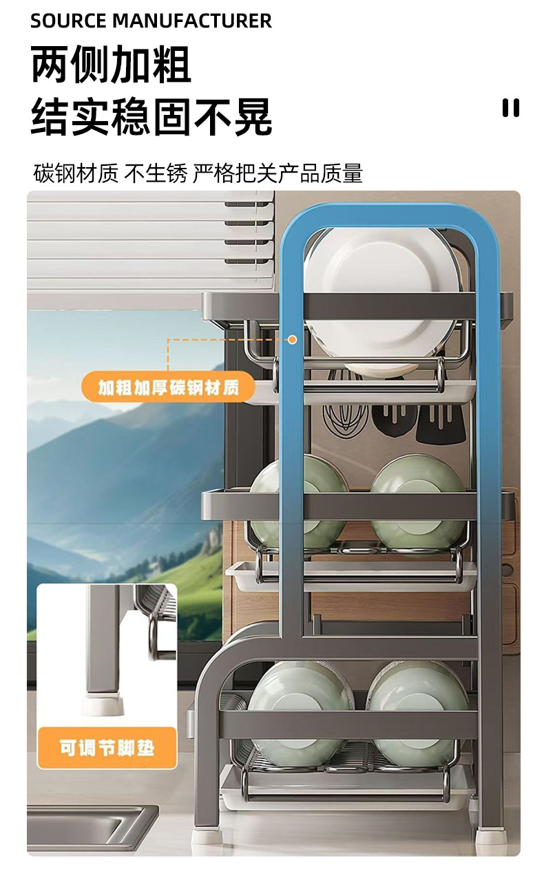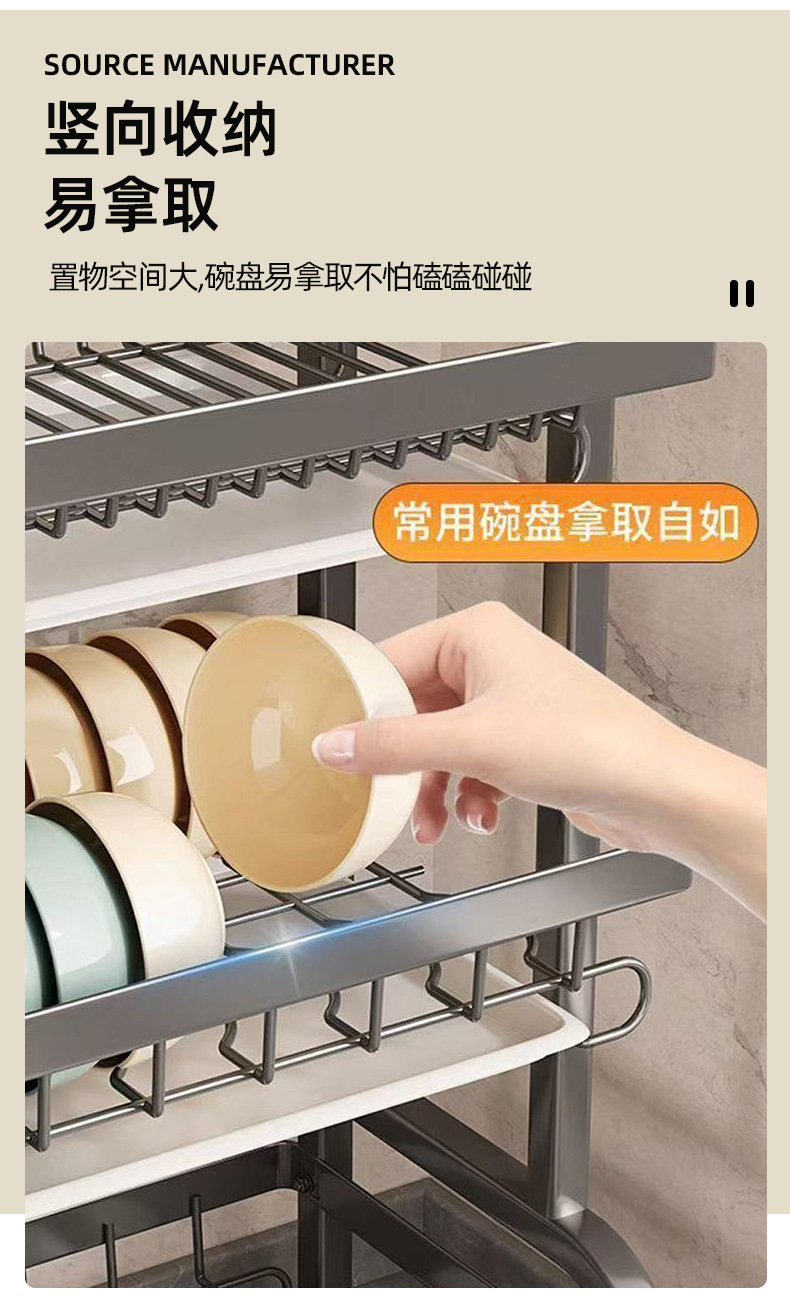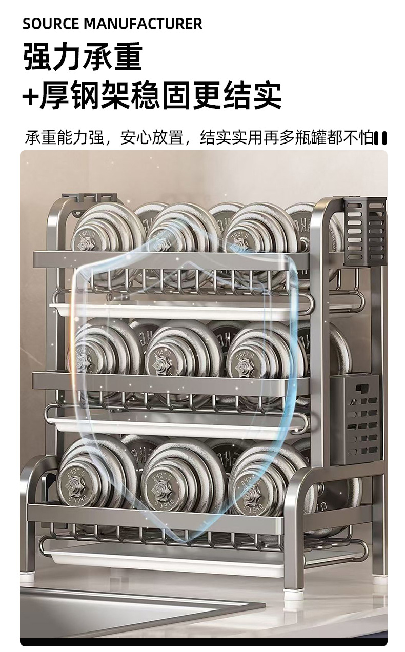Estante de almacenamiento de platos de cocina estante de escritorio doméstico doble cubierta caja de palillos para platos estante de drenaje