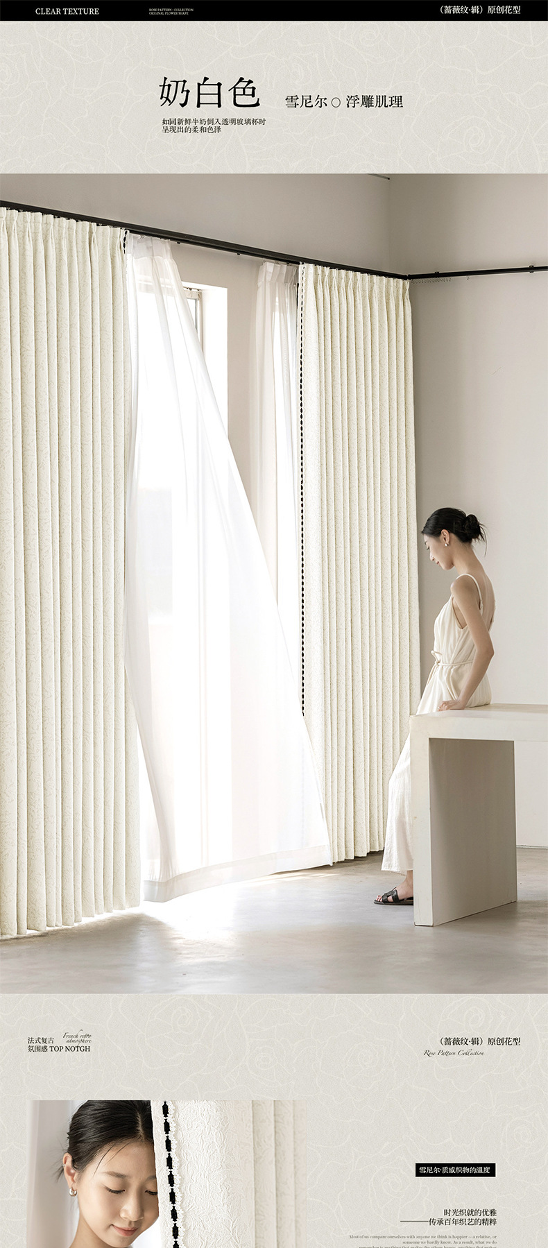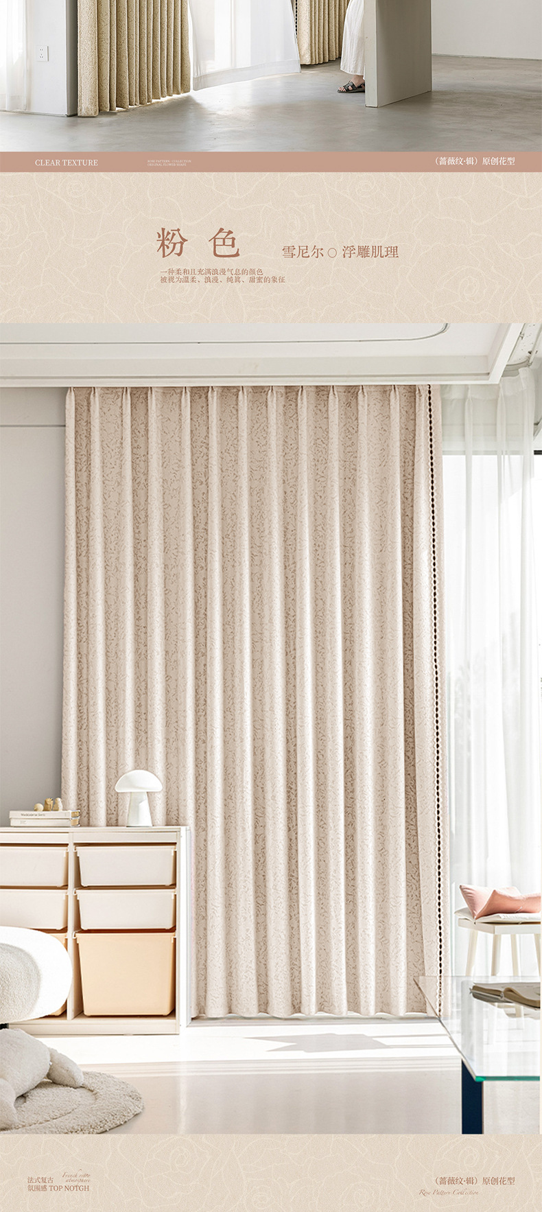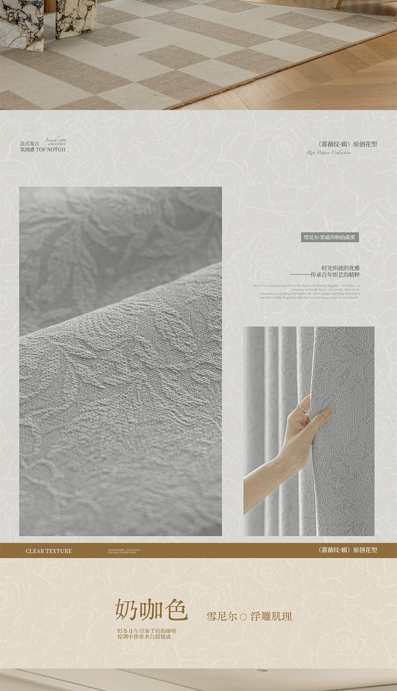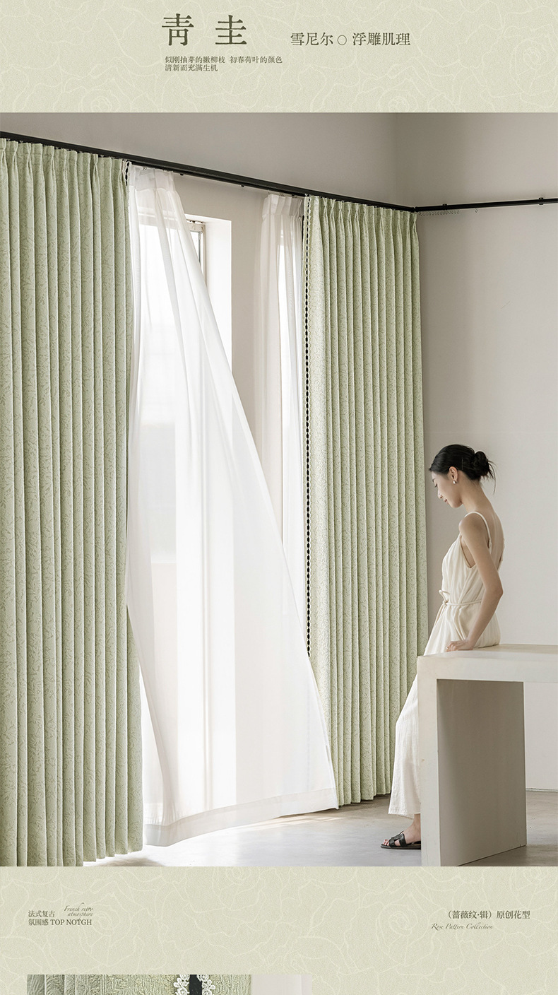 | Especificaciones | Corte a granel/precio por metro (sin procesar) contáctenos primero,Precio medio caballo entero/metro (sin procesar) contáctenos primero,Precio por metro de perforación de producto terminado/descuento coreano (incluido el estereotipo) Contáctenos primero,3.1 metros de altura sin empalmes (producto terminado perforado y plegado al estilo coreano). Contáctenos primero.,Instalación de medición nacional de muestra personalizada para toda la casa (contáctenos primero),El encaje lateral se compra por separado por 50 yuanes el par |
