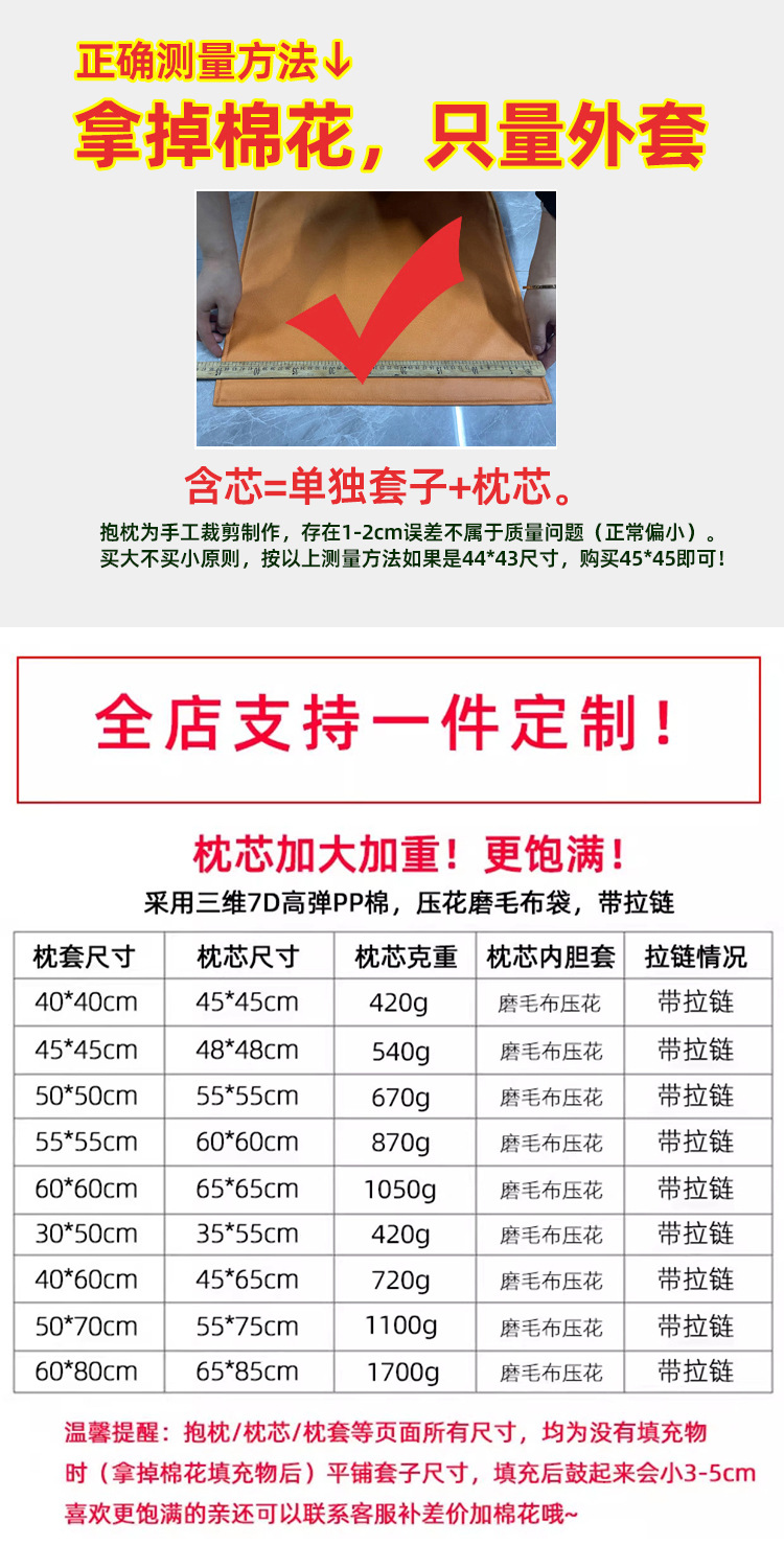 | Tamaño | 40x40 (cubierta individual),40x40 (almohada con núcleo),45x45 (cubierta individual),45x45 (almohada con núcleo),50x50 (cubierta individual),50x50 (almohada con núcleo) |