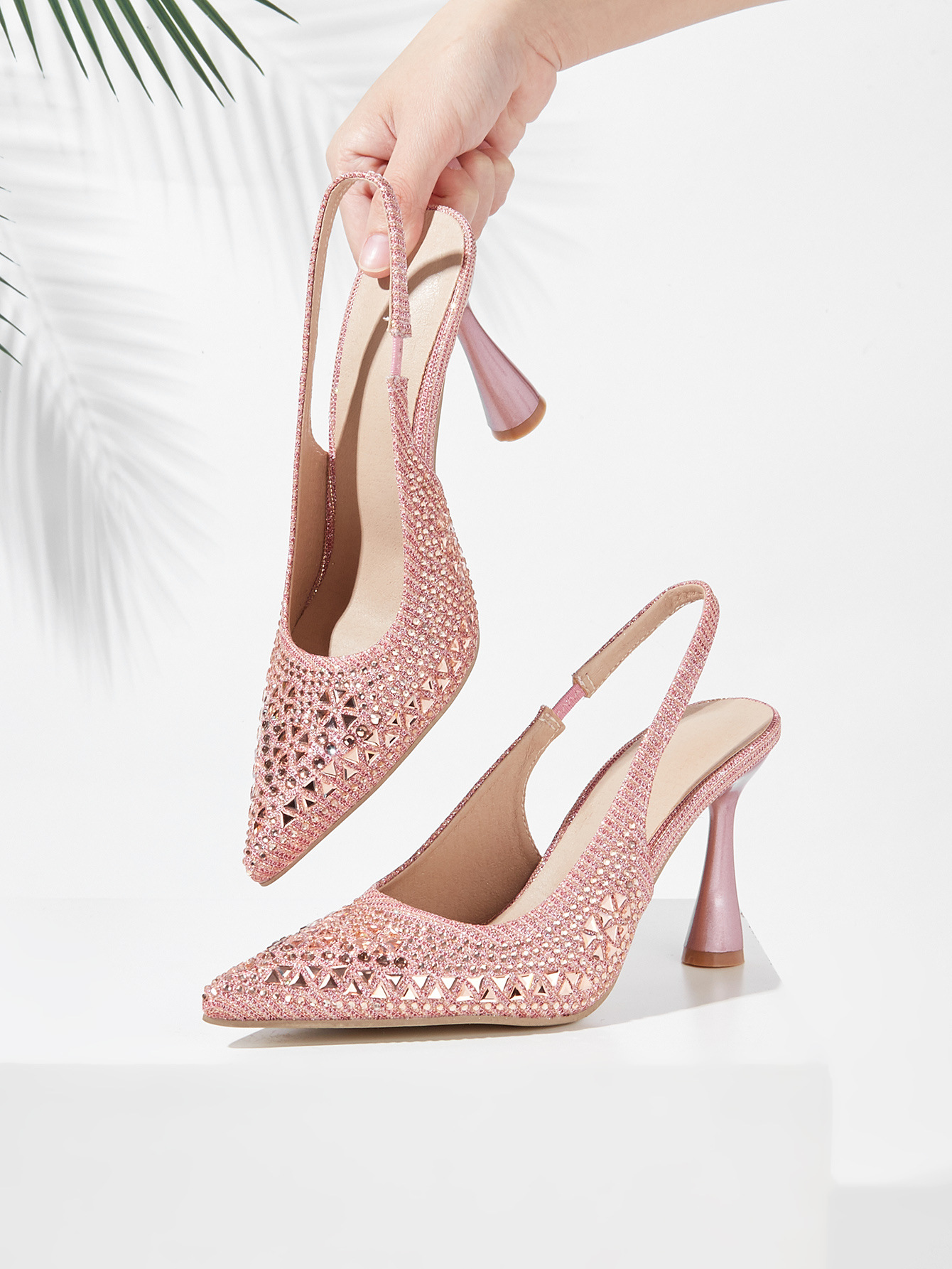 Lingstudio cena de vino tinto · arco agudo sandalias de talón alto para mujeres primavera trasero zapatos vacíos