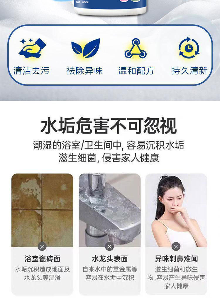 | Eficacia | Inhibición de bacterias, descontaminación profunda, eliminación de escala, protección duradera, desintegración de manchas de aceite |