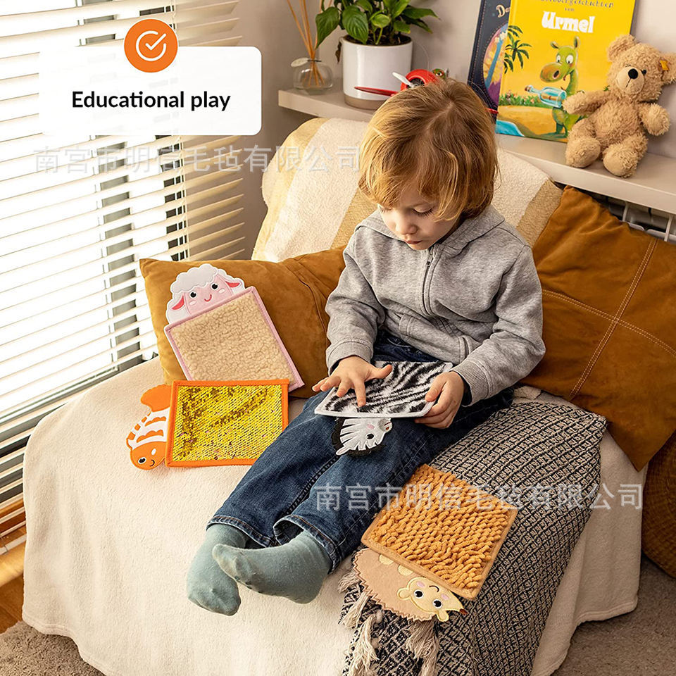 Materiales de enseñanza en el lugar almohadillas sensoriales animales juguetes autistas niños felt pelo tacto