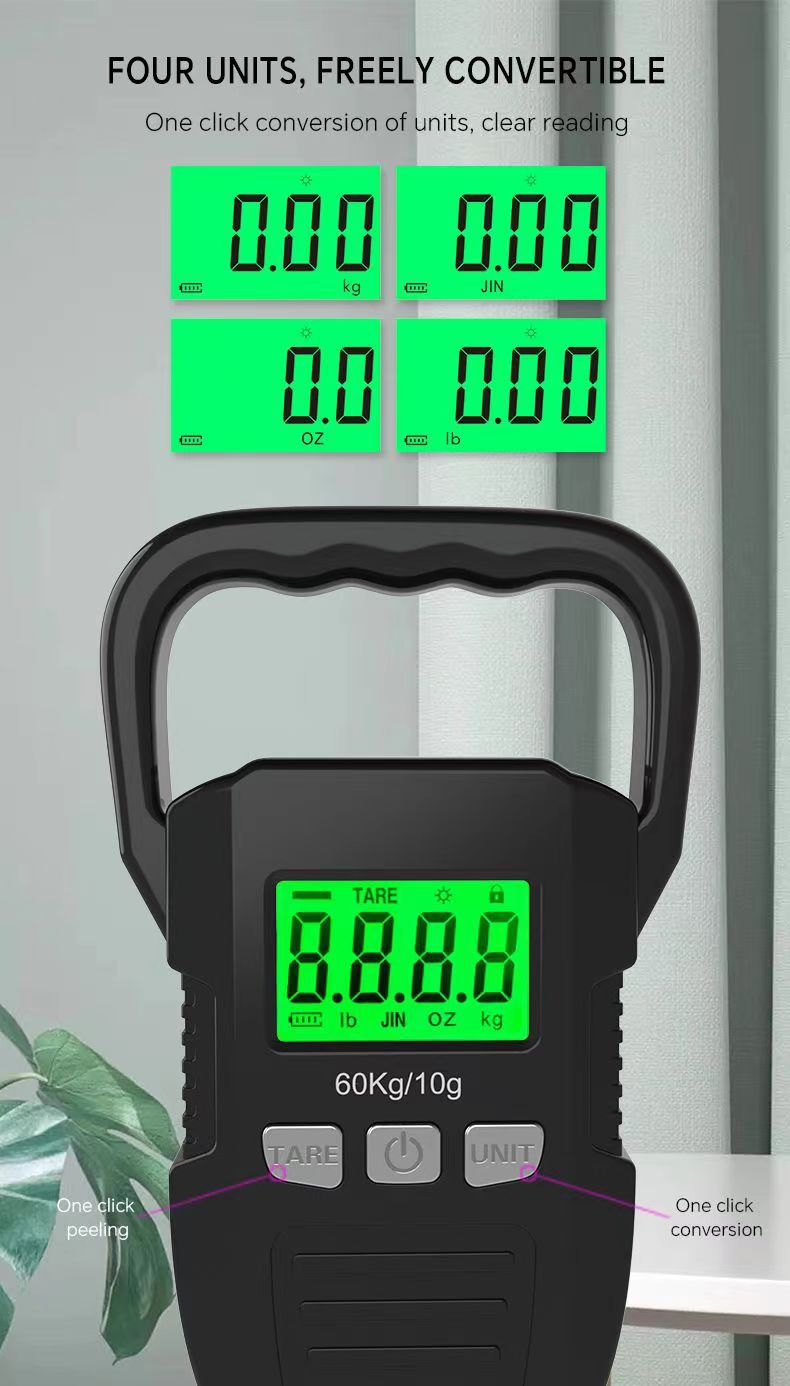 2023 nueva escala portátil A33 escala de equipaje escala expreso escala de pesca 60 kg escala electrónica recargable