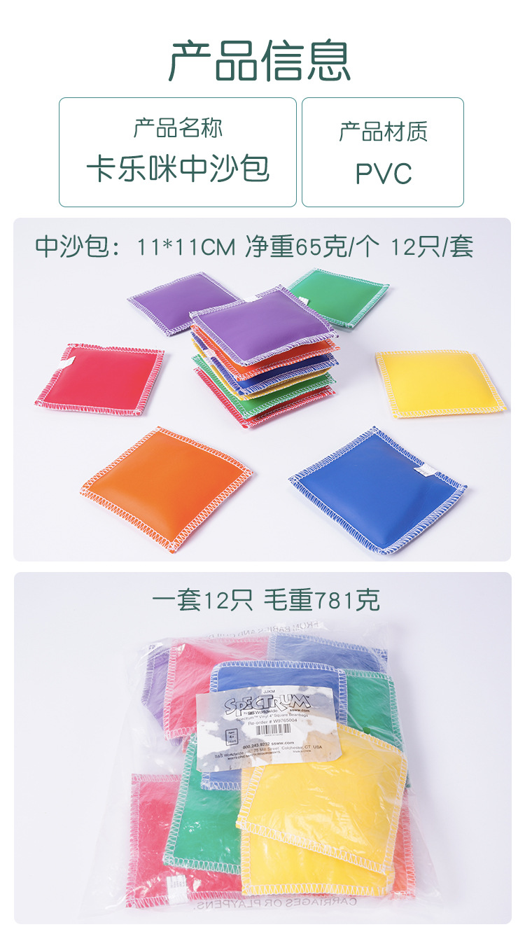 | Color | 12 bolsas de arena pequeñas de 7,5 cm, 12 bolsas de arena medianas de 10 cm y 12 bolsas de arena grandes de 12,5 cm |