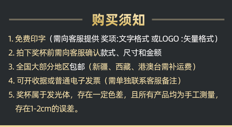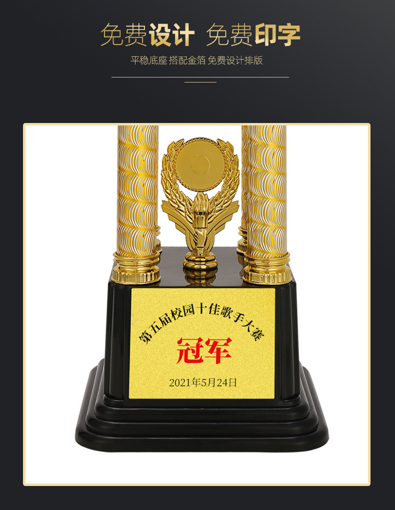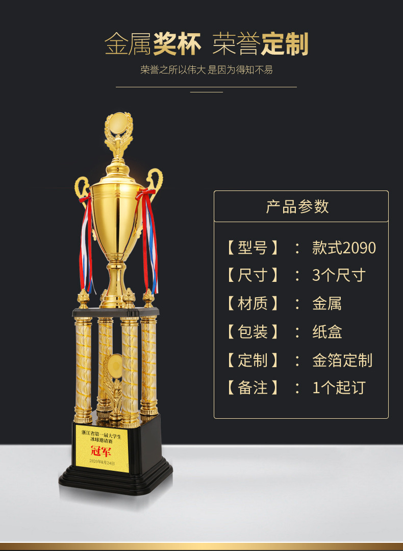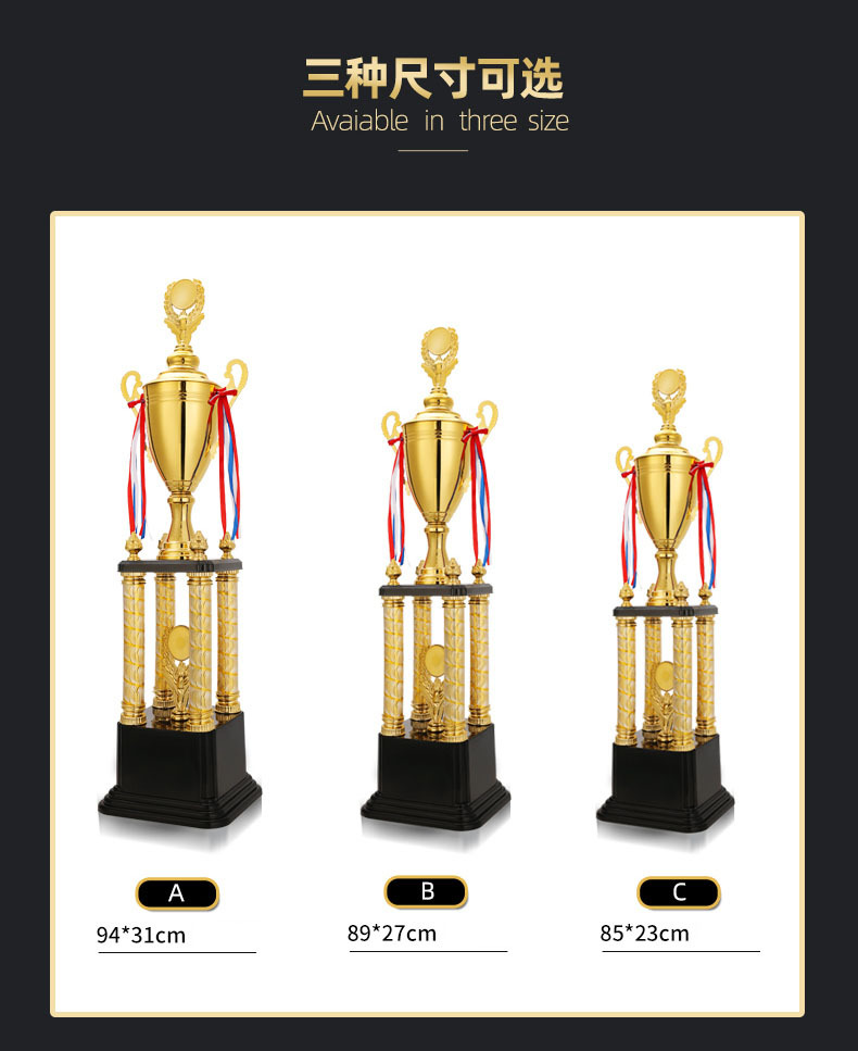 | Especificación | 2090A altura 94*31cm,2090B altura 89*27cm,2090C alto 85*23cm,Trofeo de cuatro columnas de oro, plata y bronce precio único,3010a altura 80*28cm,3010b altura 75*26cm,3010c altura 70*24cm,Corona cuatro pilares oro, plata y cobre precio único |