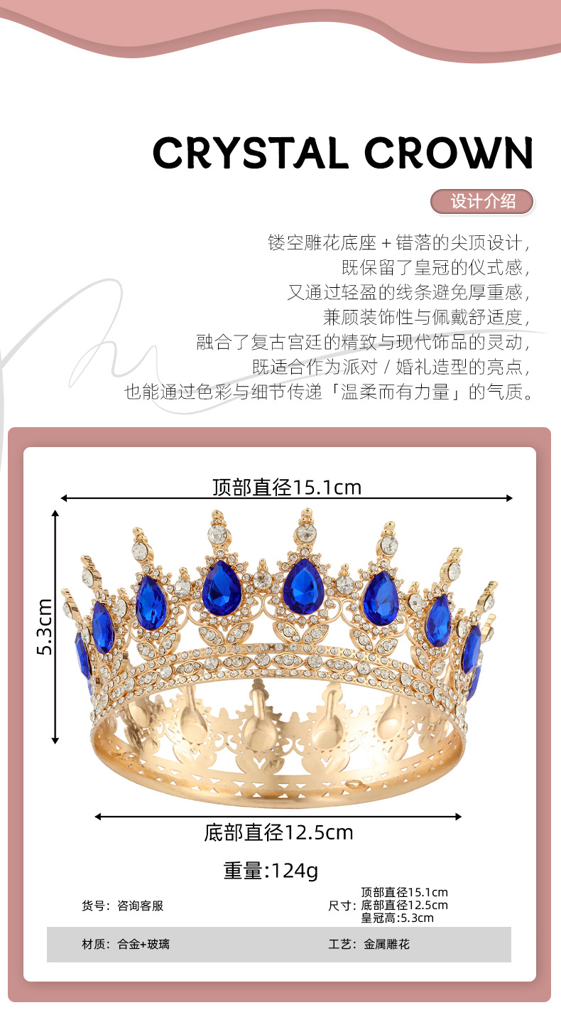| Color | Corona plateada + diamante blanco, corona dorada + diamante blanco, corona dorada + diamante rojo, corona dorada + diamante rosa, corona dorada + diamante AB, corona dorada + diamante amarillo, corona dorada + diamante azul lago, corona plateada + diamante rosa, corona dorada + diamante violeta, corona dorada + diamante azul, corona dorada + diamante verde, corona dorada + diamante negro |