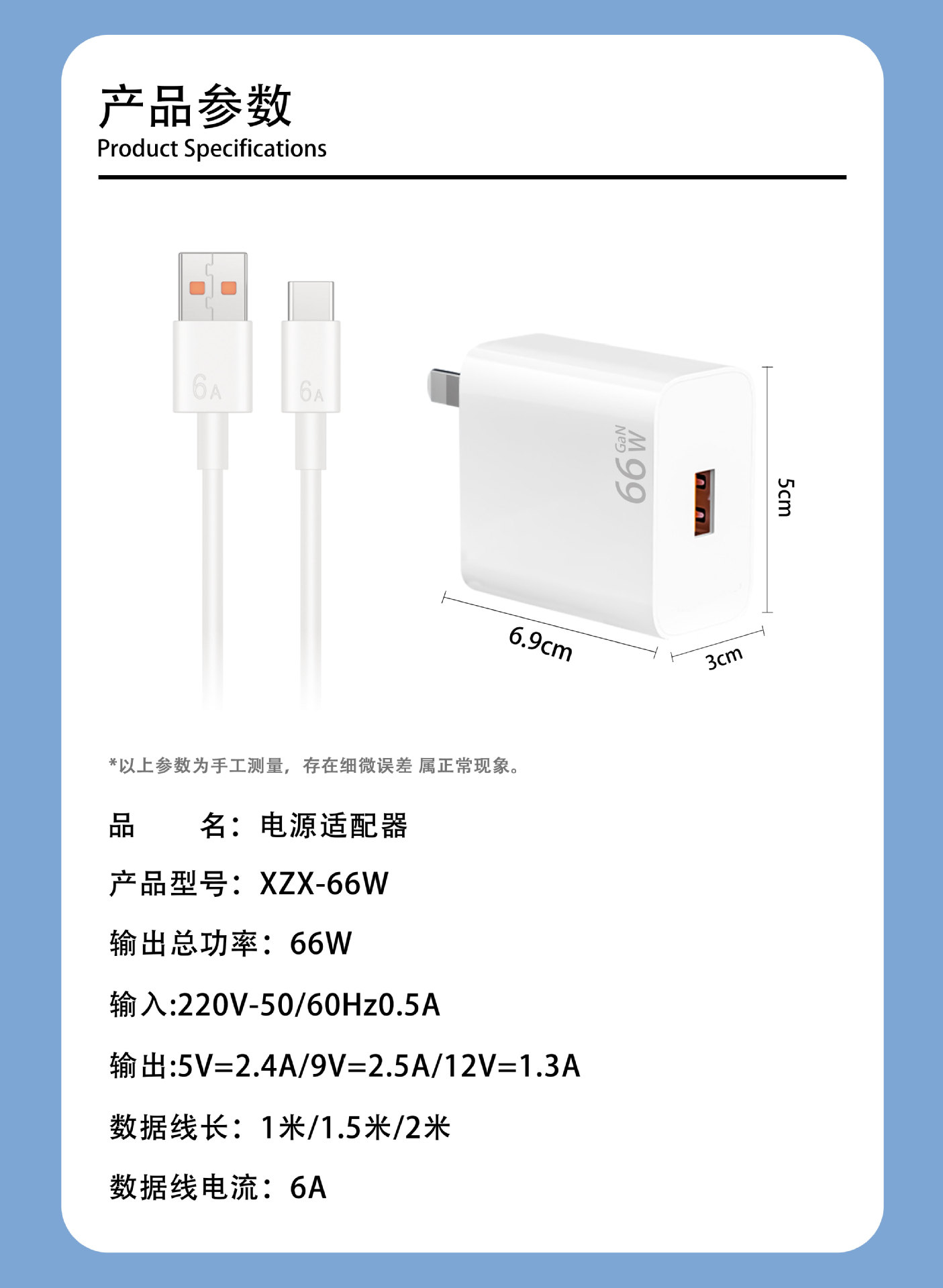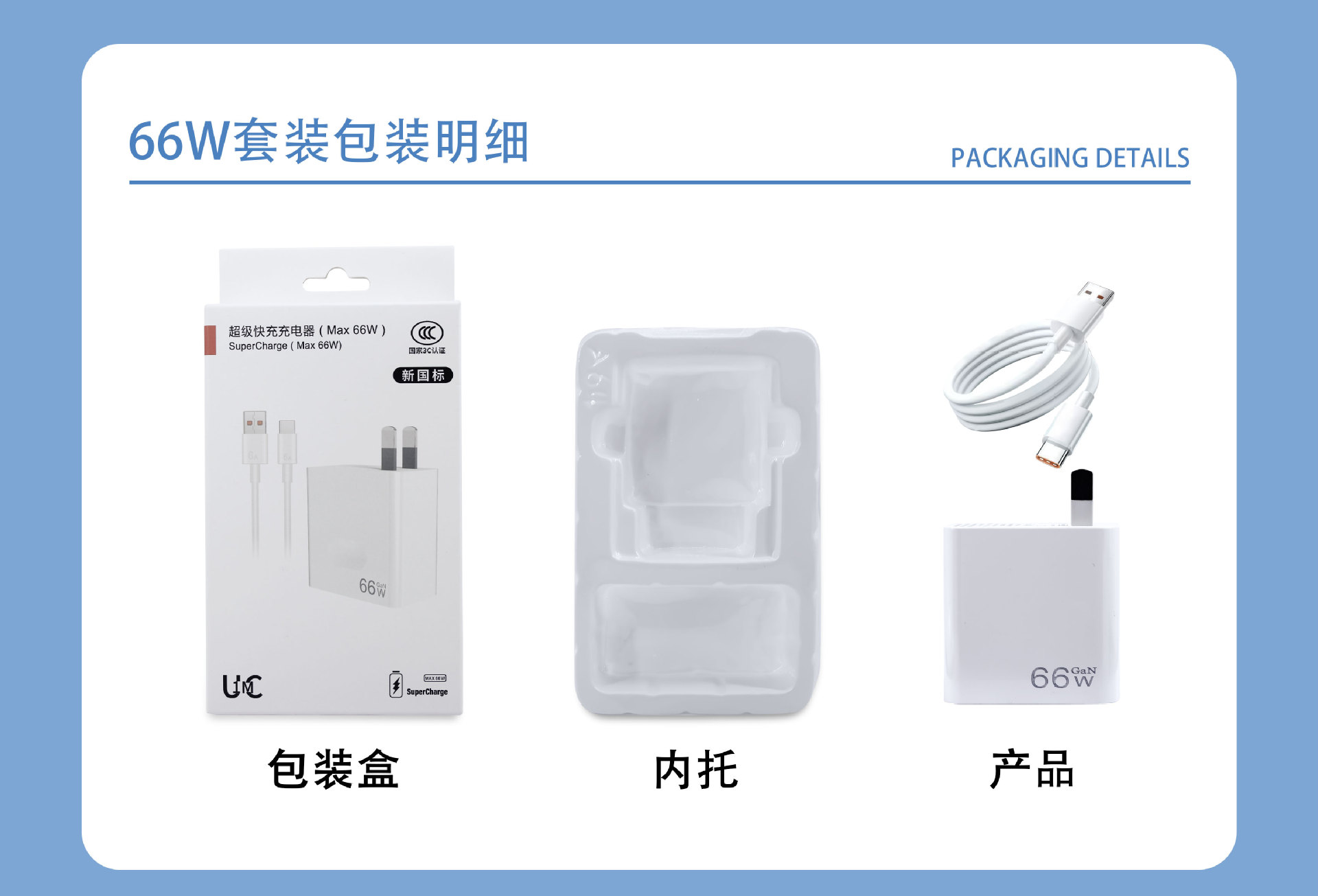 66W超级快充充电器适用荣耀手机闪充USB数据线华为充电器套装批发