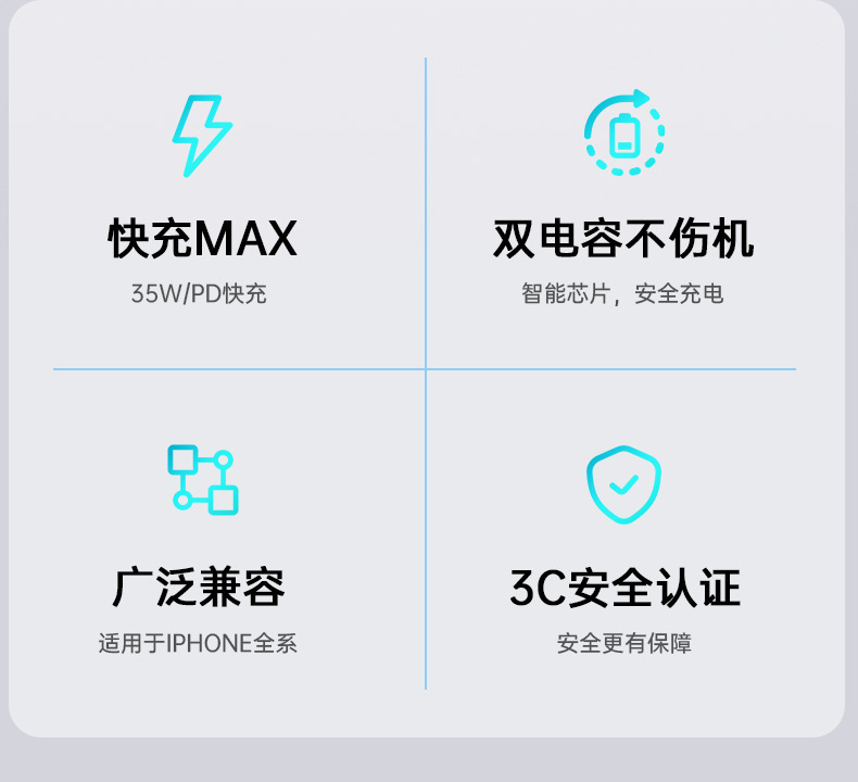 | Modelo aplicable | Apple Fast Charging Head 35W [certificado] toda la serie, conjunto de Apple 35w + 1m cable de carga rápida trenzado doble C [certificado], conjunto de Apple 35w + 1.5m cable de carga rápida trenzado doble C [certificado], conjunto de Apple 35w + 2m cable de carga rápida trenzado doble C [certificado], cable de carga rápida trenzado doble C 1m, cable de carga trenzado doble C 1.5m, cable de carga rápida trenzado doble C 2m |