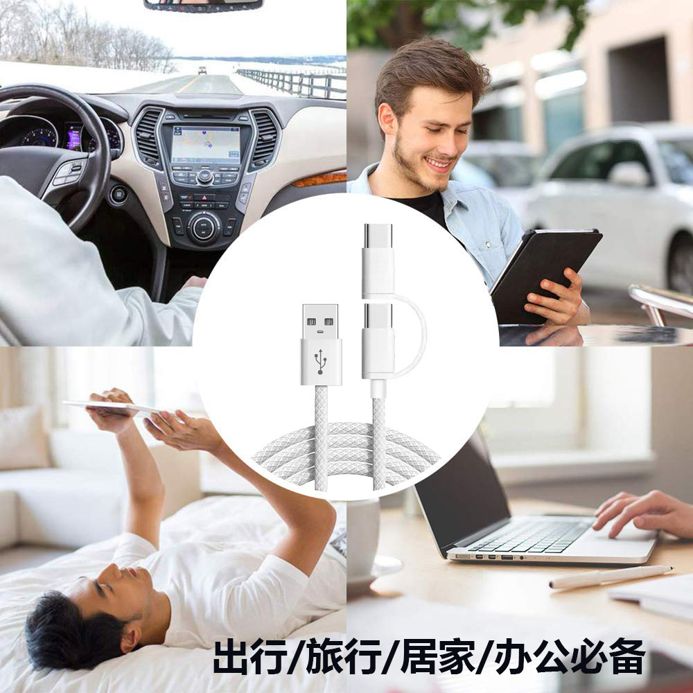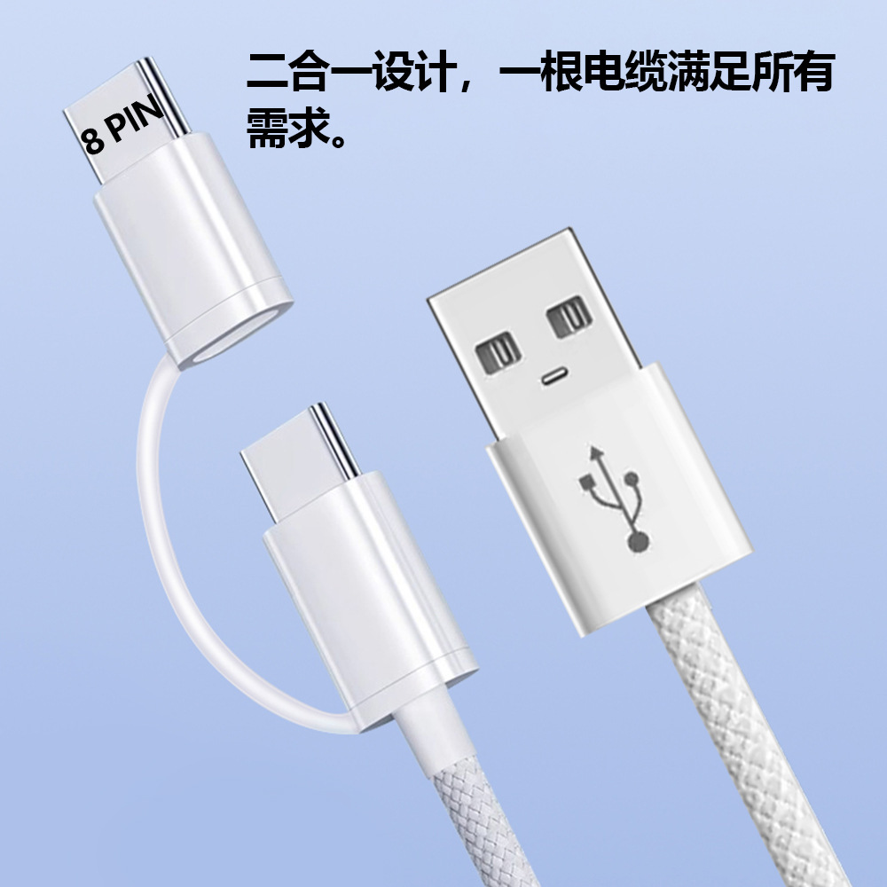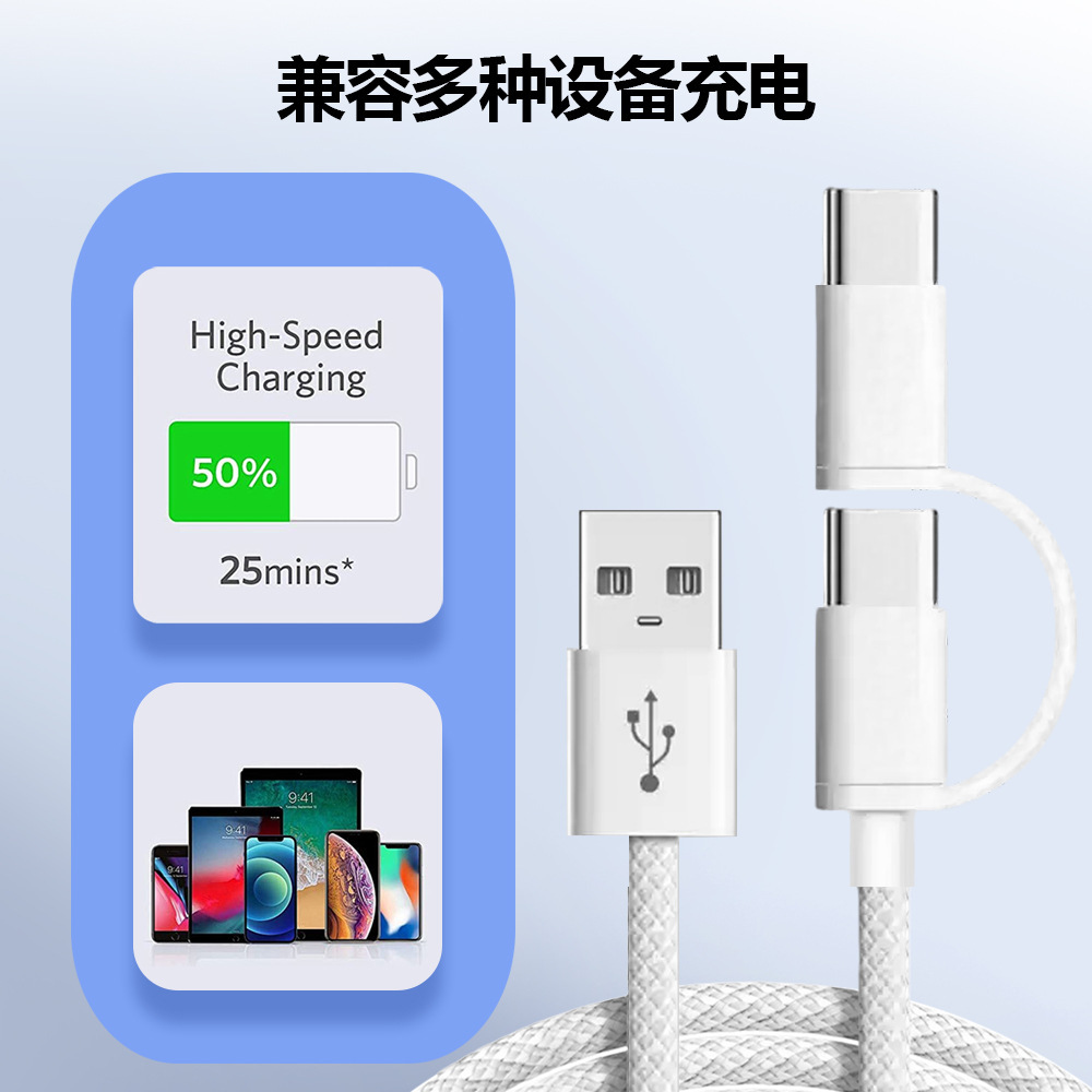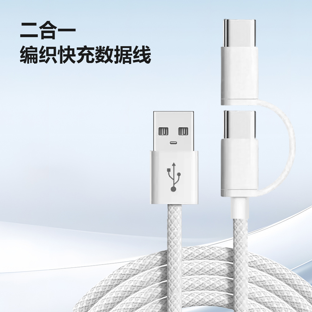 PD60W一拖二编织数据线快充 适用苹果充电线15iphone16手机充电线