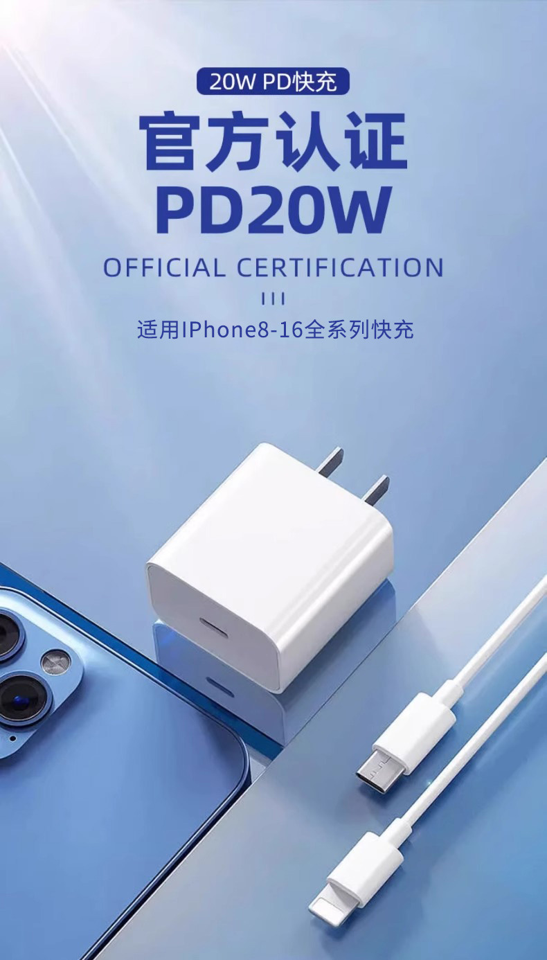 Aplicable a Apple Charger Factory 3C certificado cabezal de carga de teléfono móvil personalizado PD20W cargador rápido LOGO set