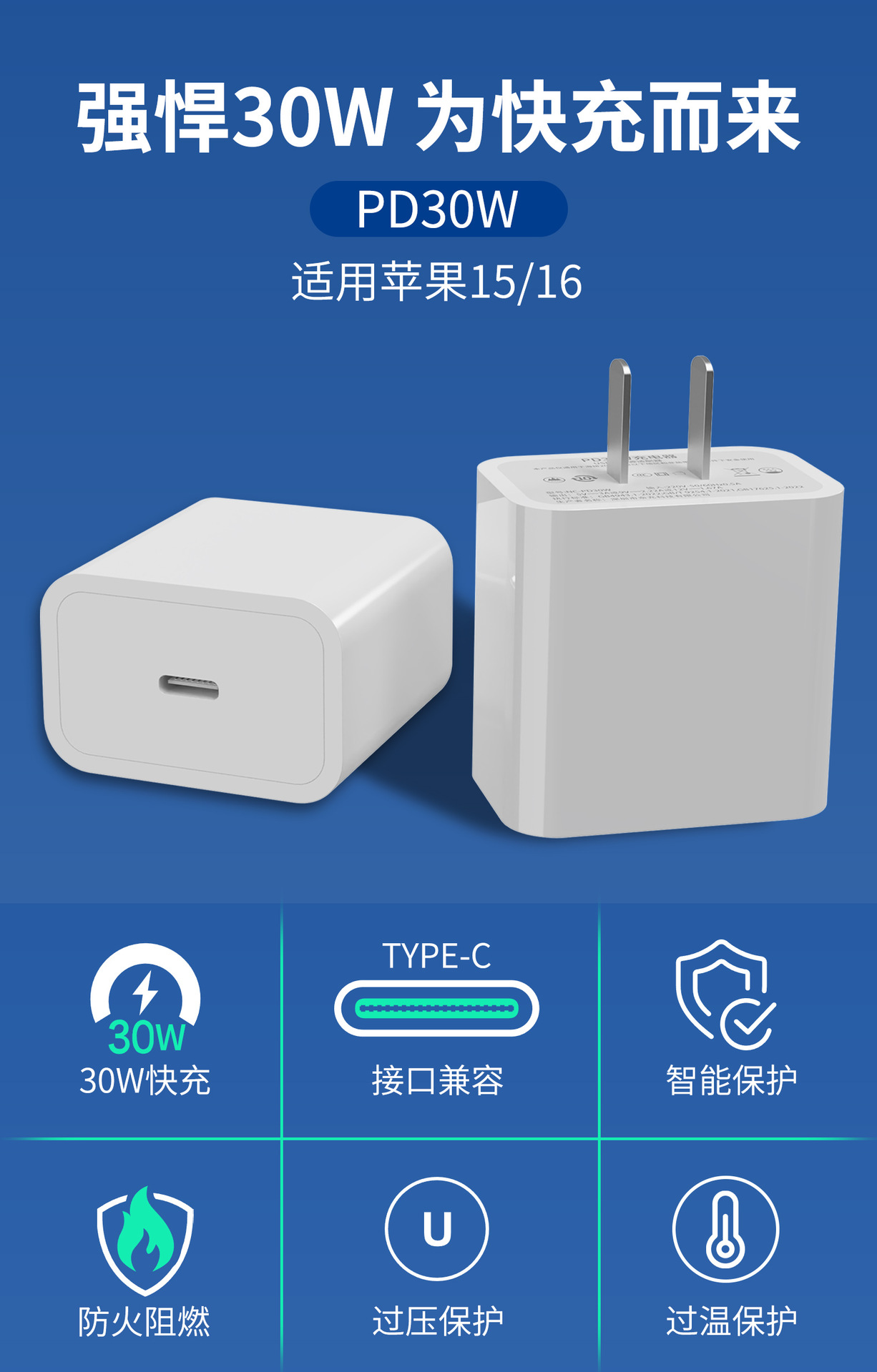 适用苹果充电器原厂 3C认证手机充电头pd30w充电器苹果快充头套装