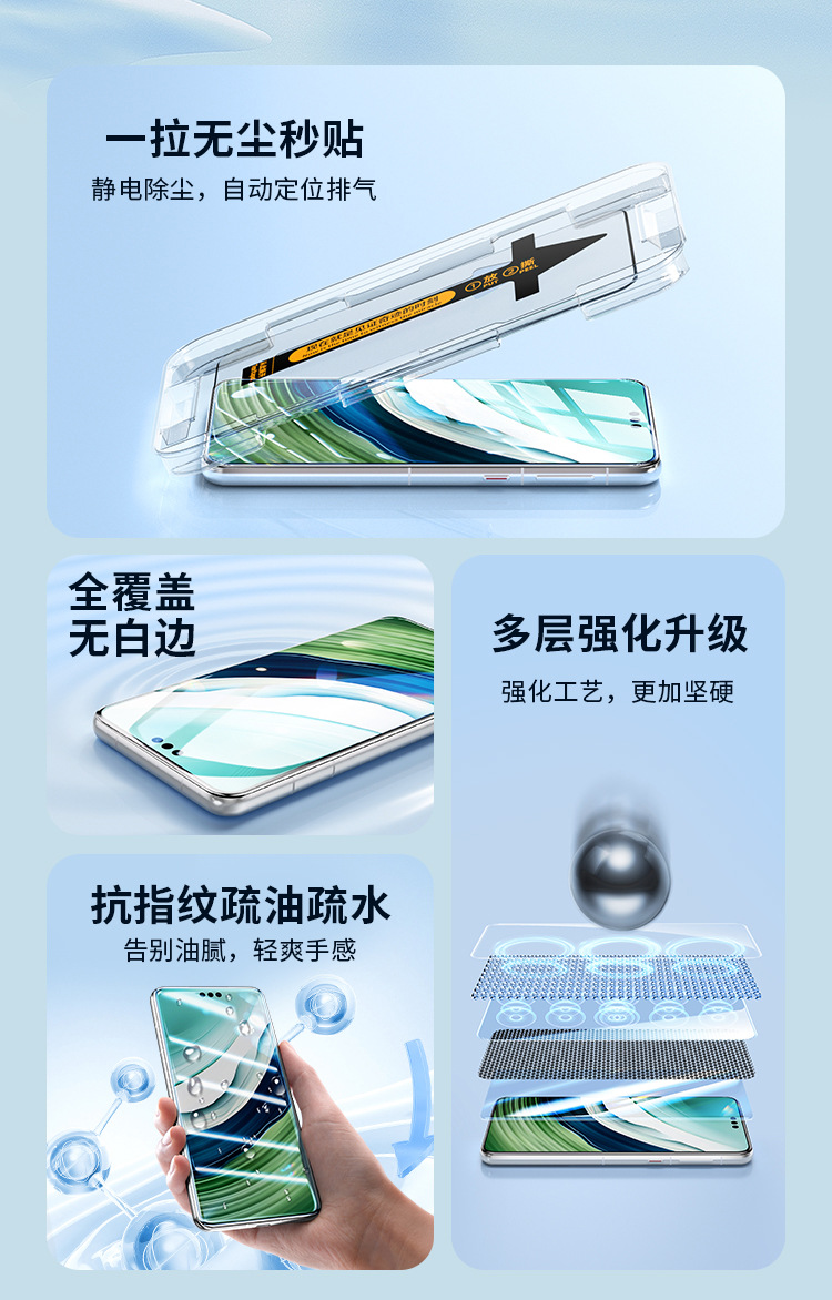 | Características de la película | Luminoso,HD,A prueba de polvo,Antihuellas dactilares,Anti-caída,Pantalla completa,Reparación automática,Caja de segundos |