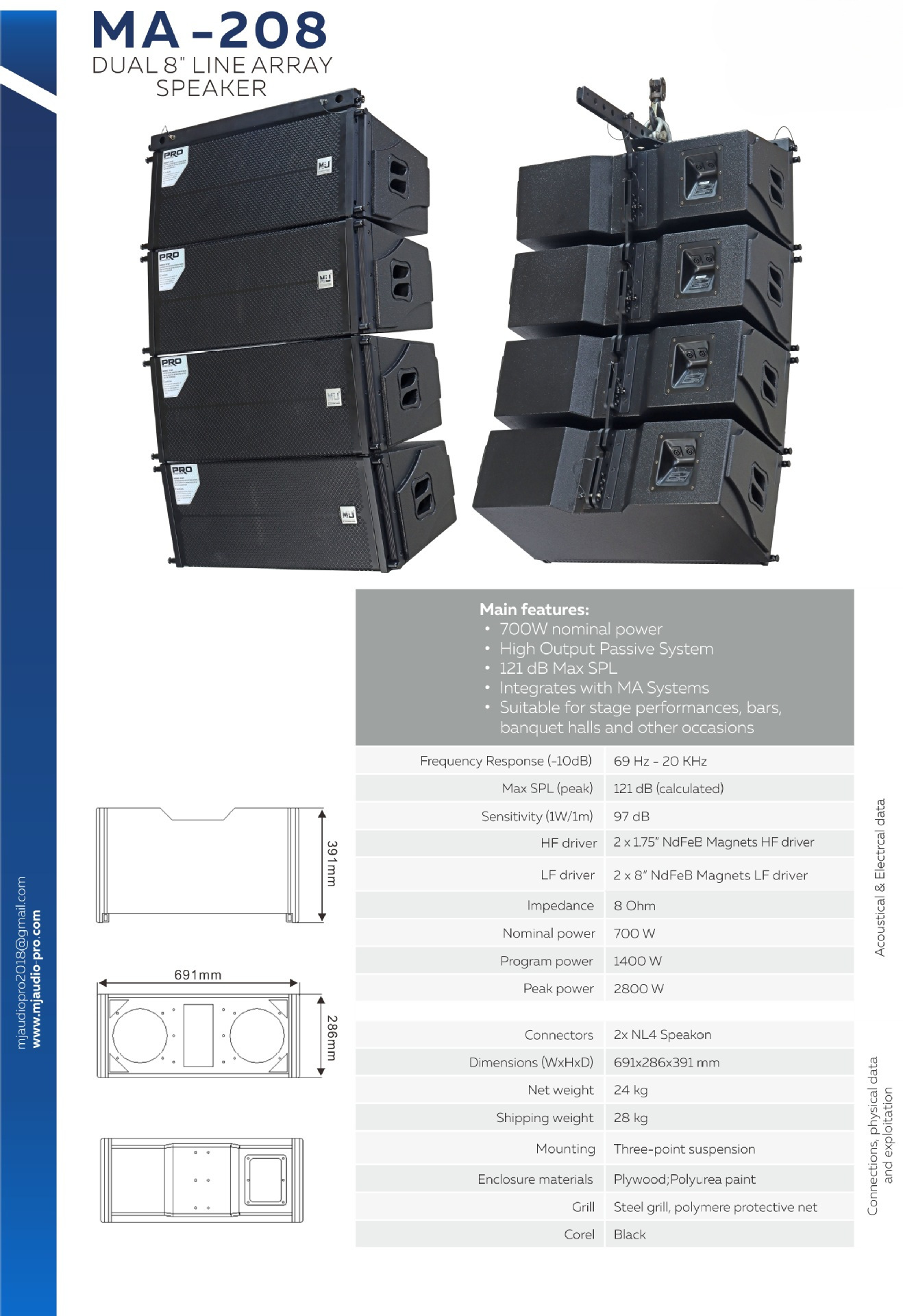 MA208 Dual 8 pulgadas profesionales lineales conjunto de sonido escenario altavoces lineales de alta potencia array