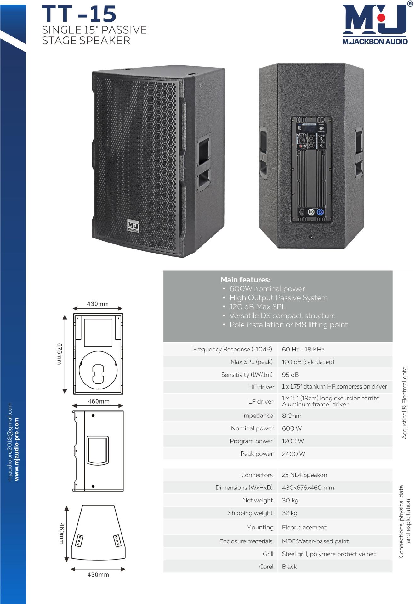 TT15P使用1.75”钛高频压缩驱动器。15英寸长偏移铁氧体铝框架驱动器。高频清晰明亮,无噪音。中频较厚,不拖拽。
