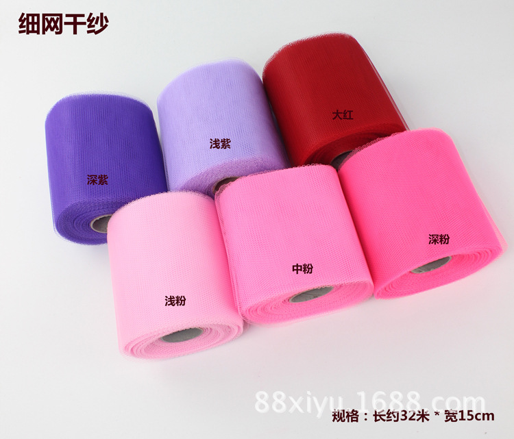 规格:宽约15cm,长约30米单独PP袋包装 产品硬度好,是款经常使用的的网纱