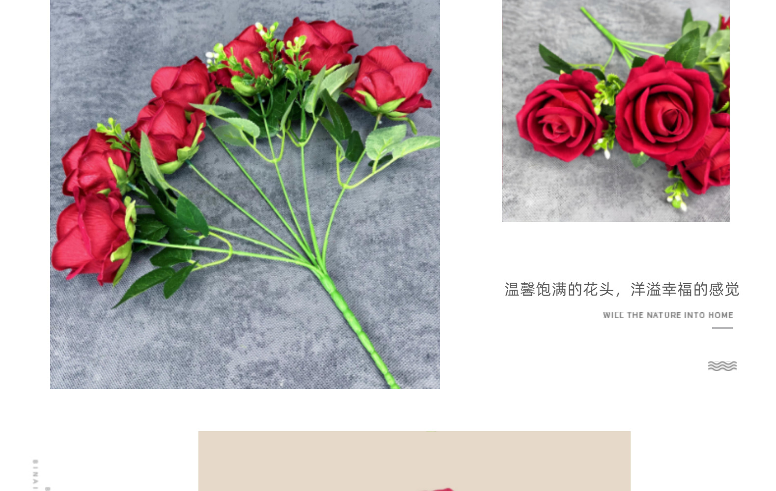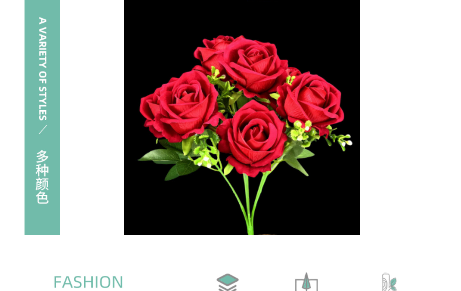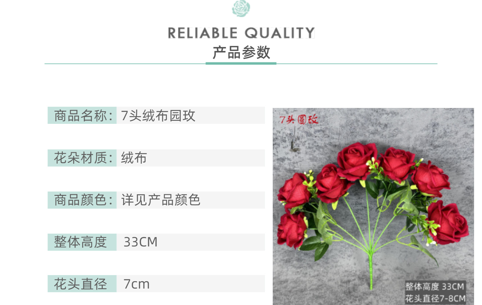 Simulación de 7 cabezas de tela de terciopelo rosa boda decoración del hogar decoración de mano transfronteriza flores falsas adornos al por mayor