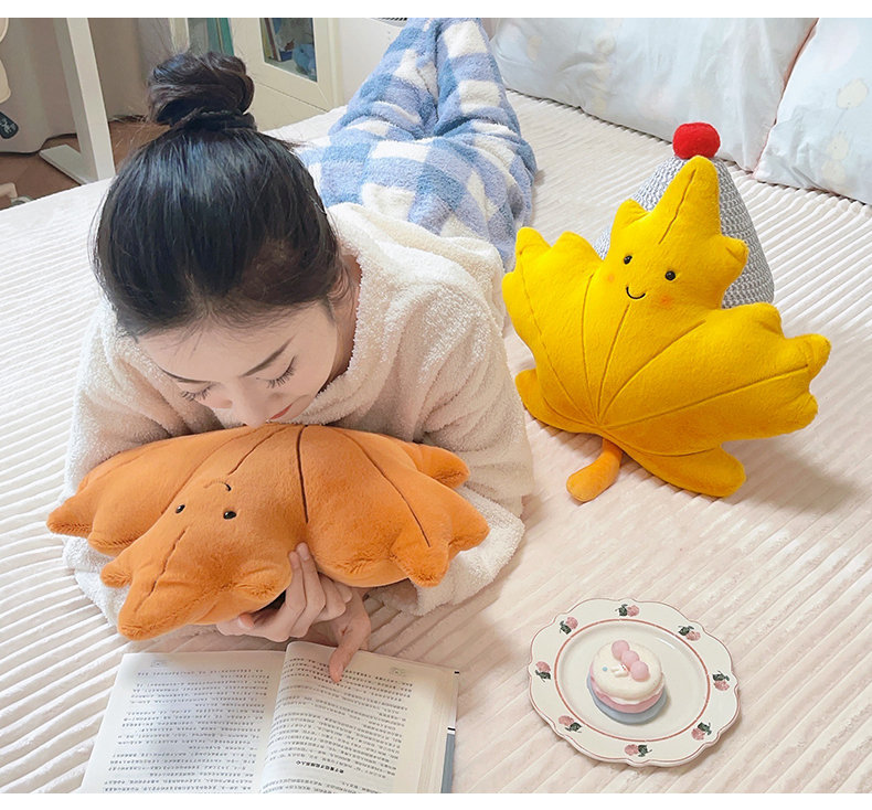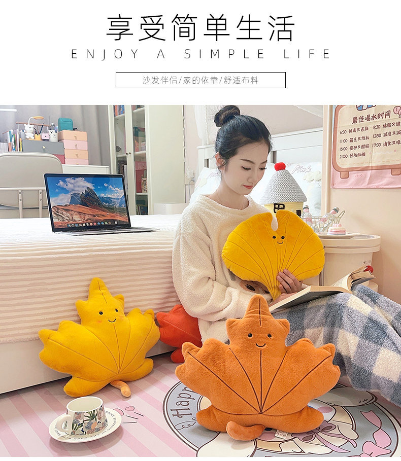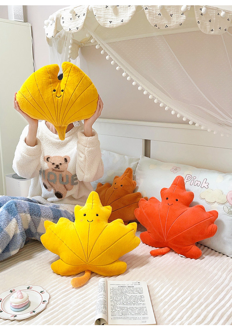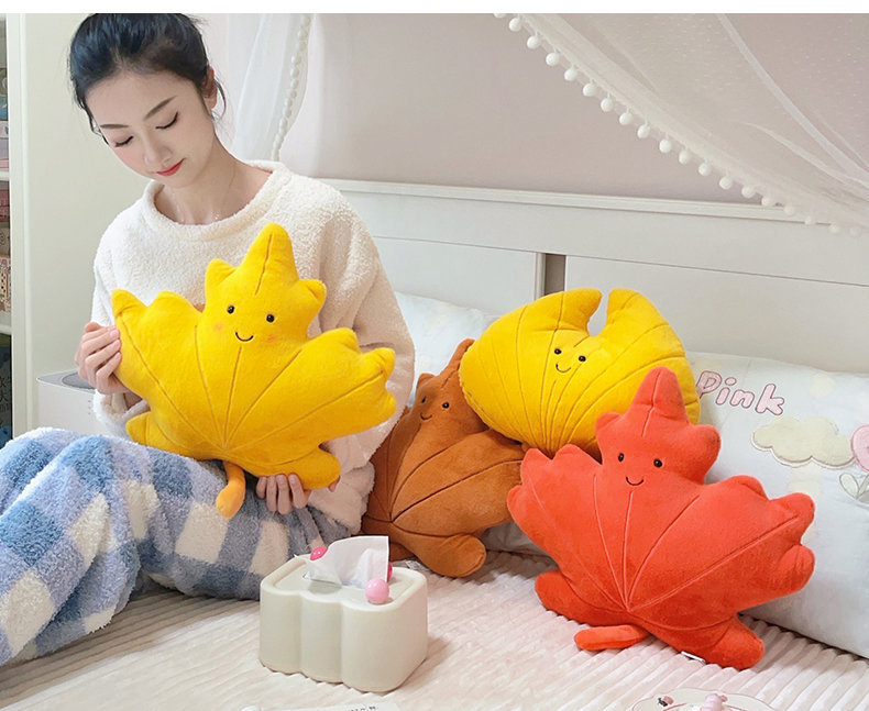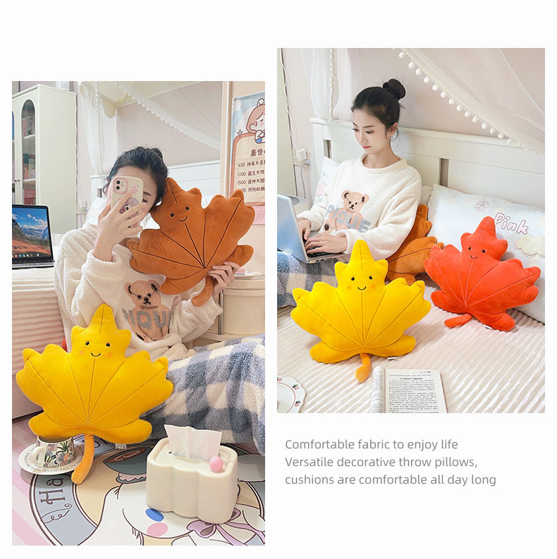 Cute caricatura ins viento hoja de arce almohada juguetes de peluche sofá cojín almohada colgante decoración de sofá doméstico